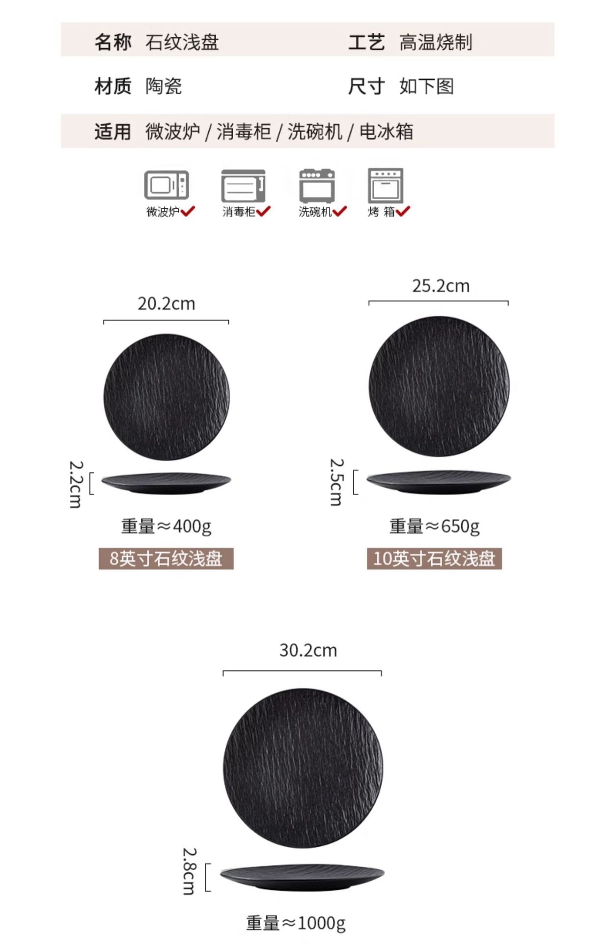 8inch stone pattern shallow dish - white 1 piece, 8inch stone pattern shallow plate-white plus gold 1 piece, 8...