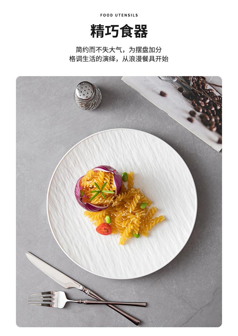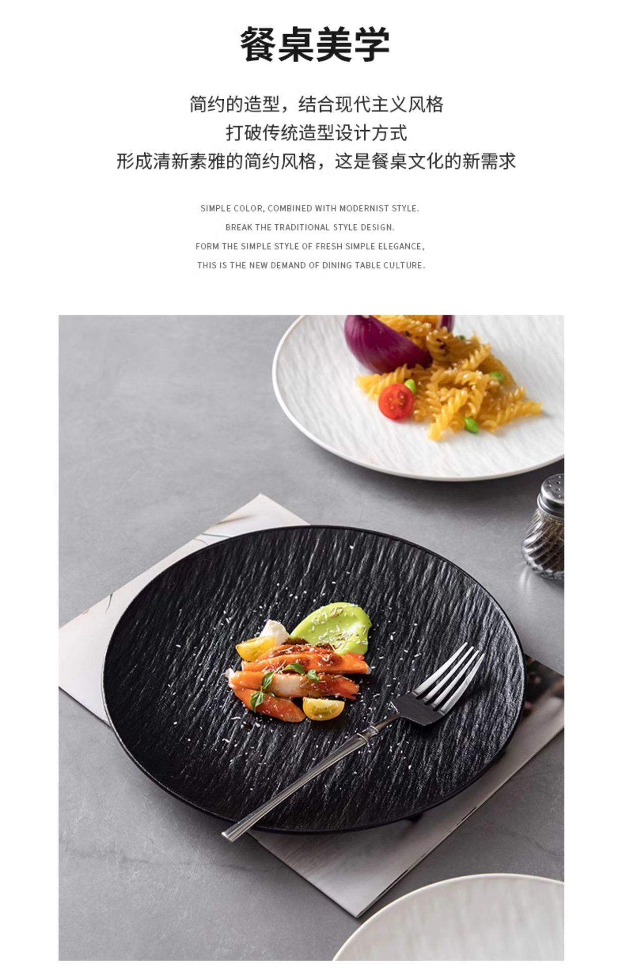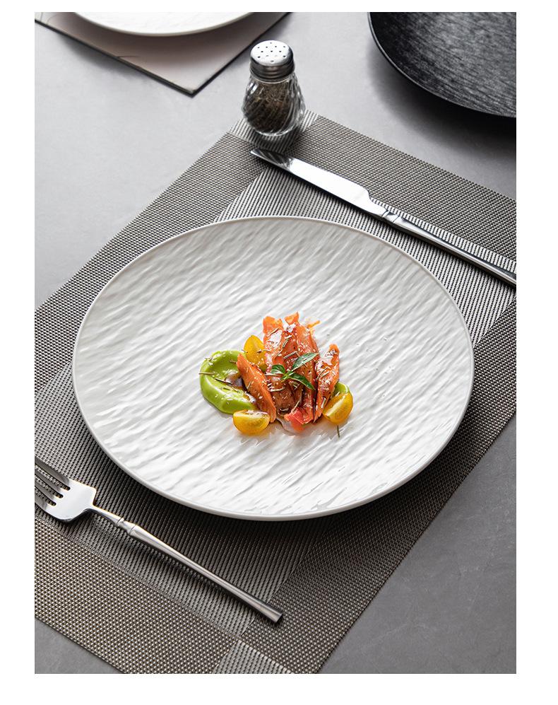 Plato de comida occidental creativo, plato de carne de sentido avanzado, plato de cerámica para el hogar, plato de postre, plato de desayuno, vajilla ligera de lujo para hotel.