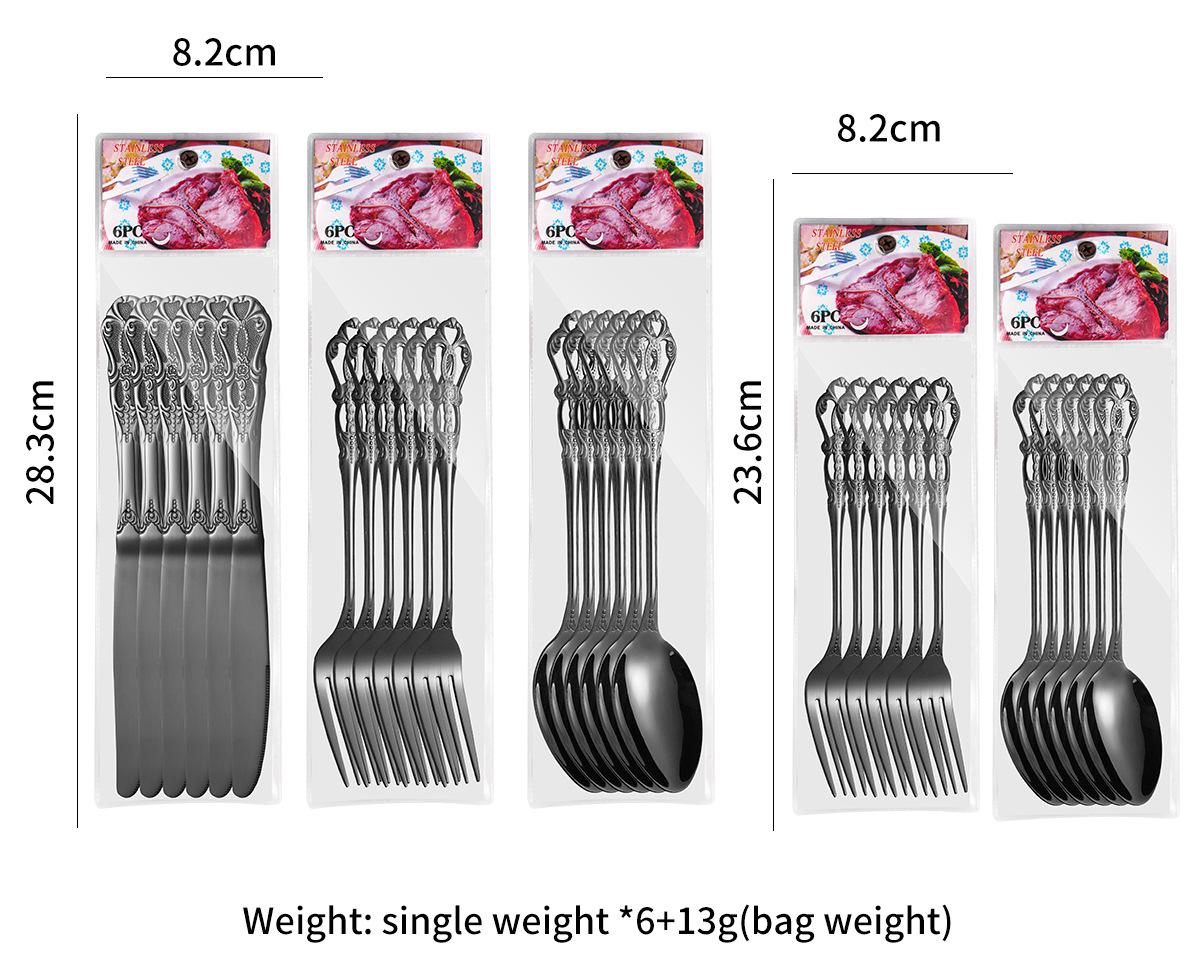 Juego de Cubiertos de Acero Inoxidable Venta Caliente Transfronteriza Regalo Creativo Cuchillo para Carne Bolsa de PVC Vajilla Occidental Juego de 6 Piezas
