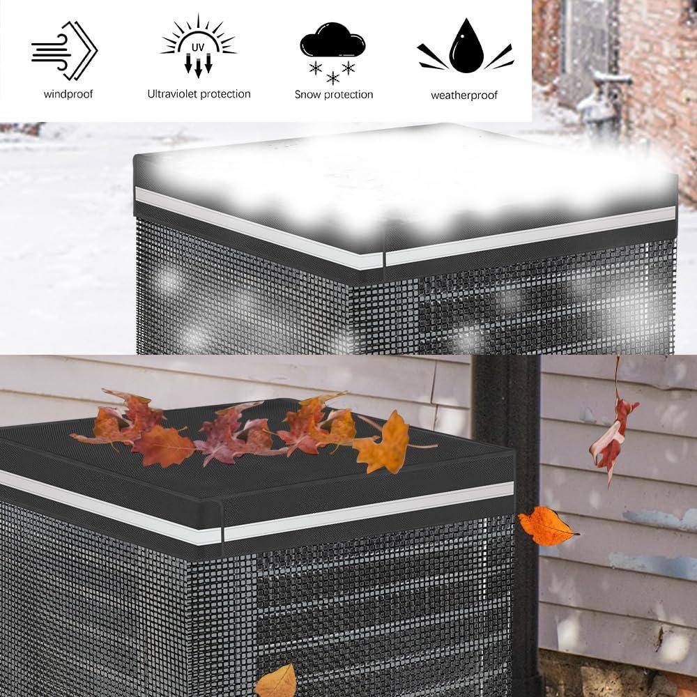 Funda Protectora de Malla Negra 600D para Aire Acondicionado de Exterior Transfronterizo, Universal para Todas las Estaciones, Cubierta Completa para Aires Acondicionados Centrales para Evitar la Caída de Hojas