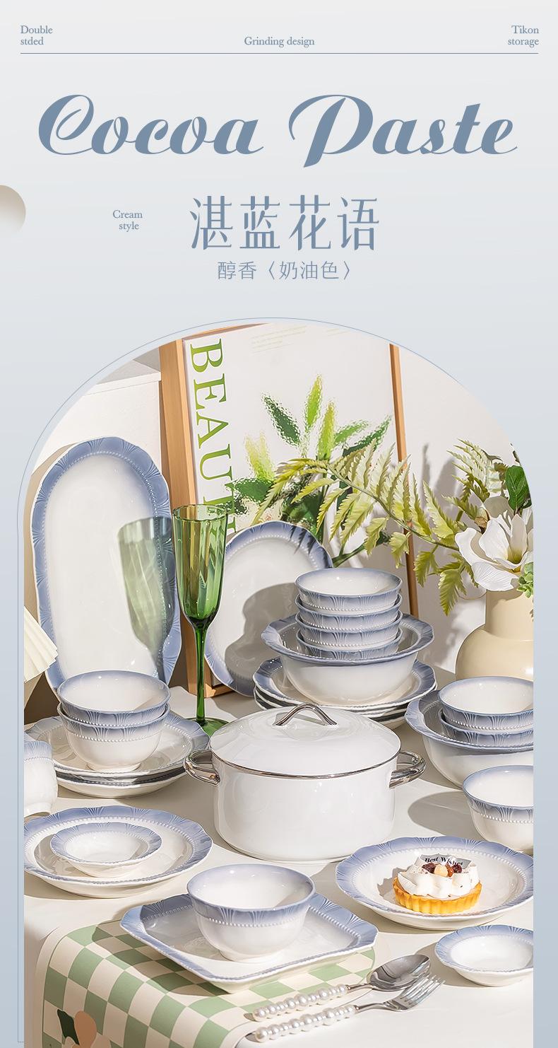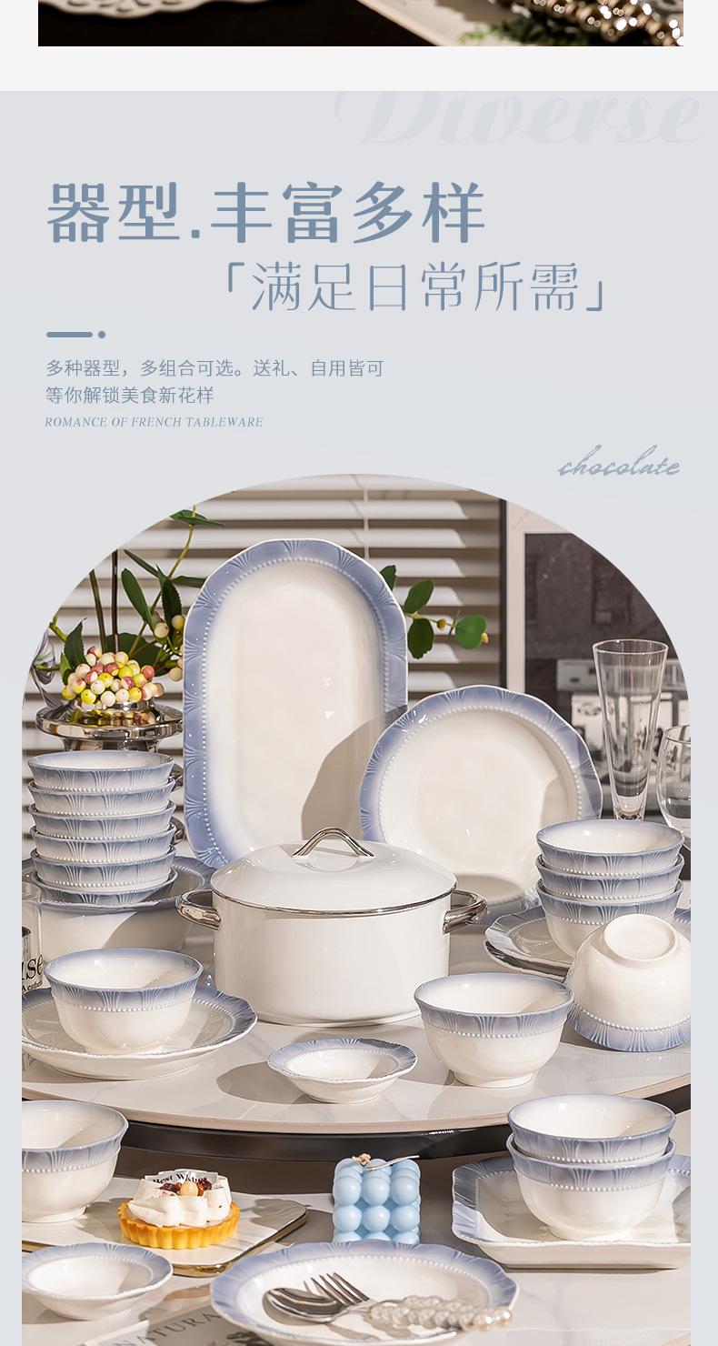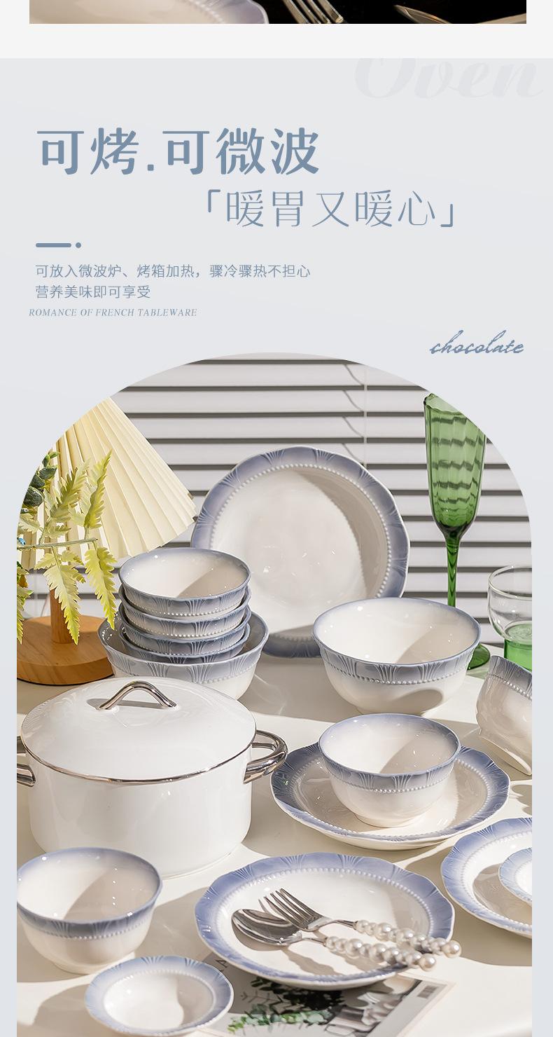 Plato creativo de encaje con vajilla francesa bajo cubierta, plato de tazón azul degradado, tazón de regalo de cerámica nuevo 2025