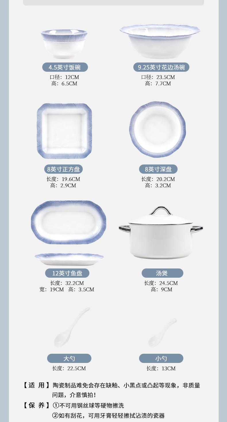 Blue flower language-4.5-inch rice bowl, Blue flower language - 8inch deep plate, Blue flower language - 8inch...