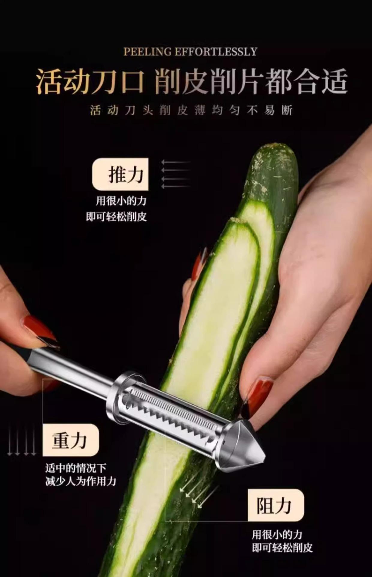 Pelador multifuncional de acero inoxidable de doble cara para cocina, hogar, raspador, cuchillo para frutas, pelador de patatas y verduras, venta al por mayor