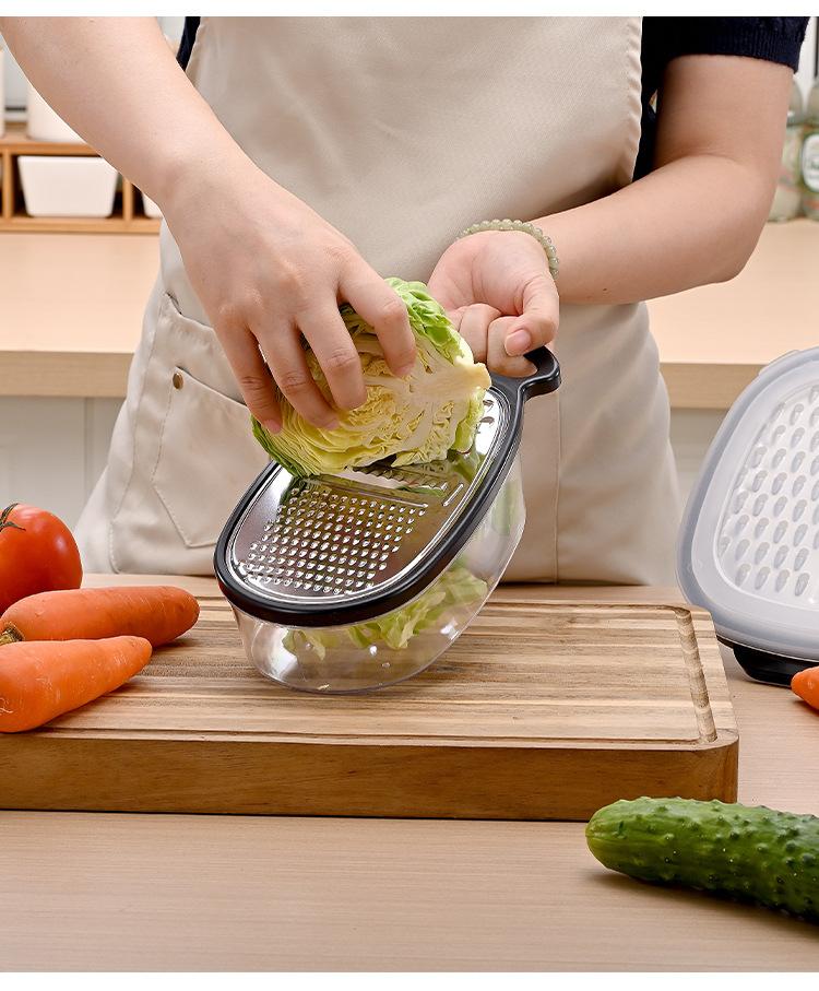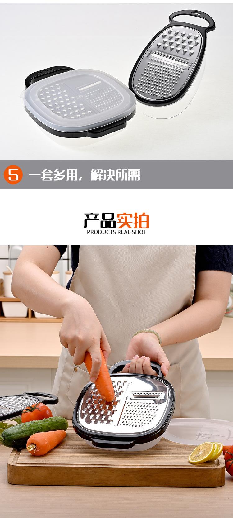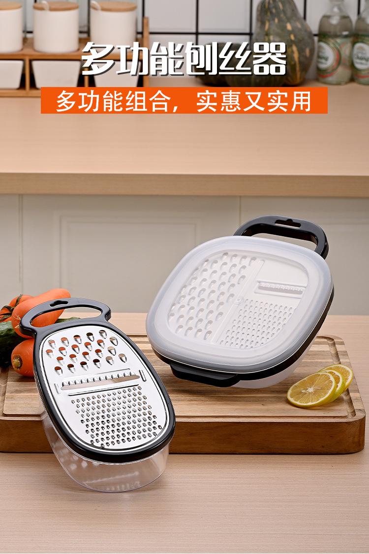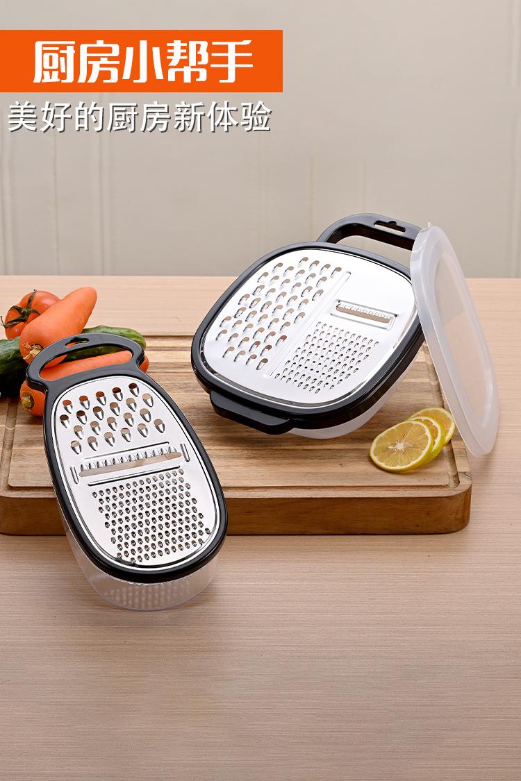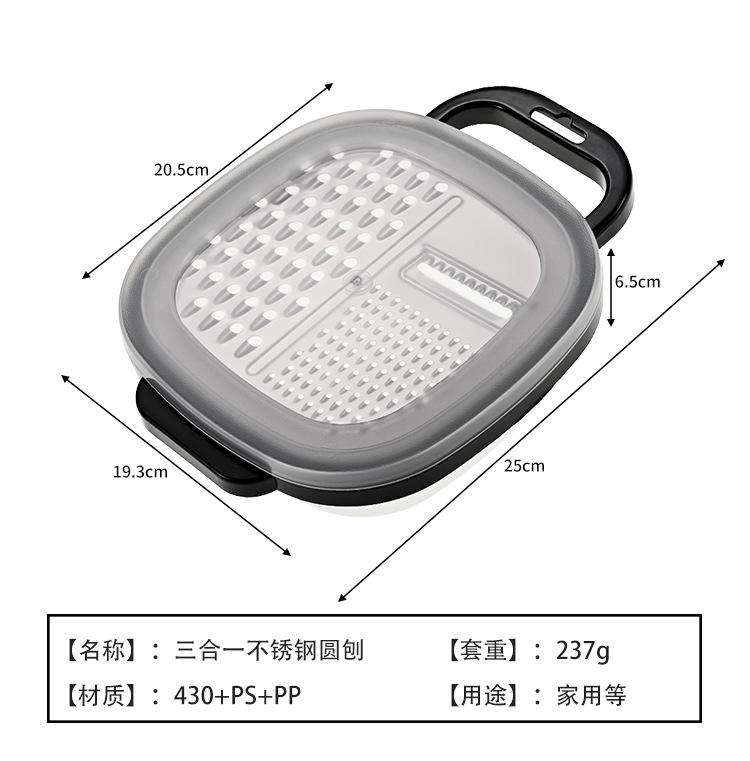 Rallador redondo multifuncional tres en uno de acero inoxidable con tapa para jengibre, ajo, queso y otros alimentos.