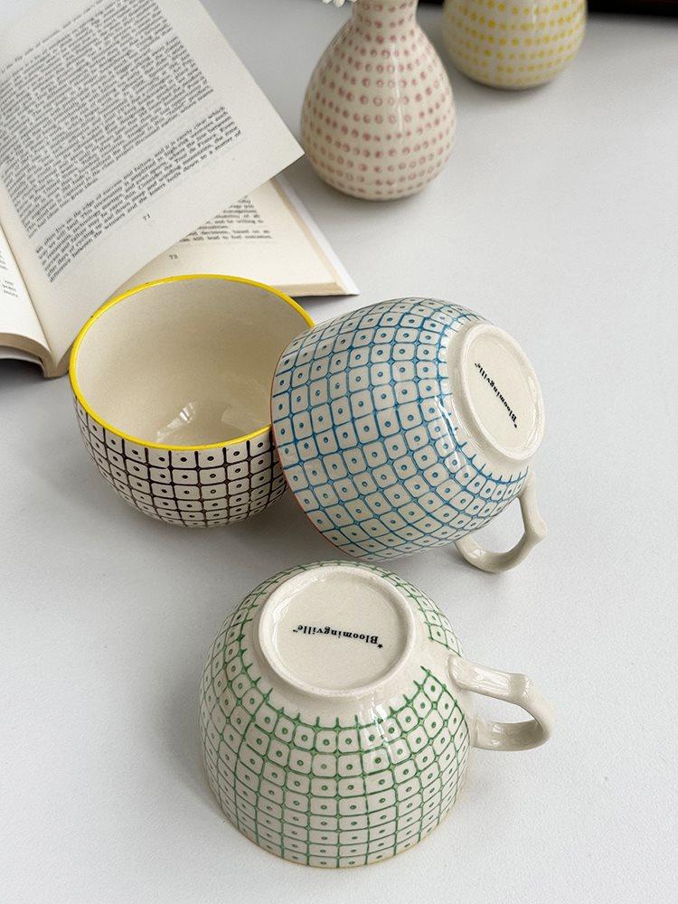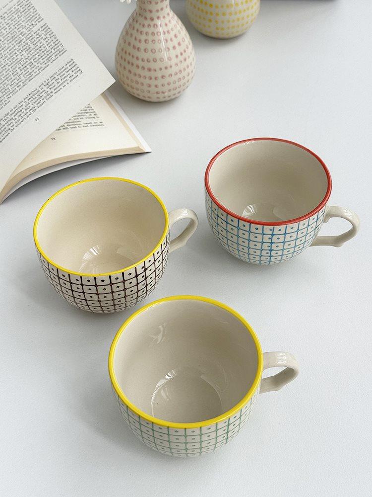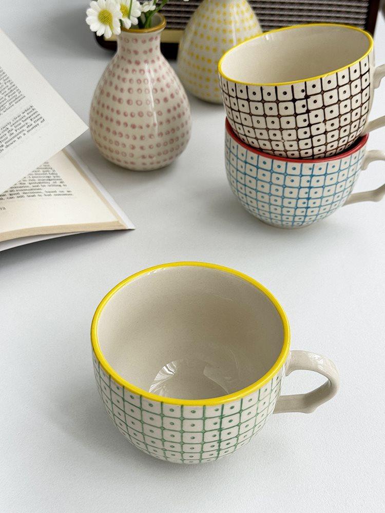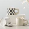 Taza retro de comercio exterior ins arte macarrón a cuadros creativa pequeña fresca taza de desayuno taza de café