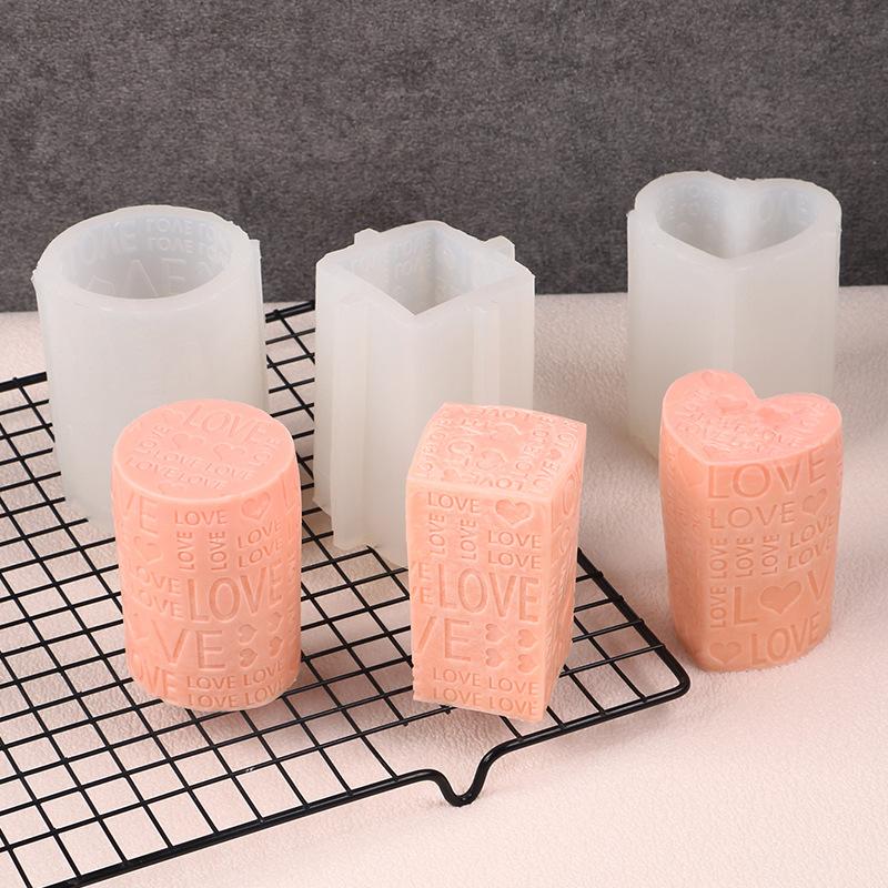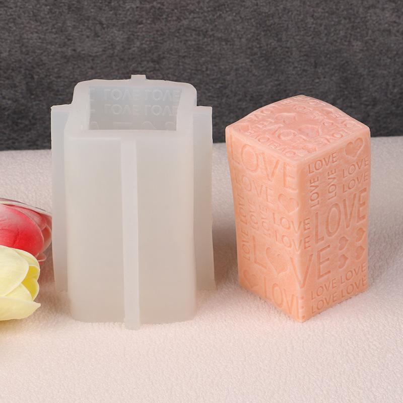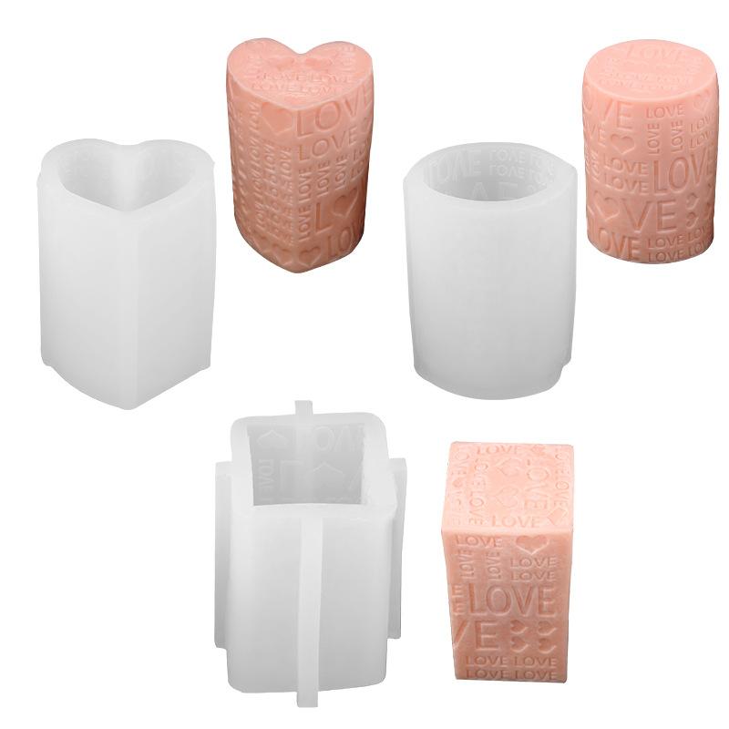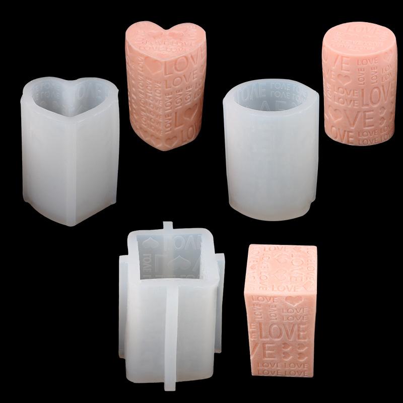 Molde de Goteo de Gel de Cristal DIY Amor Cuadrado Cilindro 3 Día de San Valentín Atmósfera Romántica Vela Pastel Molde de Silicona