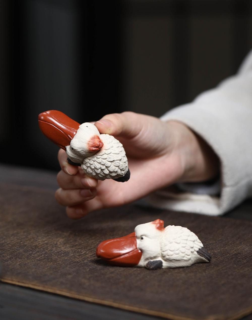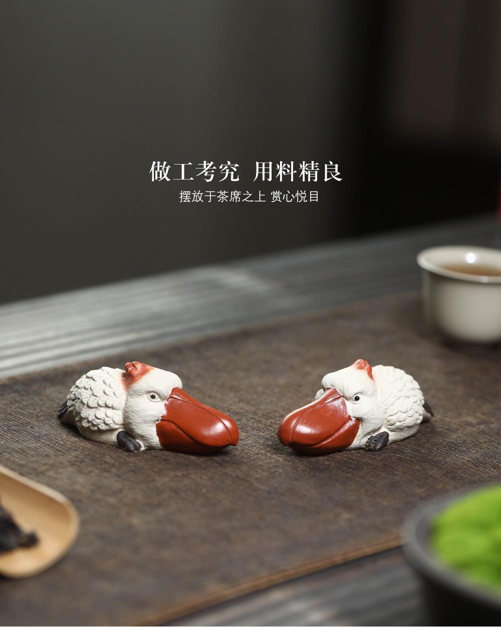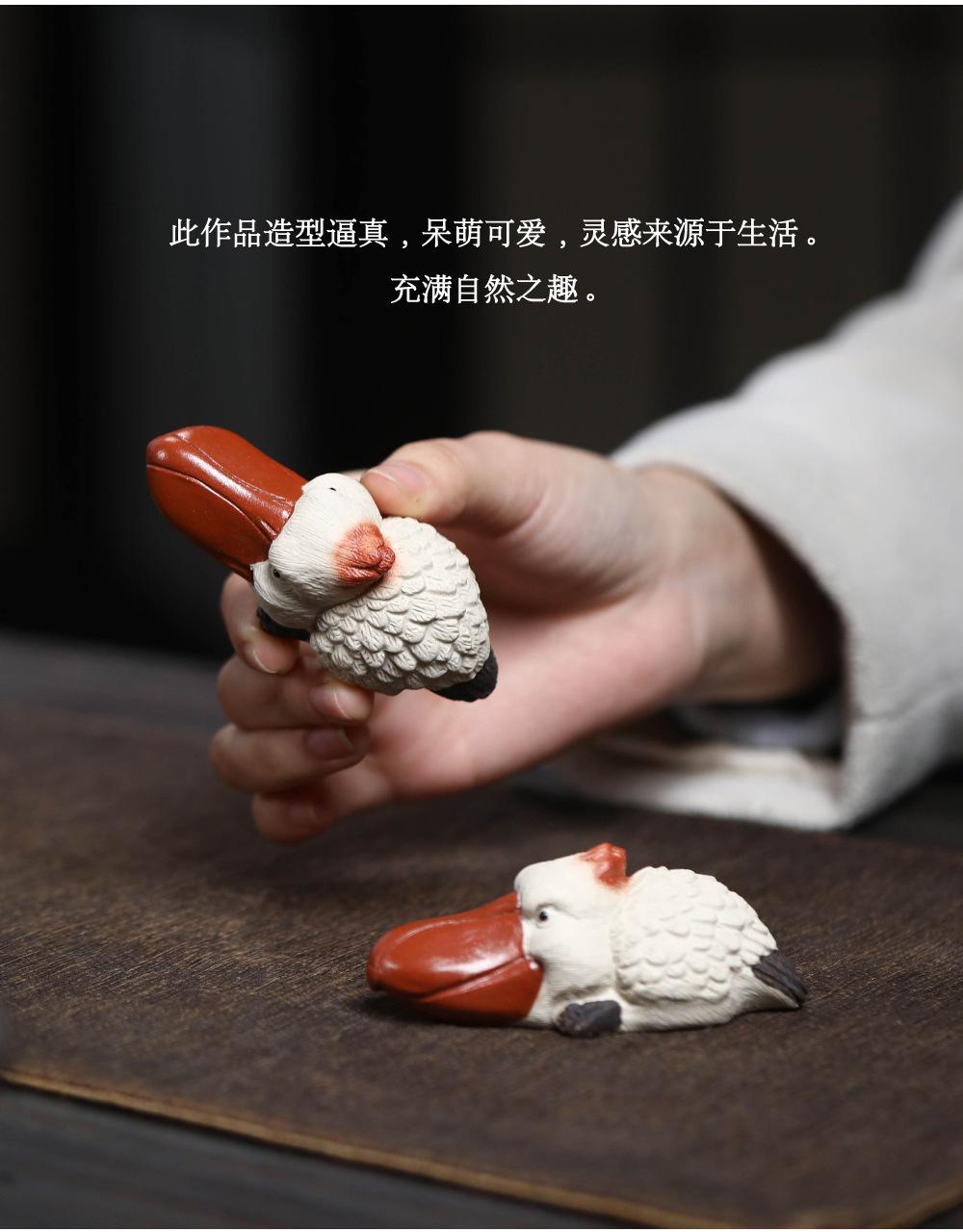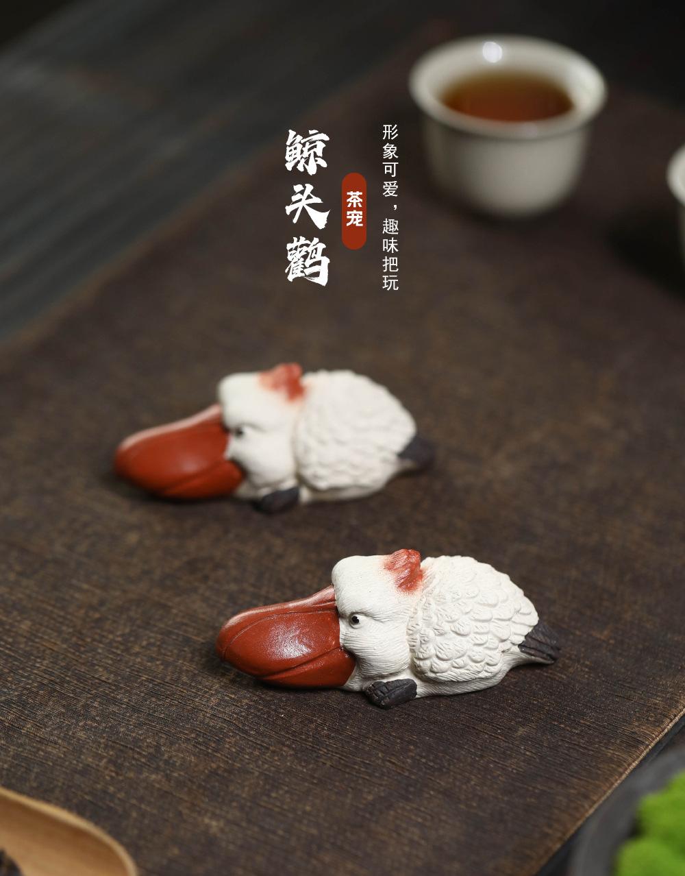 Adornos de cigüeña con cabeza de ballena y pájaro de arena púrpura de Yixing, escultura hecha a mano, escultura de arena, juego de té, accesorios creativos al por mayor