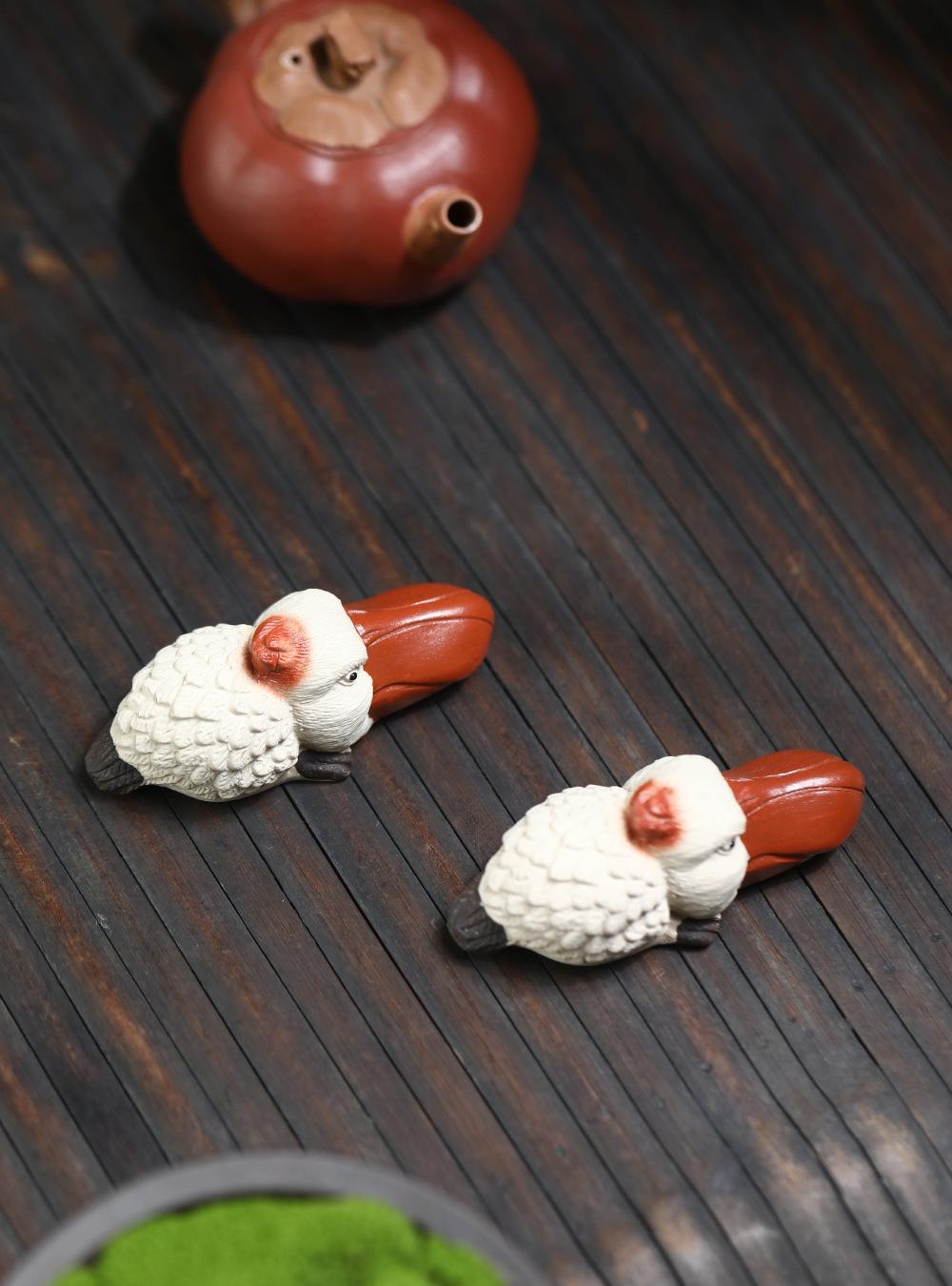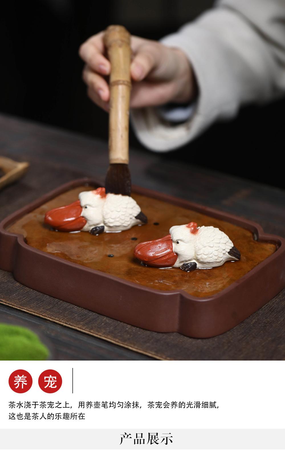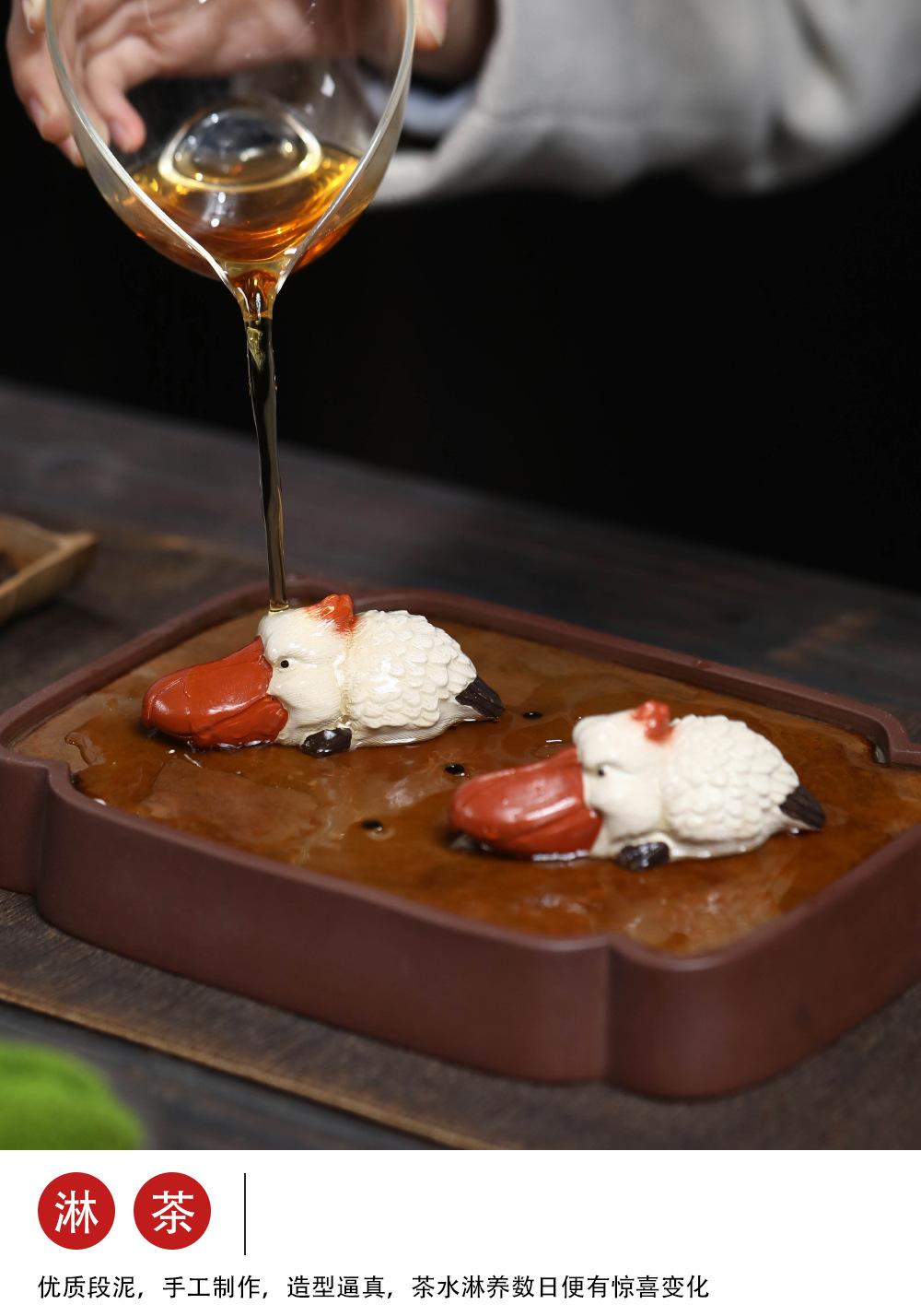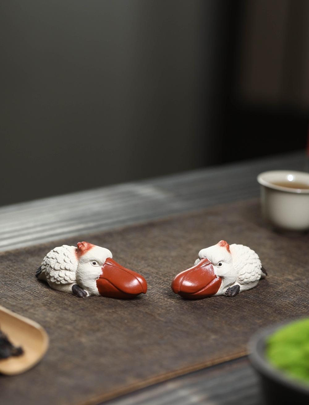 Adornos de cigüeña con cabeza de ballena y pájaro de arena púrpura de Yixing, escultura hecha a mano, escultura de arena, juego de té, accesorios creativos al por mayor