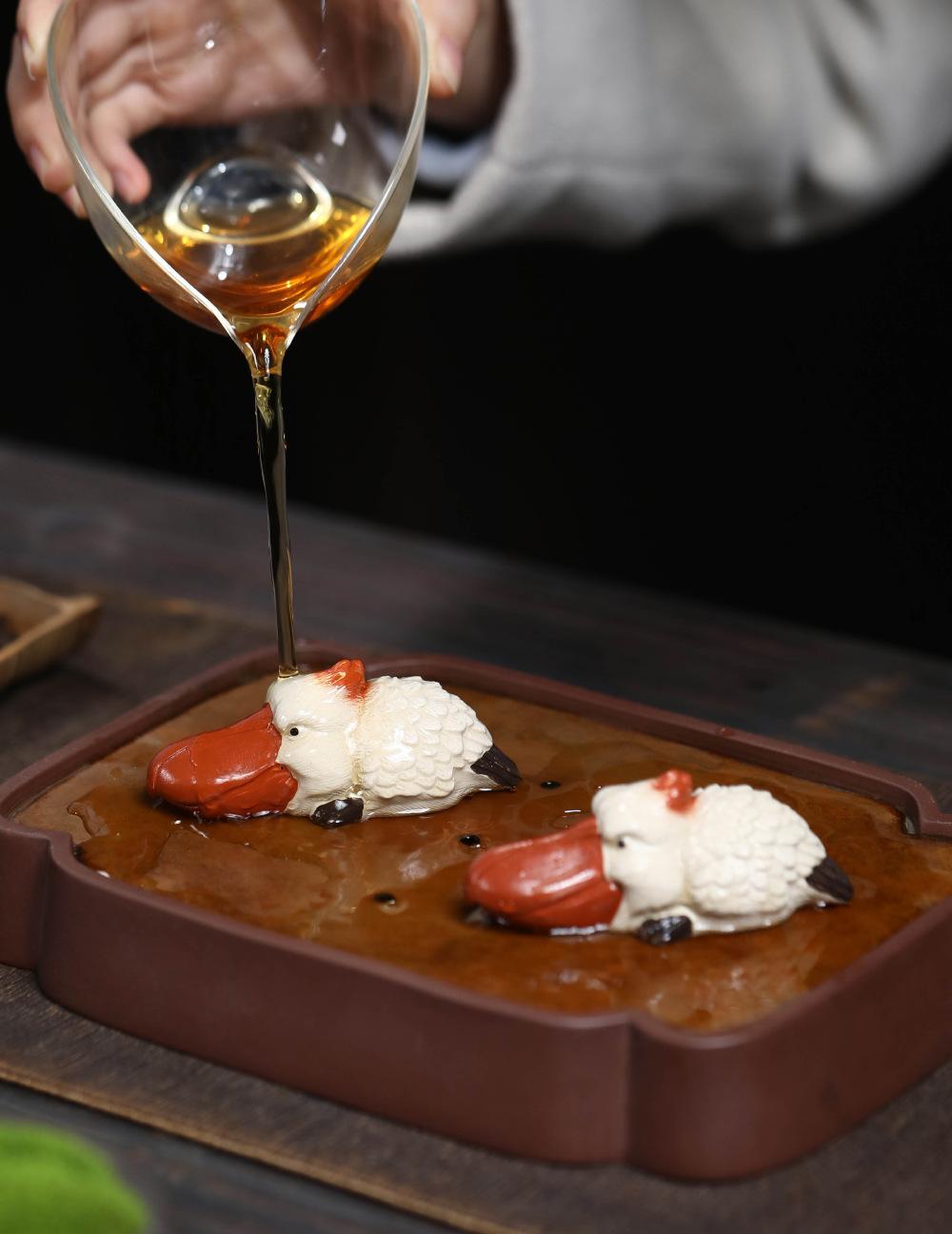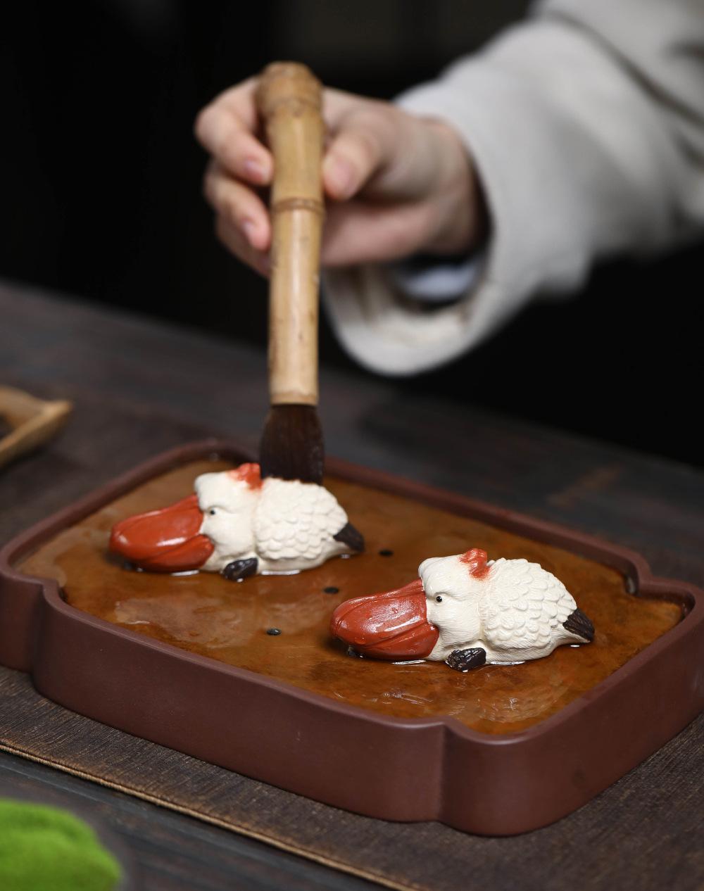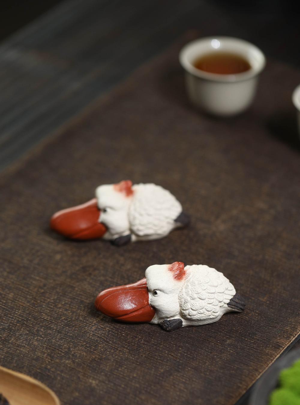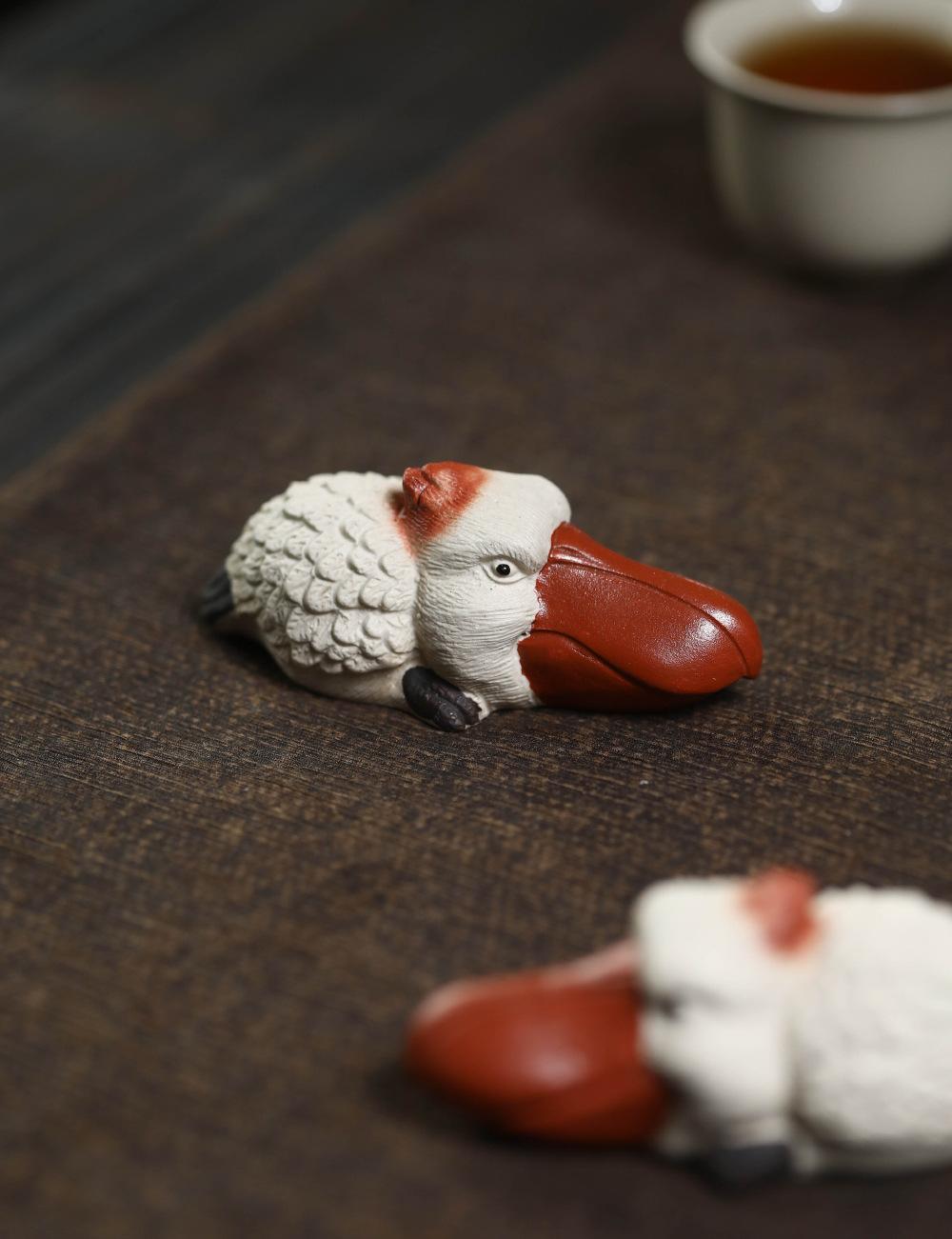 Adornos de cigüeña con cabeza de ballena y pájaro de arena púrpura de Yixing, escultura hecha a mano, escultura de arena, juego de té, accesorios creativos al por mayor