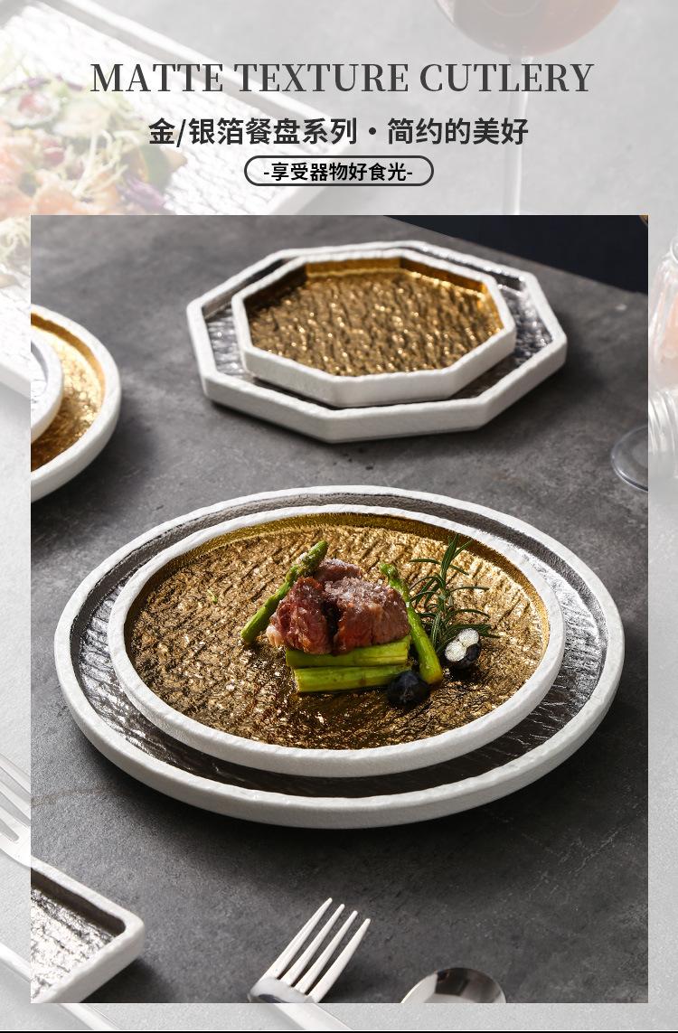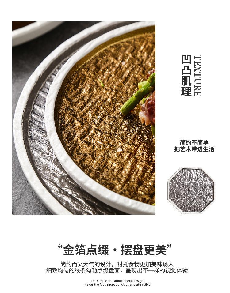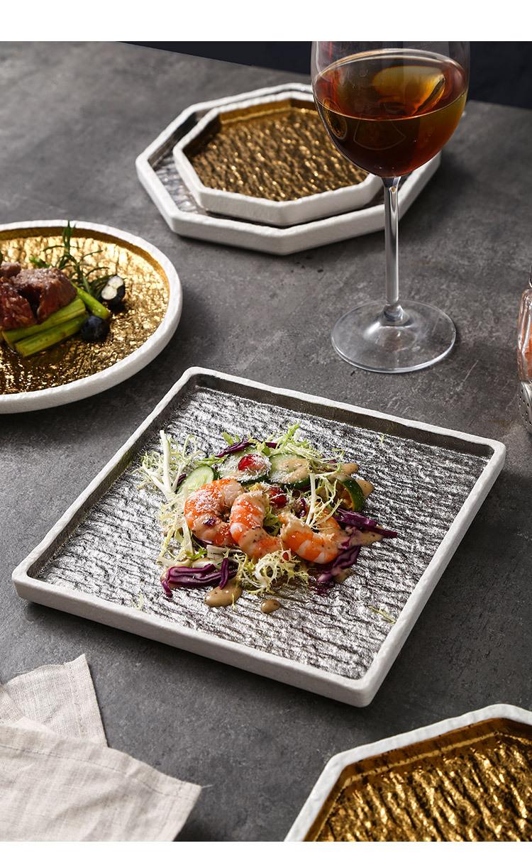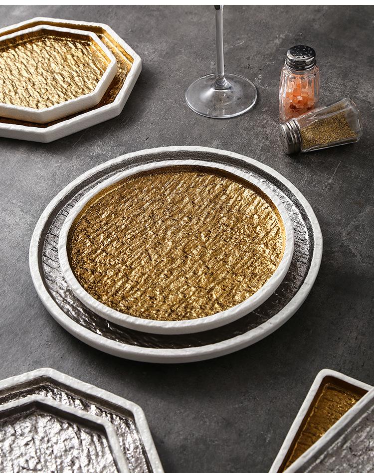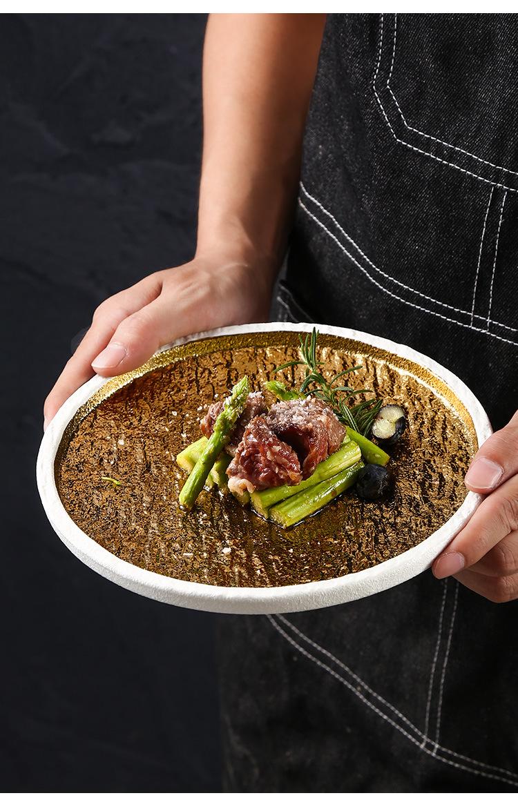 Cuencos, platos, vajilla de gres de estilo retro, platos creativos para carne con cuentas para restaurantes y hoteles, cuencos de postre, enchapado de alta gama