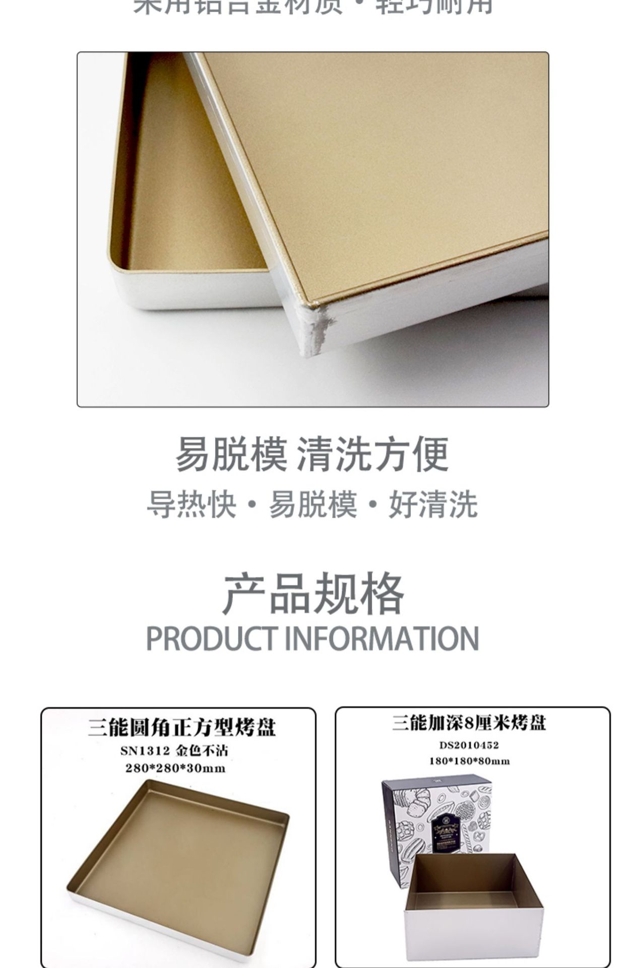 Venta al por mayor SN1312 bandeja para hornear antiadherente dorada, bandeja cuadrada dorada para horno, 28 x 28, molde para hornear pasteles de luna
