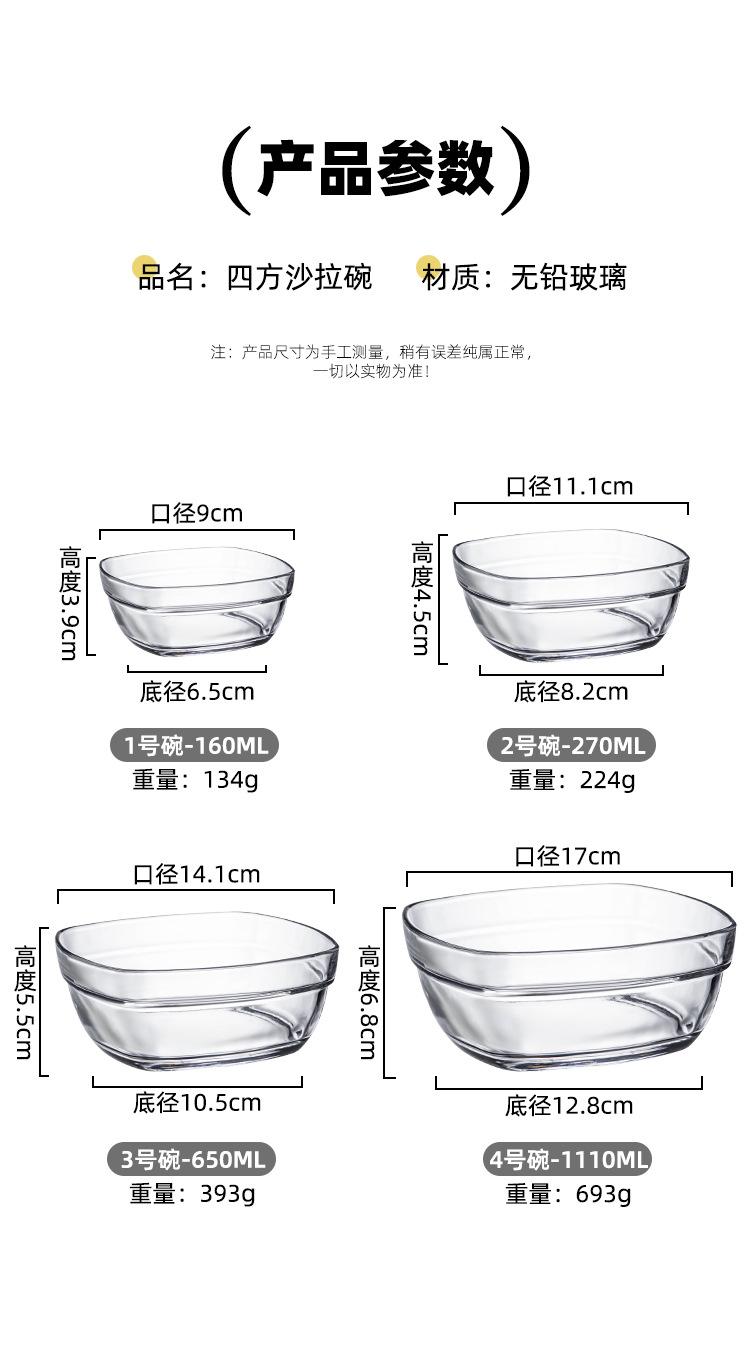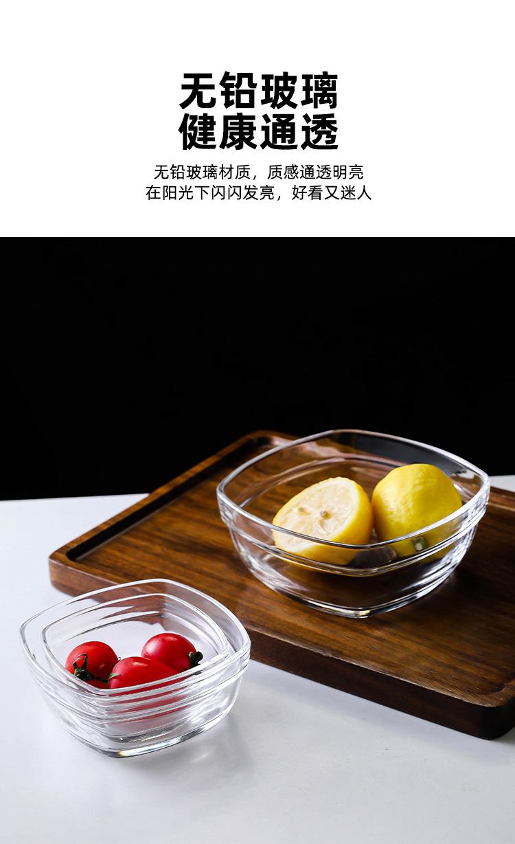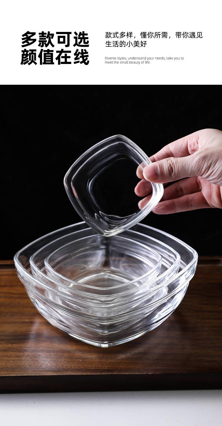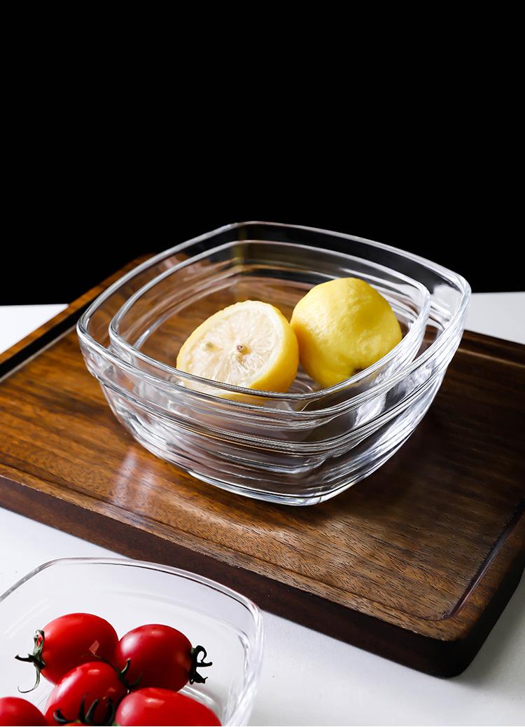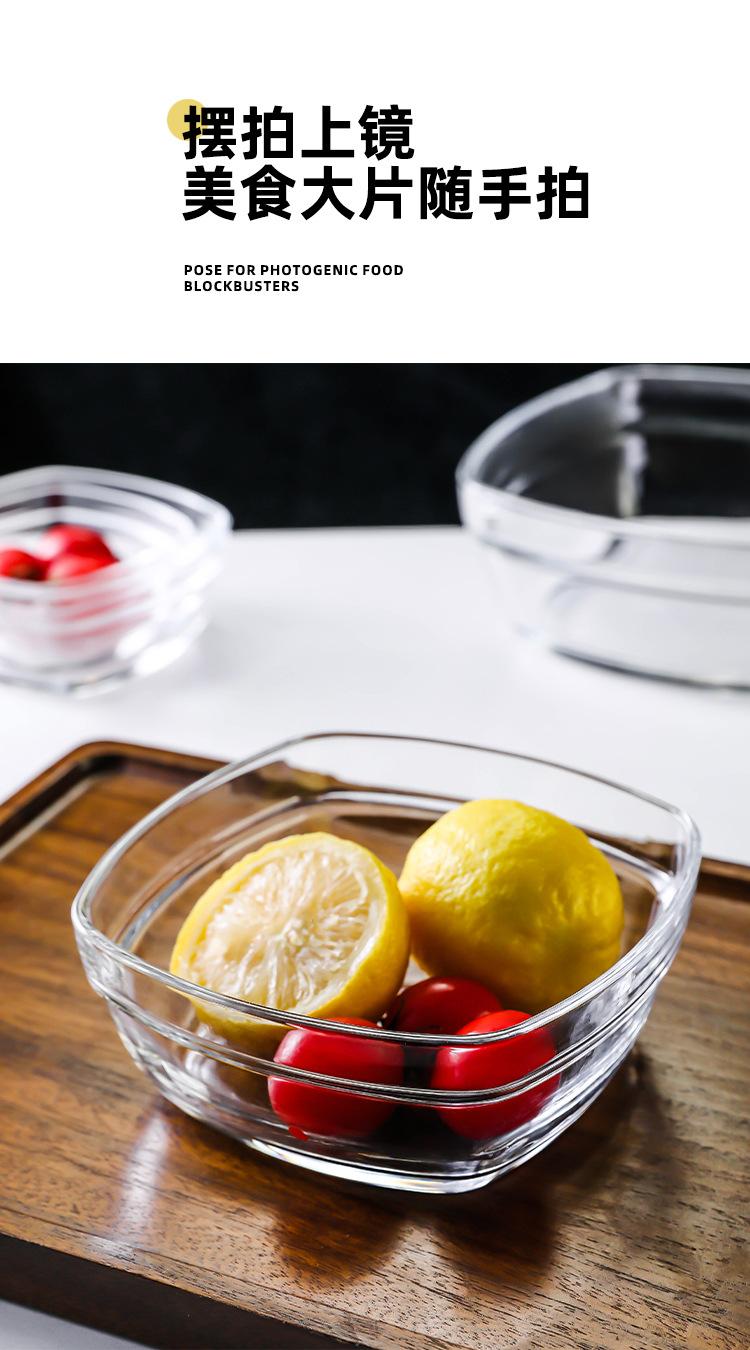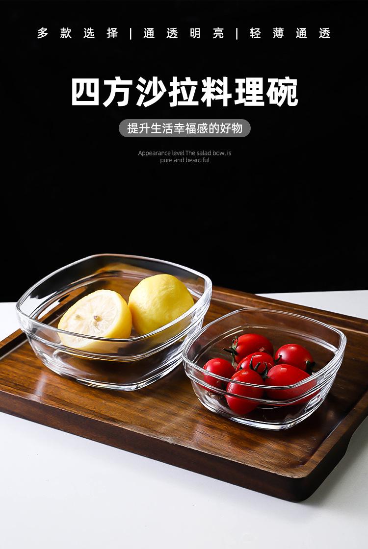 Tazón grande de vidrio para el hogar, tazón de verduras para cocina, tazón de sopa, plato de aperitivos, tazón de postre cuadrado grueso, plato de fruta común para restaurante