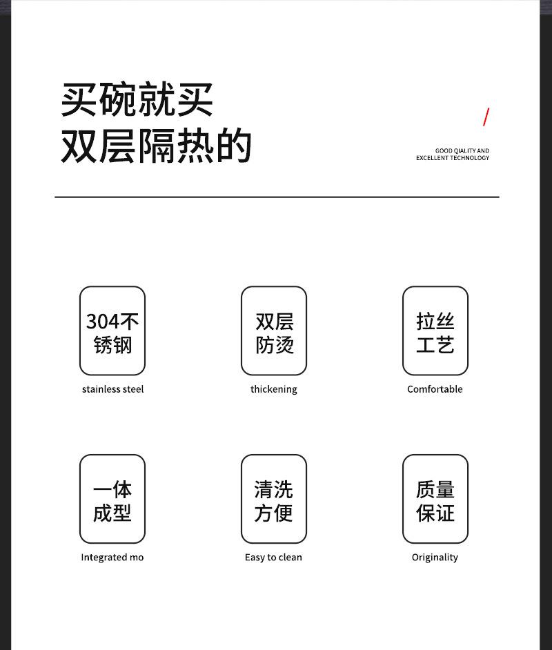 Cuenco de acero inoxidable 304 con aislamiento térmico de doble capa, antiescaldamiento, para niños y adultos, ideal para el comedor del hogar, para sopa y arroz espesado.