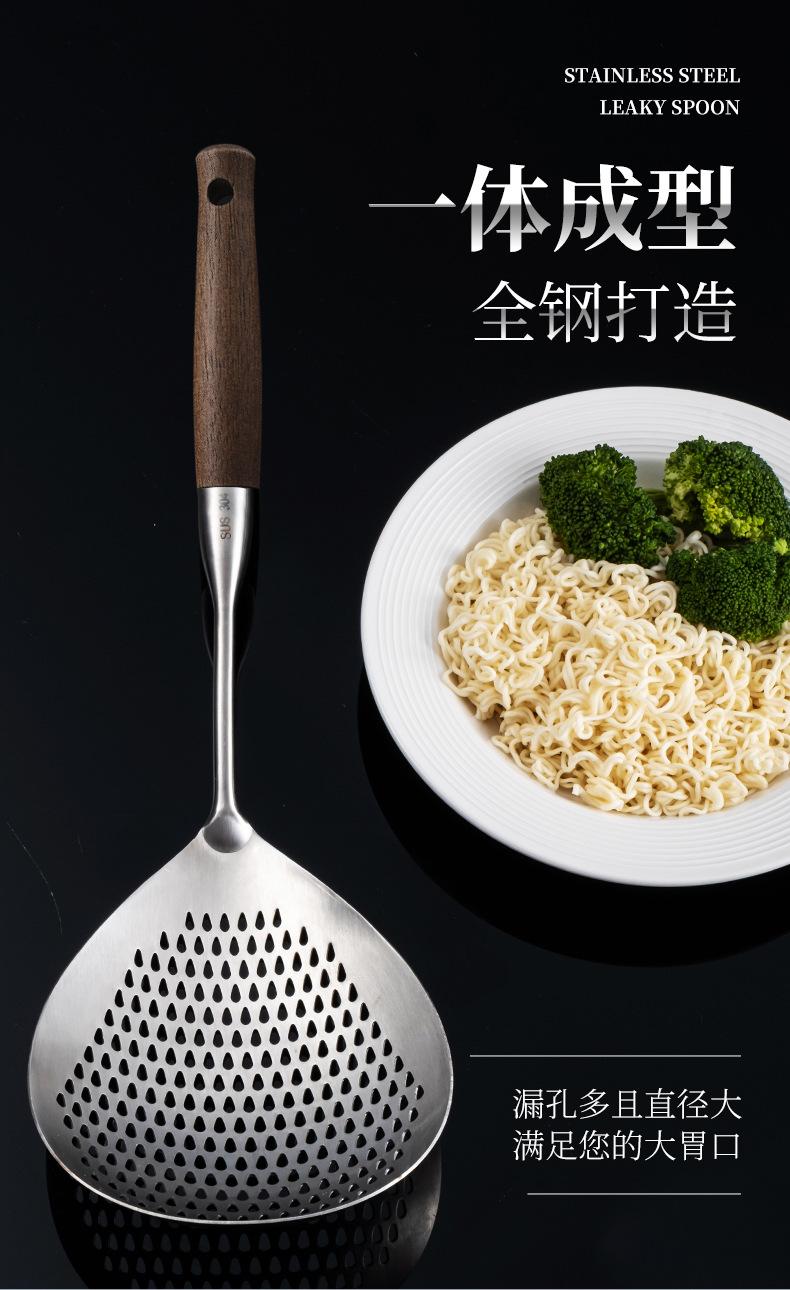 304 stainless steel large colander [solid wood handle], 304 stainless steel solid wood large colander [solid w...