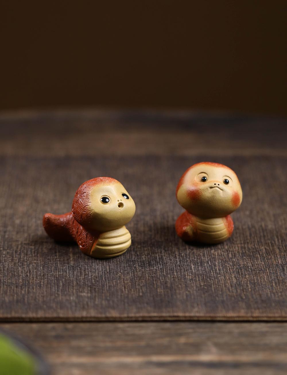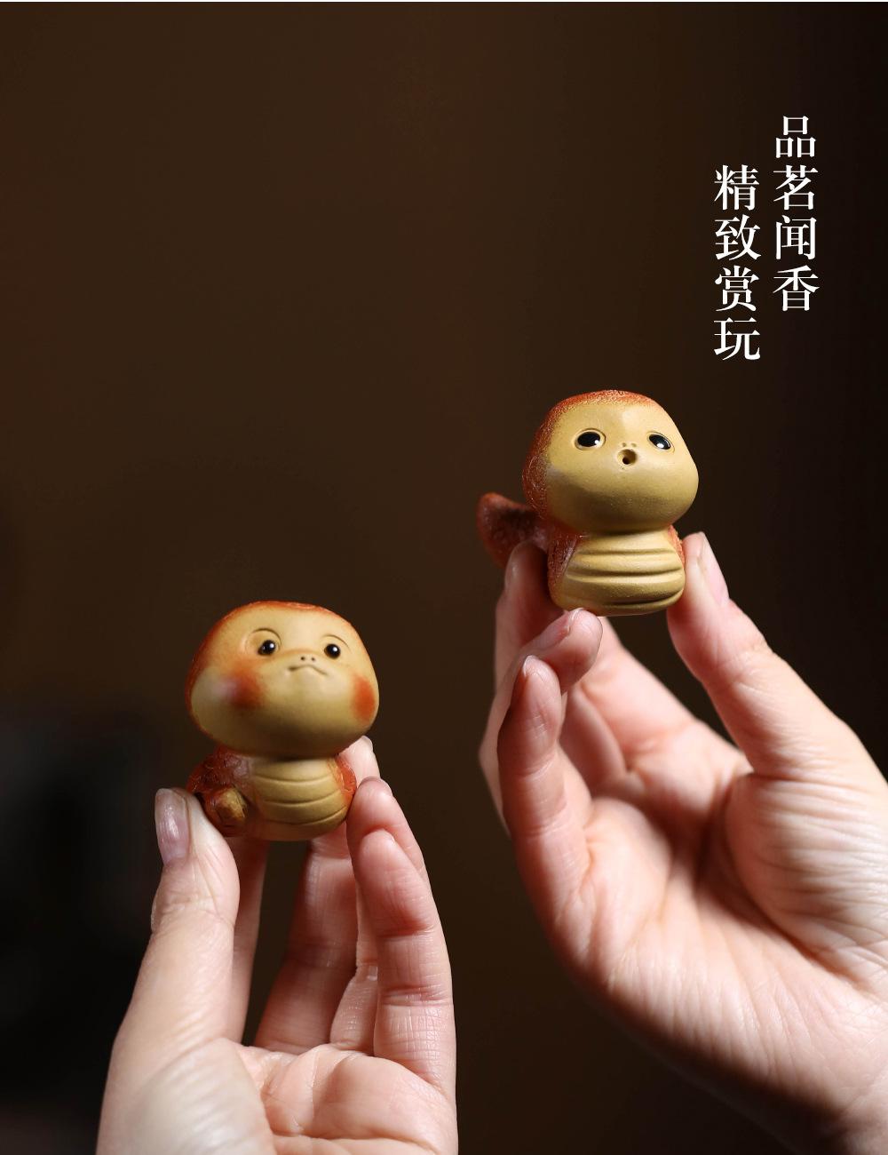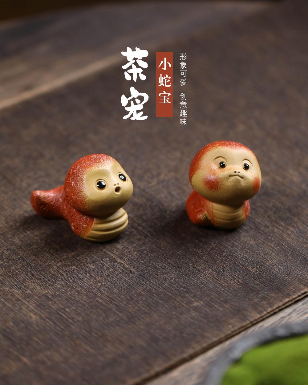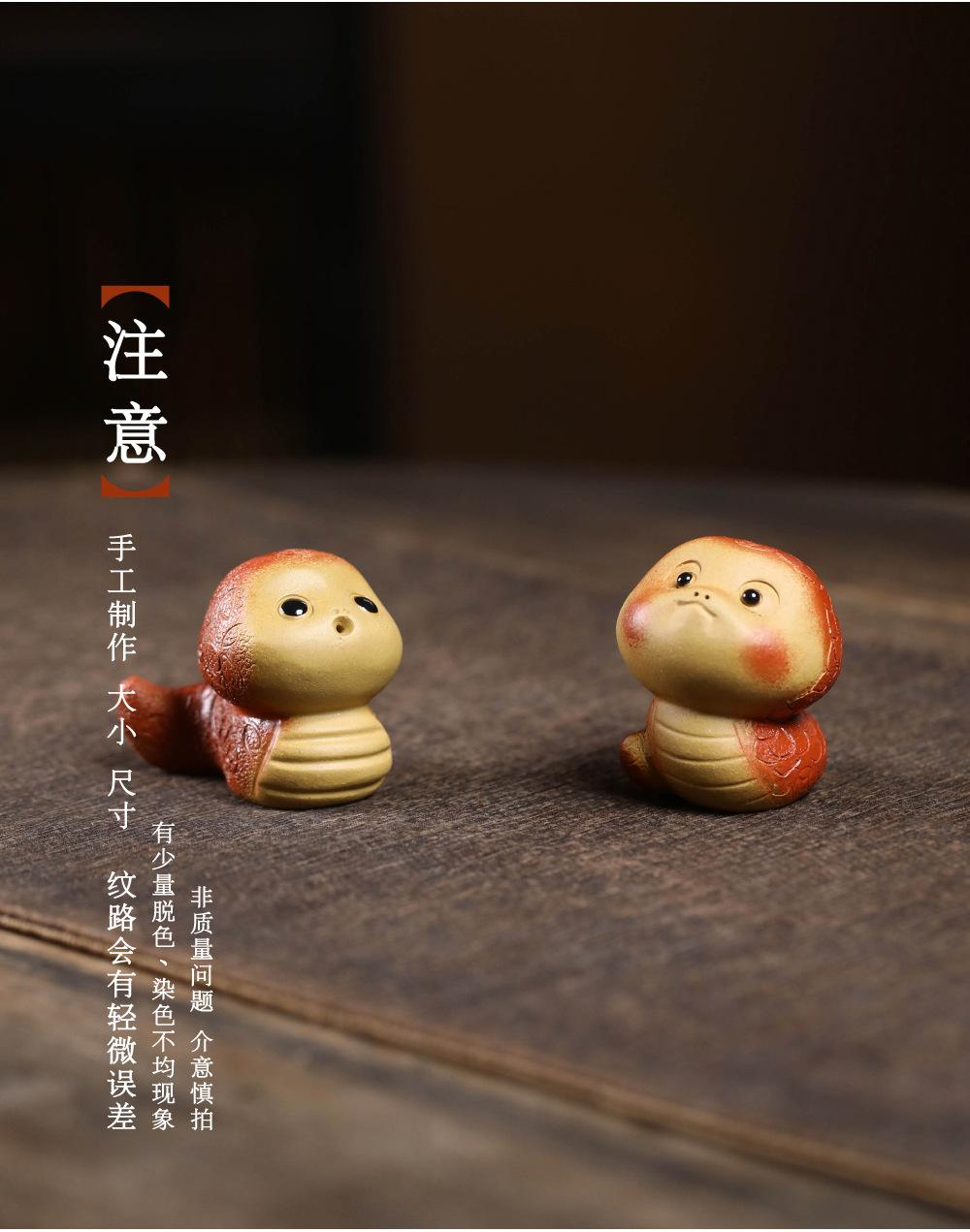 Adornos de serpiente del zodíaco de doce mascotas de té de arena púrpura de Yixing, juego de té hecho a mano, accesorios para mesa de té, escultura de juego de té con tesoro de serpiente que se puede levantar