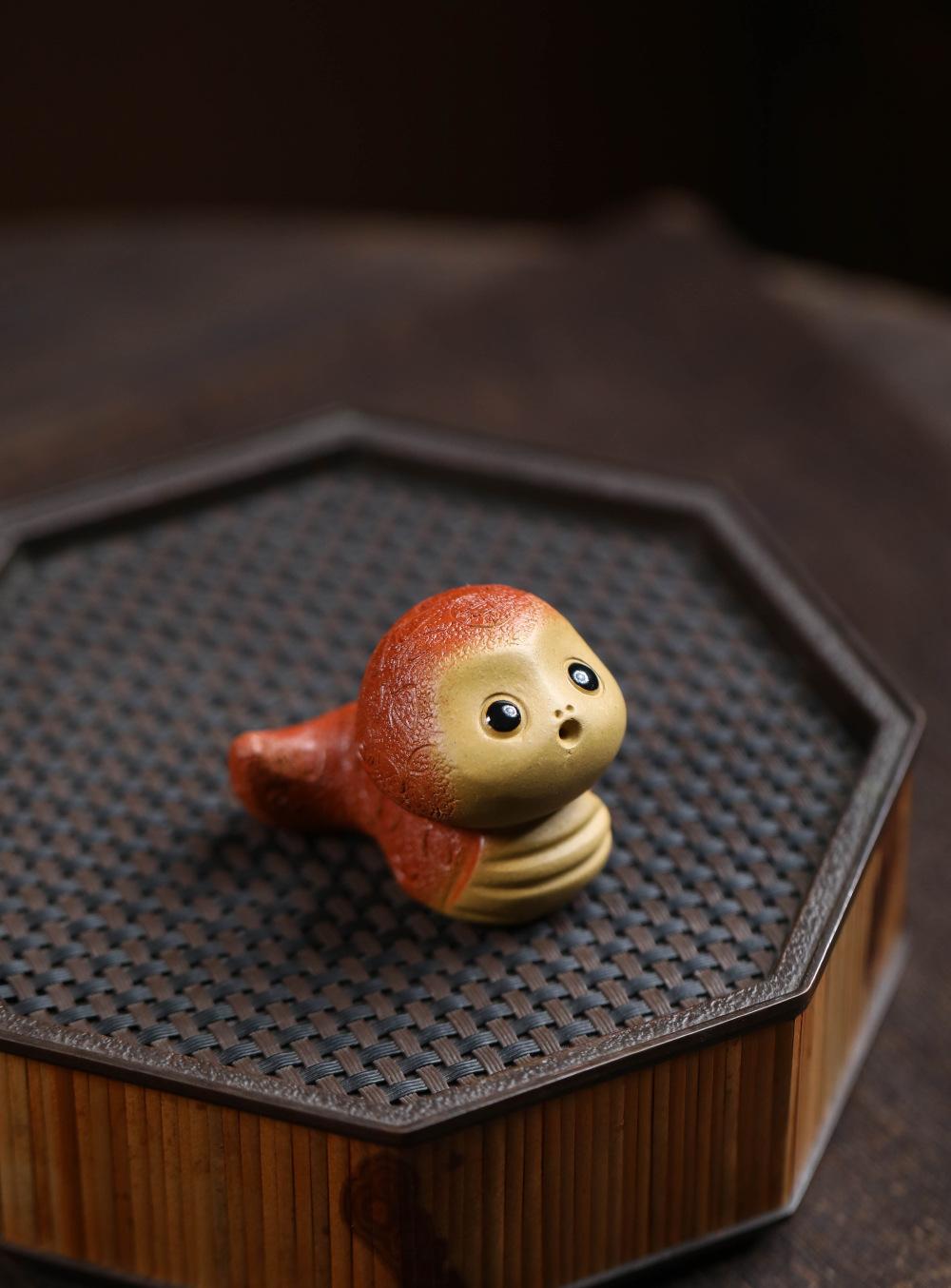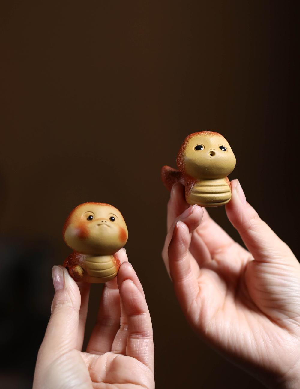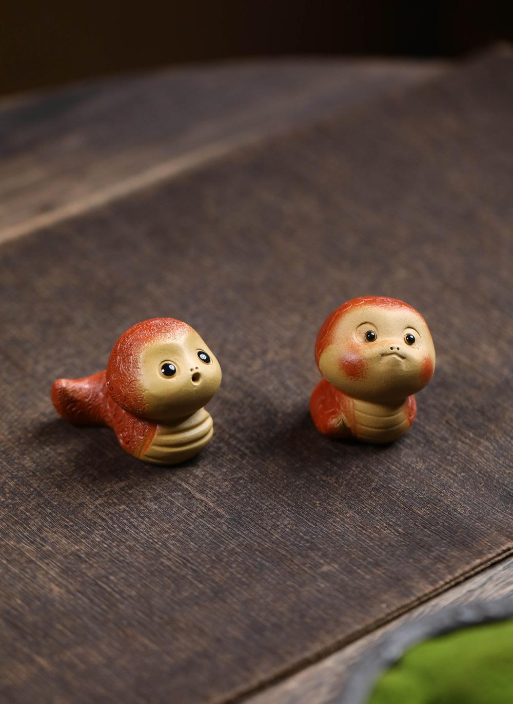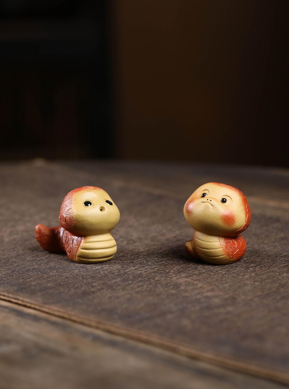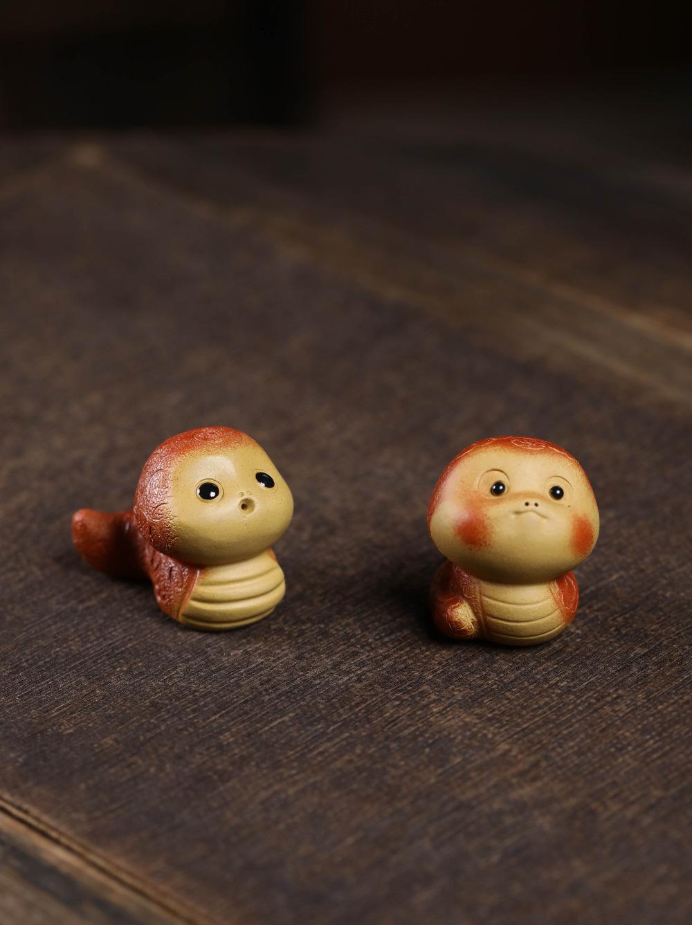 Adornos de serpiente del zodíaco de doce mascotas de té de arena púrpura de Yixing, juego de té hecho a mano, accesorios para mesa de té, escultura de juego de té con tesoro de serpiente que se puede levantar