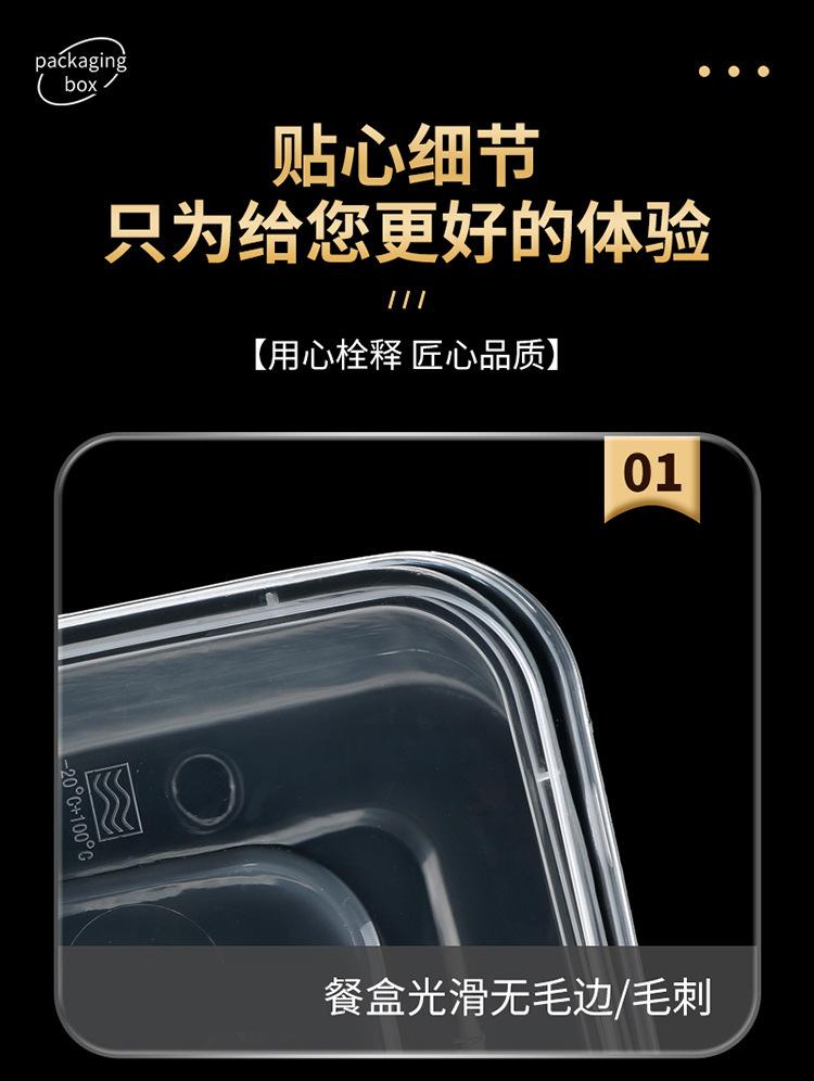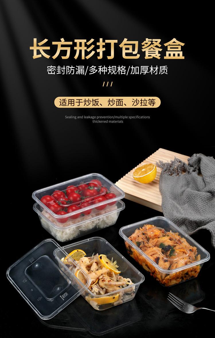 Fiambrera desechable cuadrada de plástico transparente, gruesa, para microondas, apta para llevar.