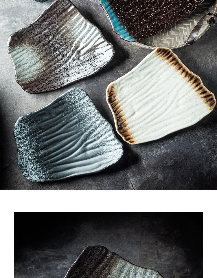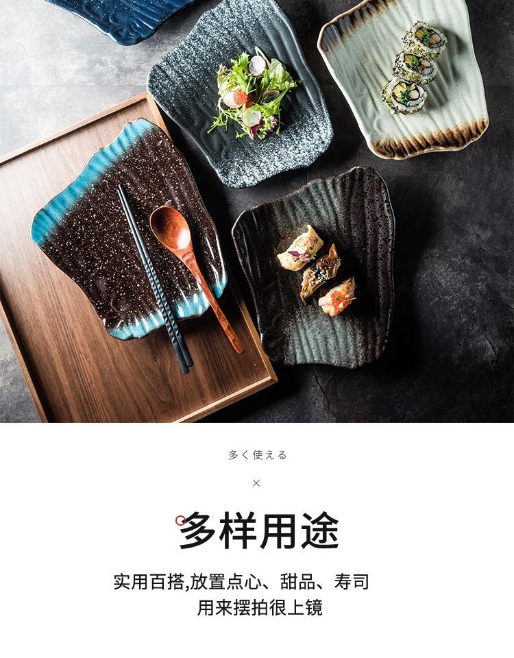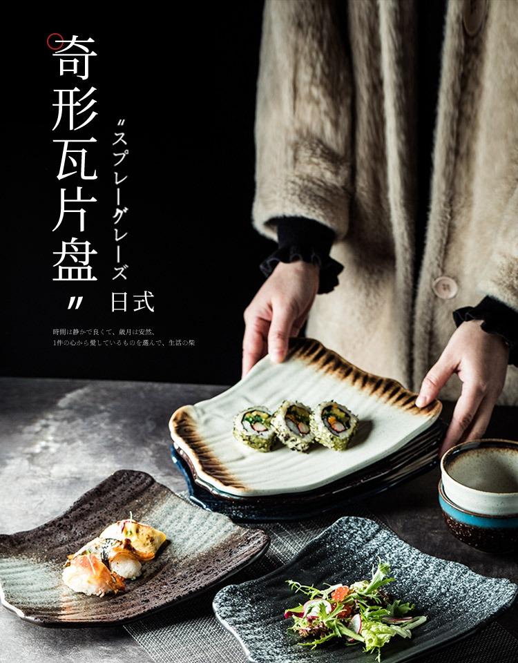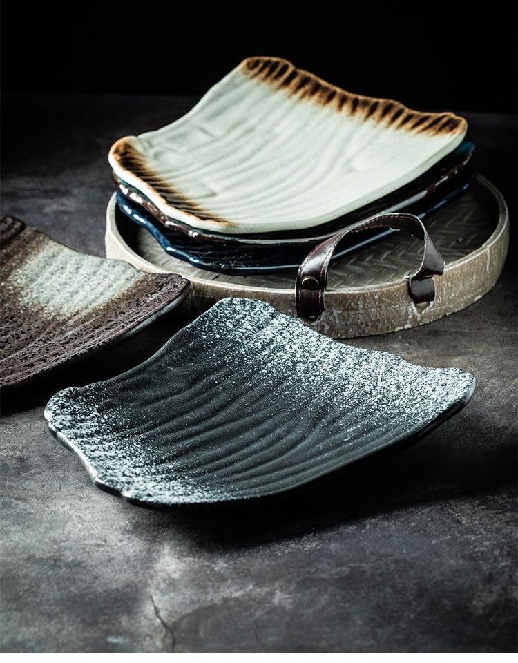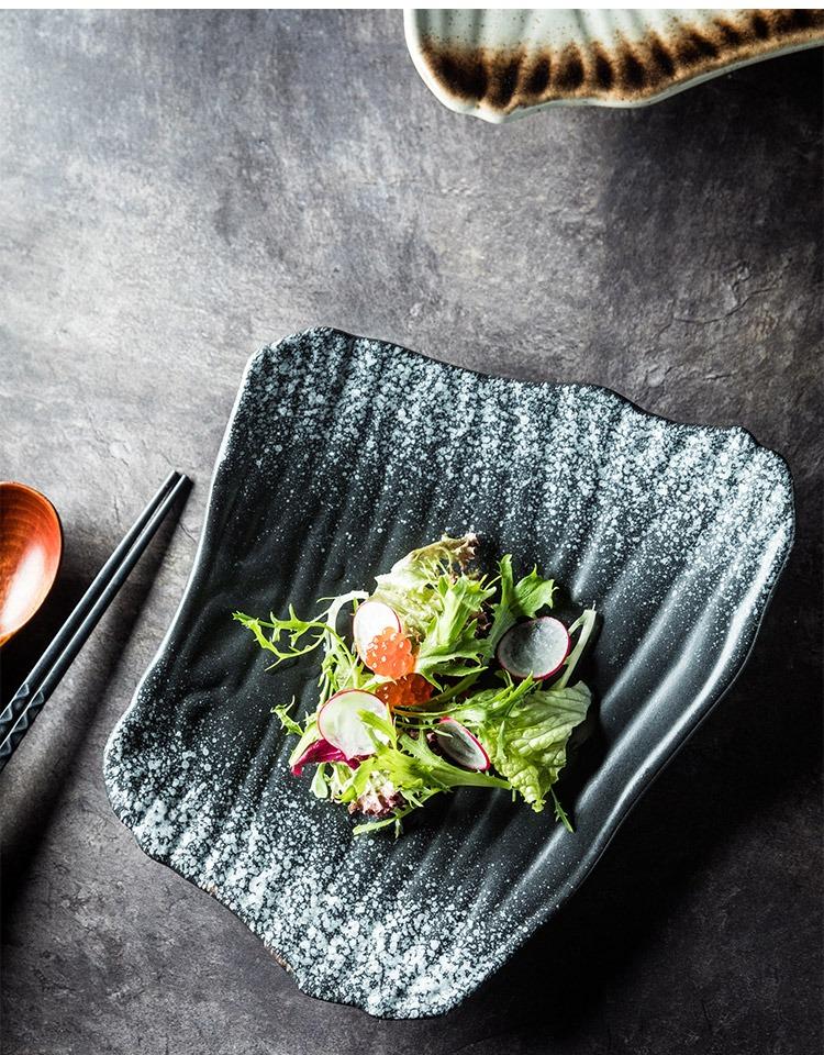 Plato de cerámica de estilo japonés, plato de sushi, plato de sashimi creativo vintage, plato plano, plato irregular, plato de restaurante japonés.