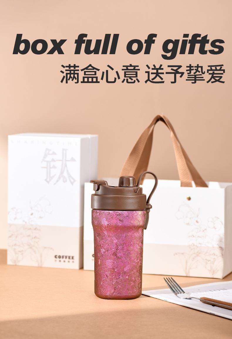Taza de café termo de titanio puro de alta gama exquisita taza de viaje portátil para hombres y mujeres taza de titanio de alto valor taza con popote portátil