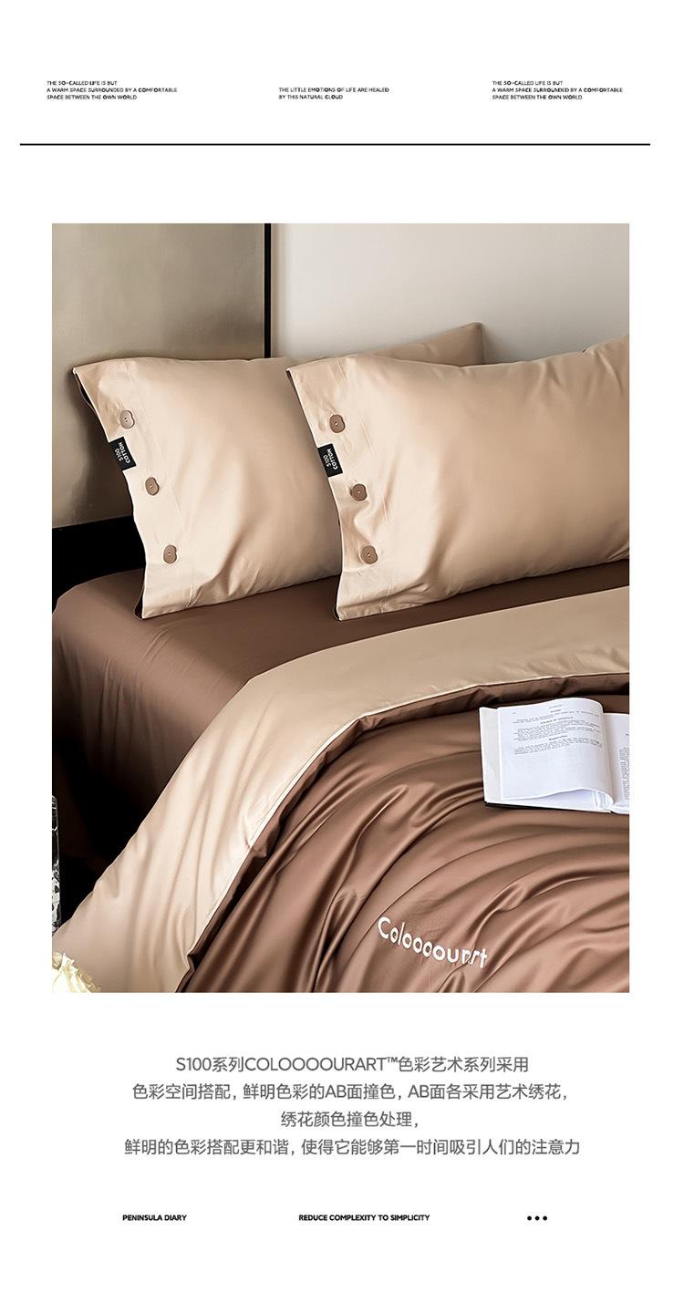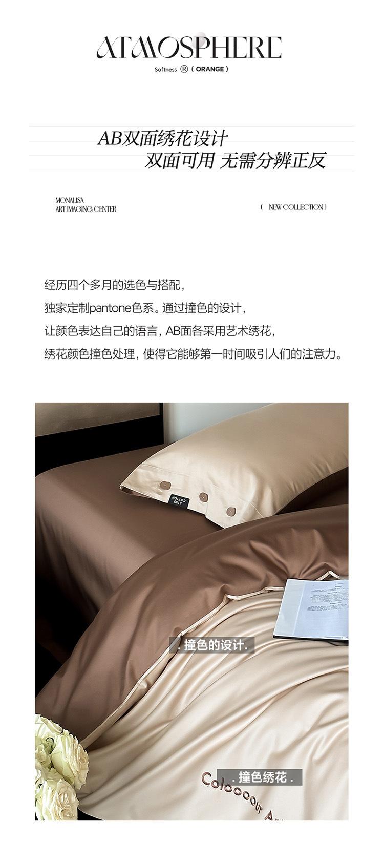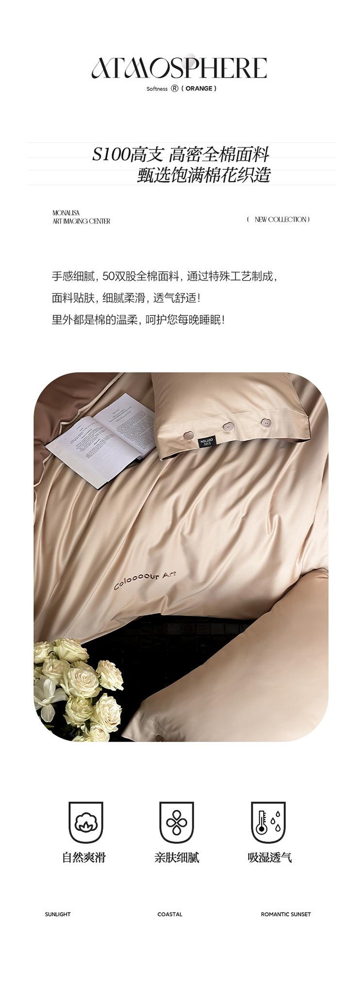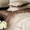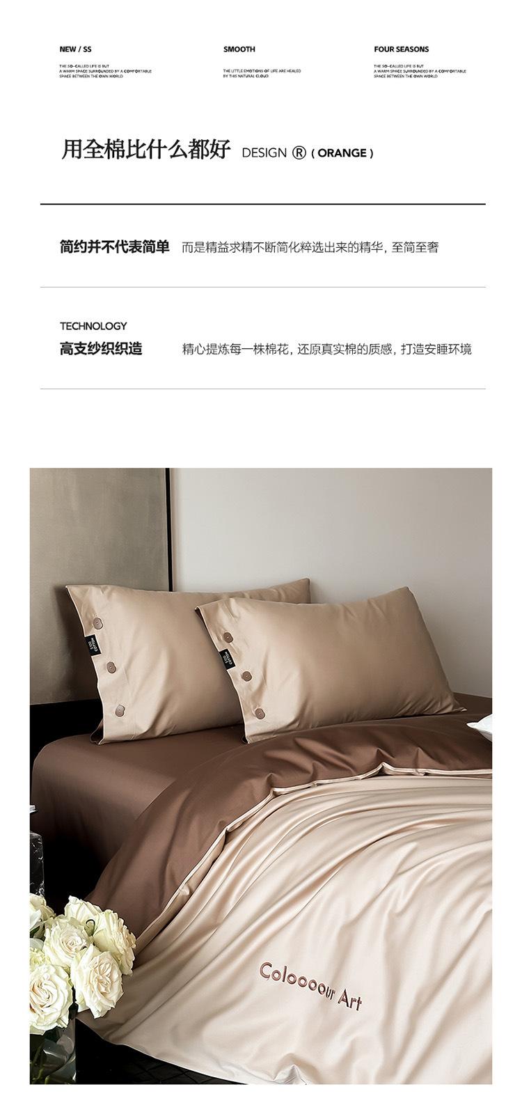 Juego de cama de algodón puro de fibra larga con bordado de satén de alta calidad de 100 piezas, simple, ligero y de lujo, funda de edredón y sábana.