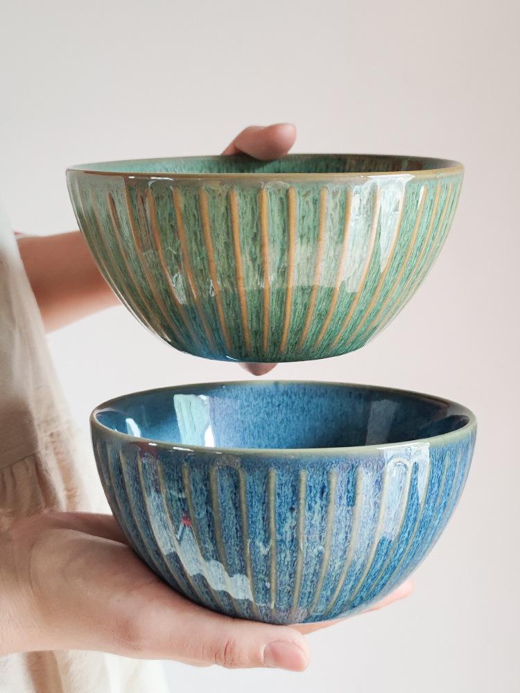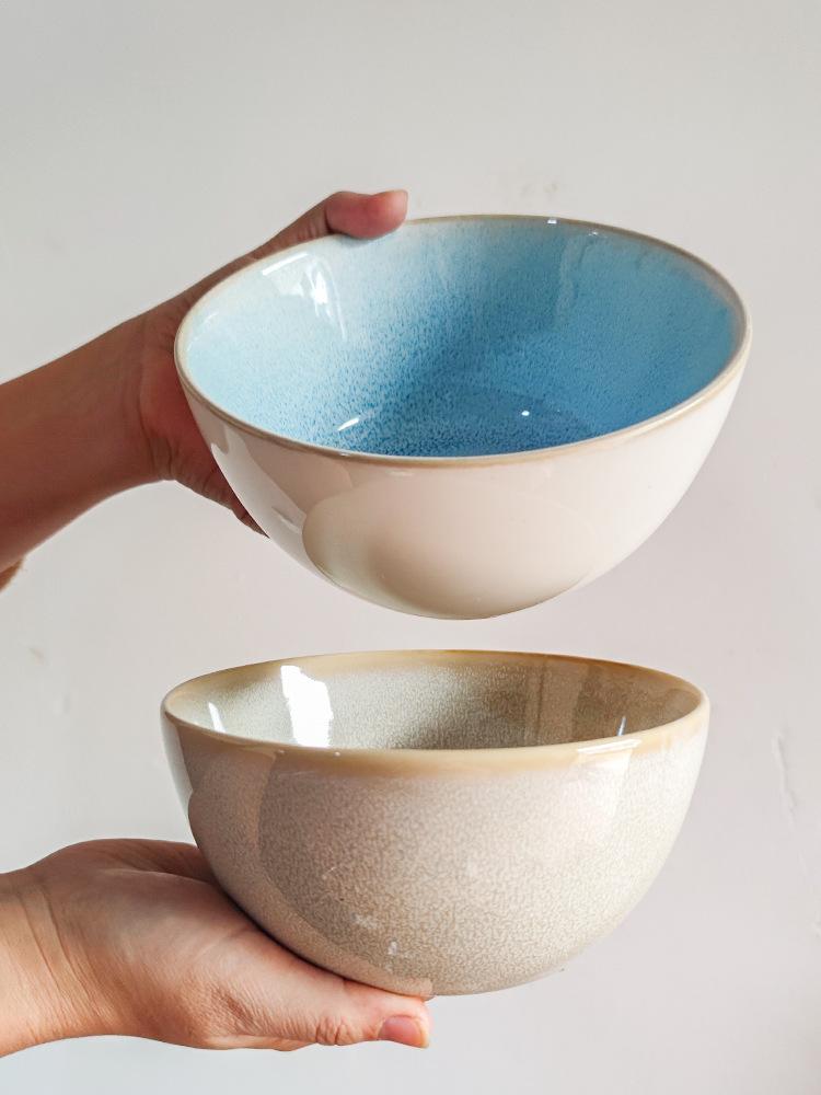 Compra Súper práctico ~ 2 hermosos cuencos de cerámica de 6 pulgadas con cambio de horno, cuencos medianos para fideos, cuencos para ensaladas, cuencos de desayuno retro ligeramente defectuosos al por mayor en Joom.pro