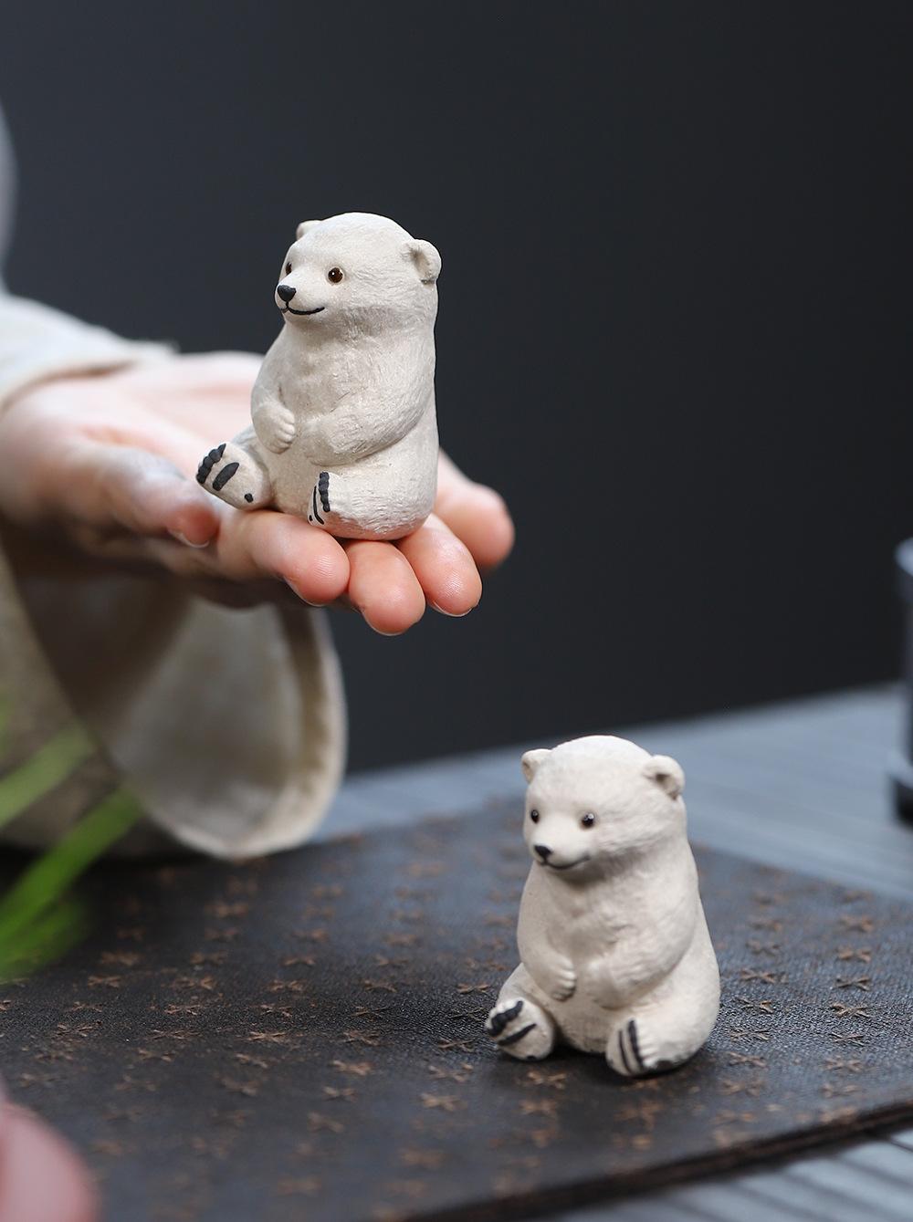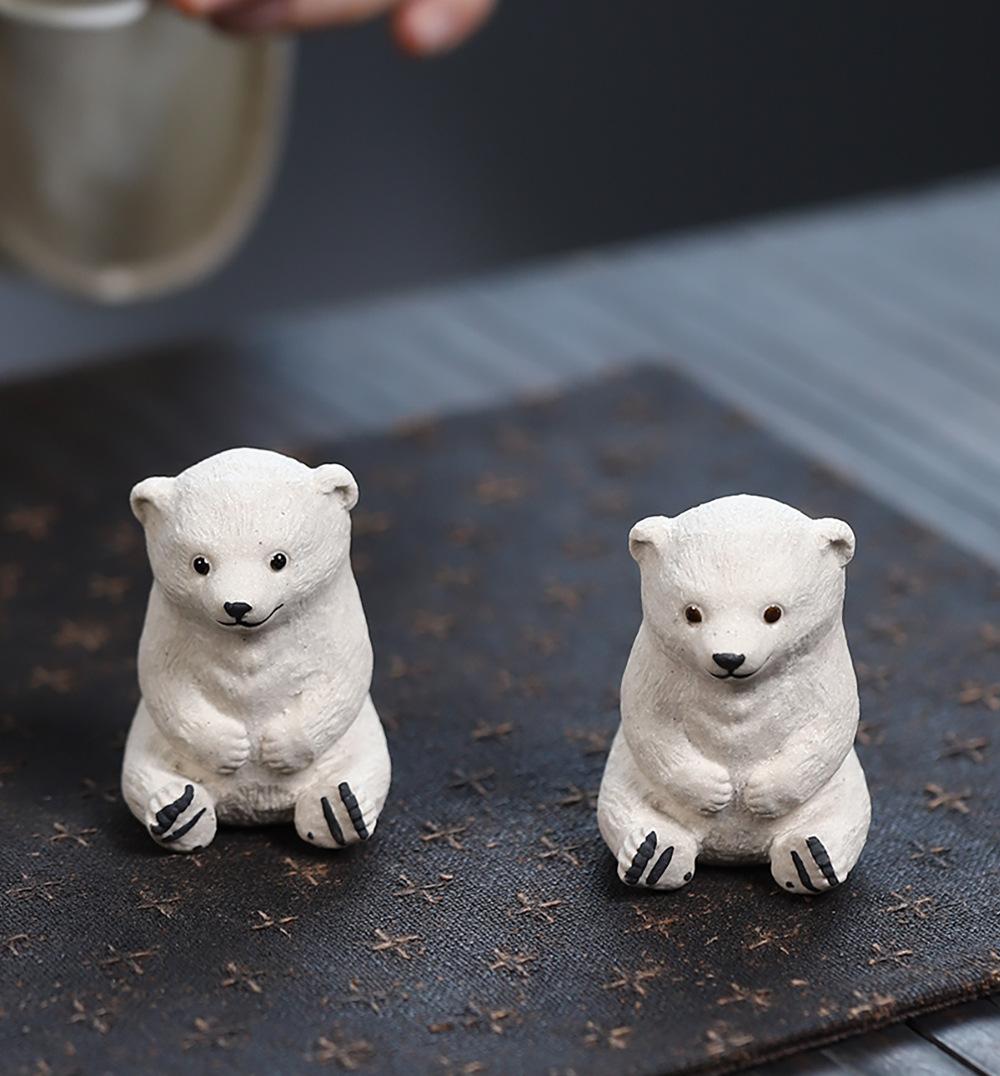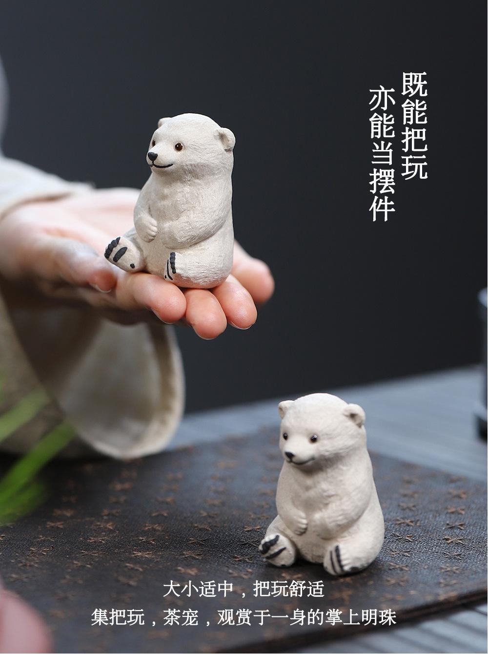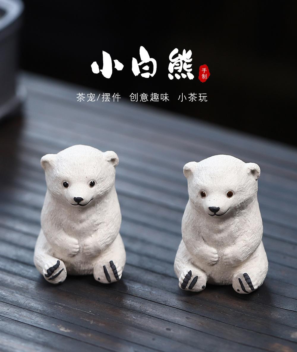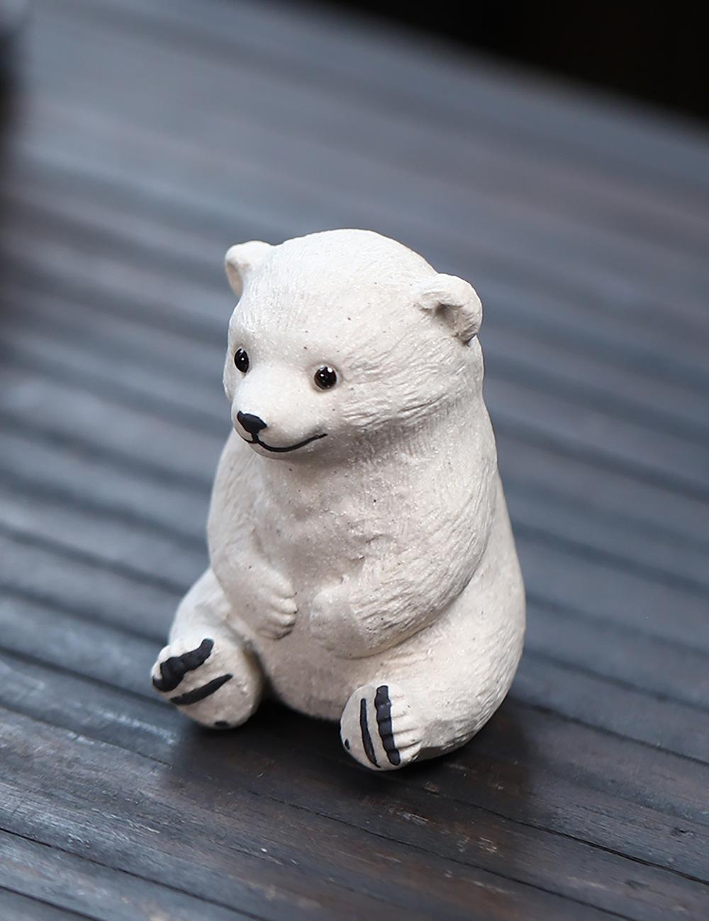 Mascota de Té Yixing Zisha de Mineral Crudo Oso Blanco Adornos Animales Creativos Hecho a Mano Ceremonia del Té Accesorios Juego de Té Mesa de Té