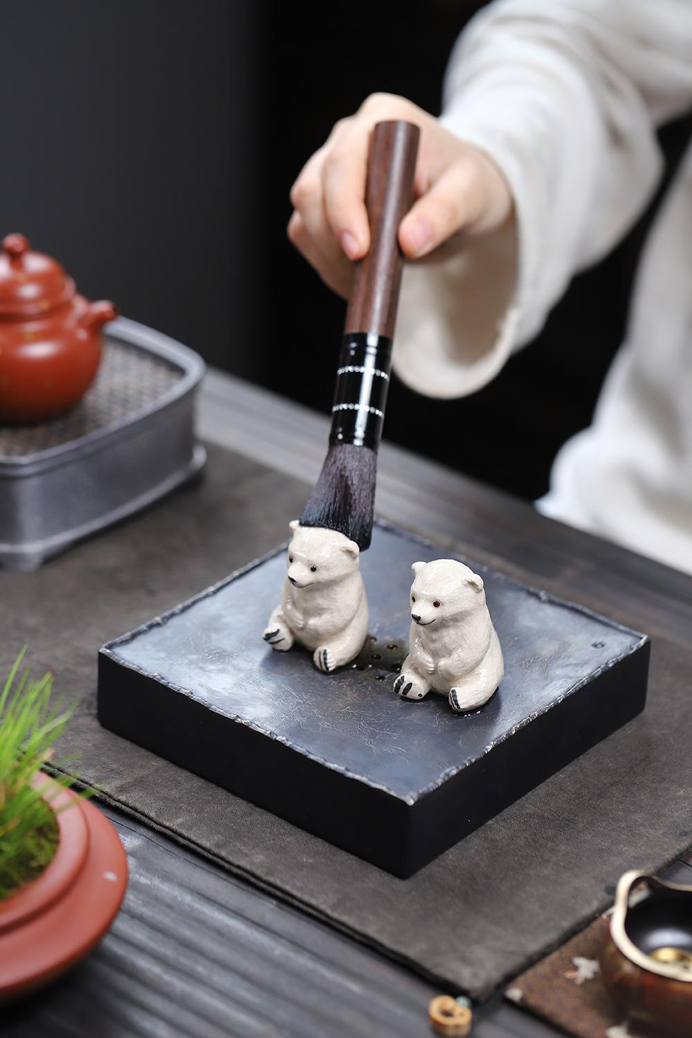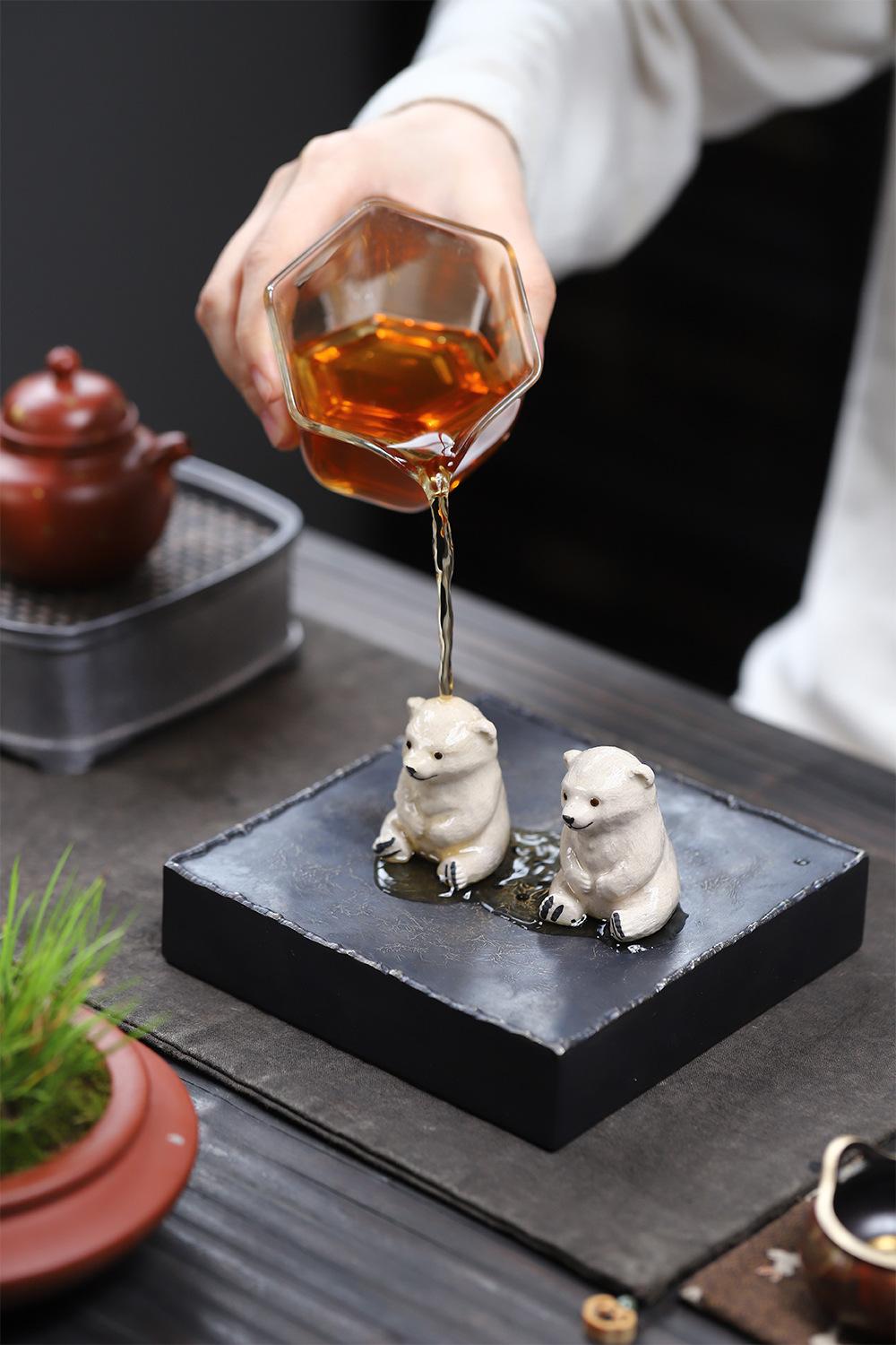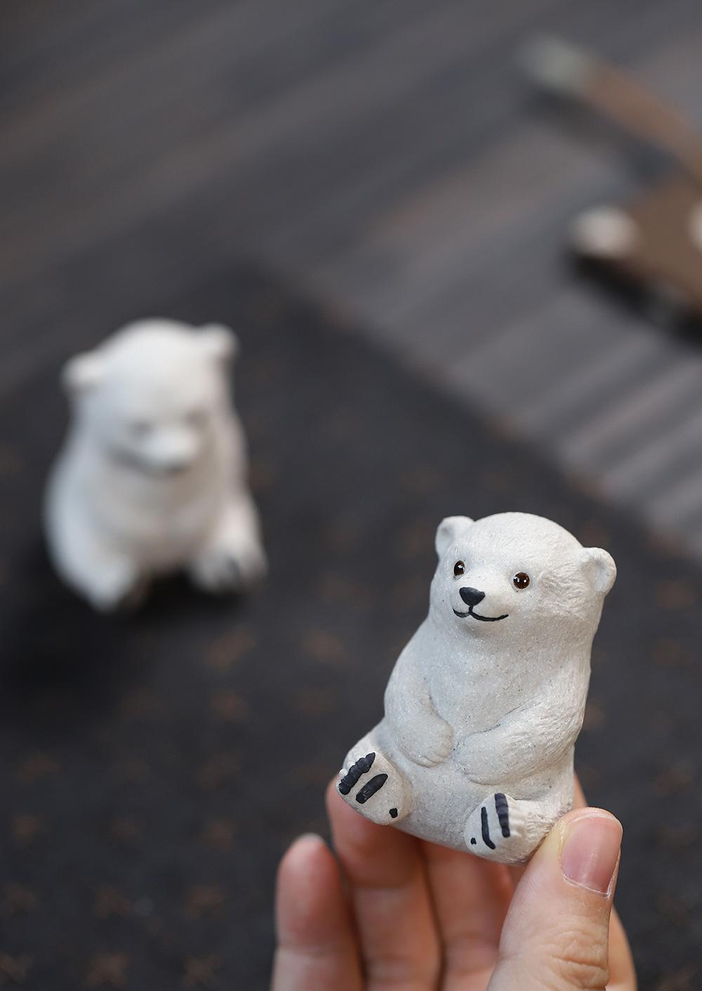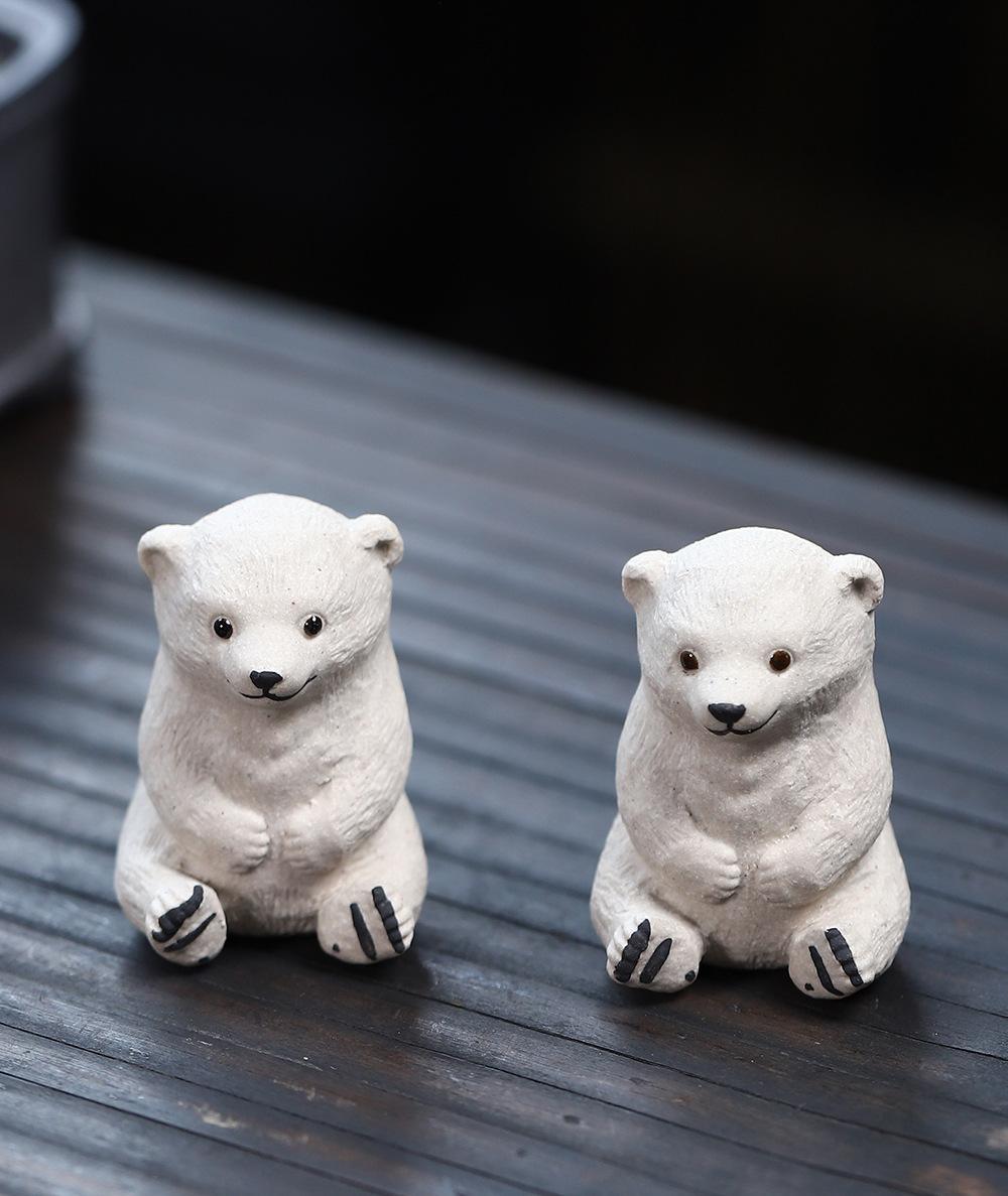 Mascota de Té Yixing Zisha de Mineral Crudo Oso Blanco Adornos Animales Creativos Hecho a Mano Ceremonia del Té Accesorios Juego de Té Mesa de Té