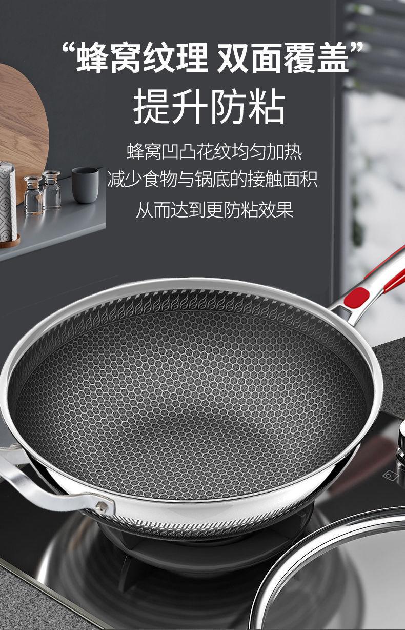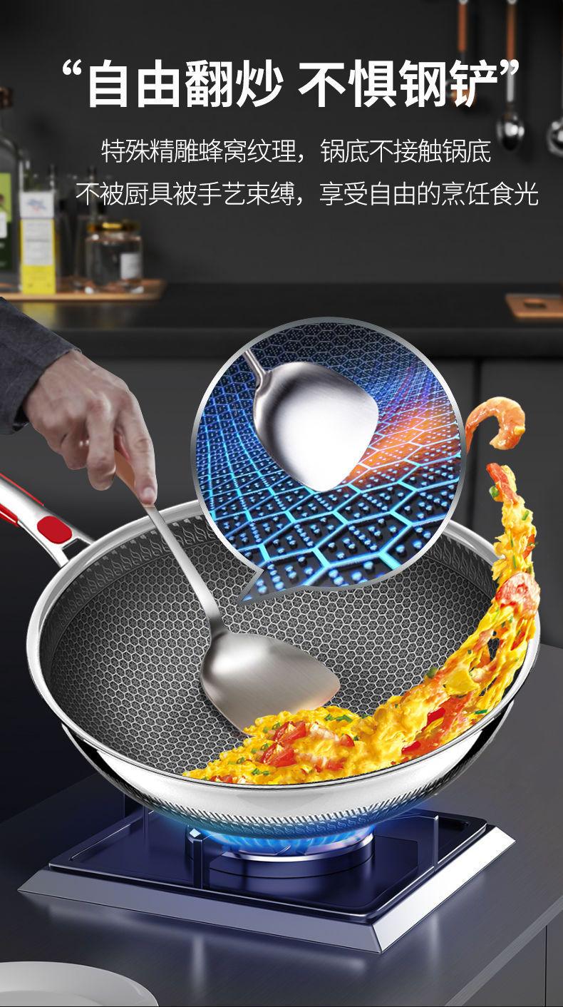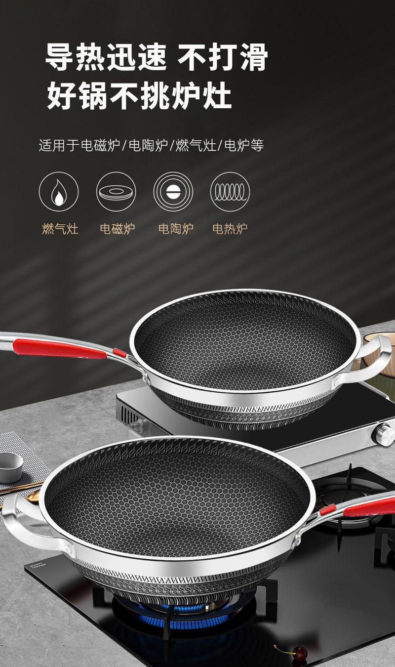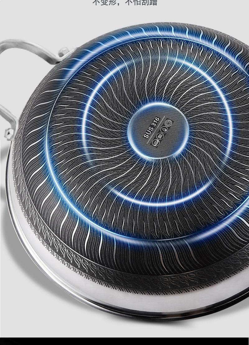 Sartén antiadherente alemana de acero inoxidable 316 sin revestimiento, con pantalla de doble cara, antihumo, para cocina de inducción, wok de gas, olla doméstica