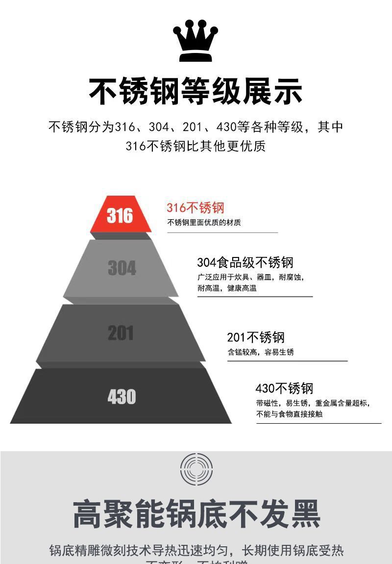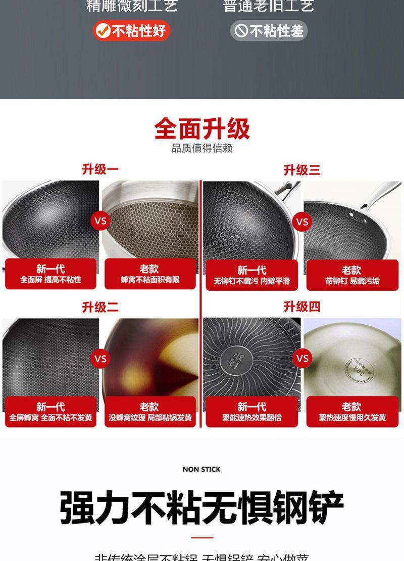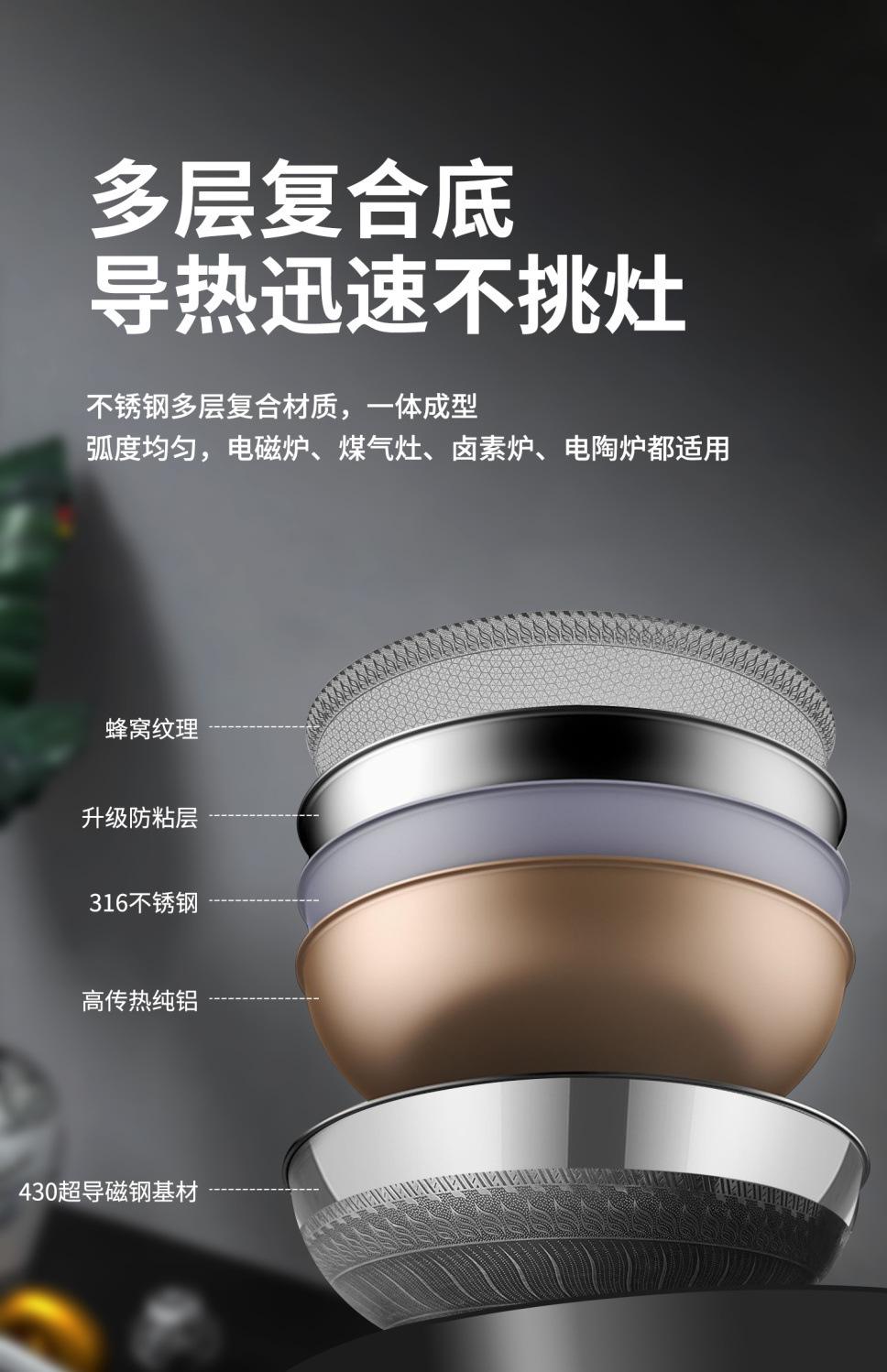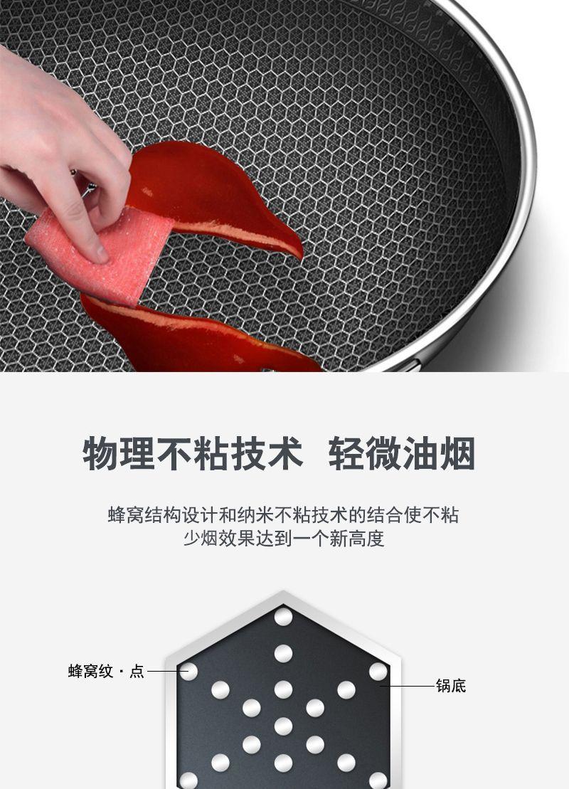 Sartén antiadherente alemana de acero inoxidable 316 sin revestimiento, con pantalla de doble cara, antihumo, para cocina de inducción, wok de gas, olla doméstica