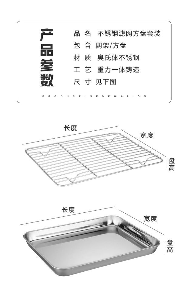 Bandeja de Acero Inoxidable 304 con Rejilla para Control de Aceite Bandeja Cuadrada Comercial para Drenaje de Agua y Fugas de Aceite Bandeja de Aceite Bandeja de Exhibición Bandeja para Espolvorear
