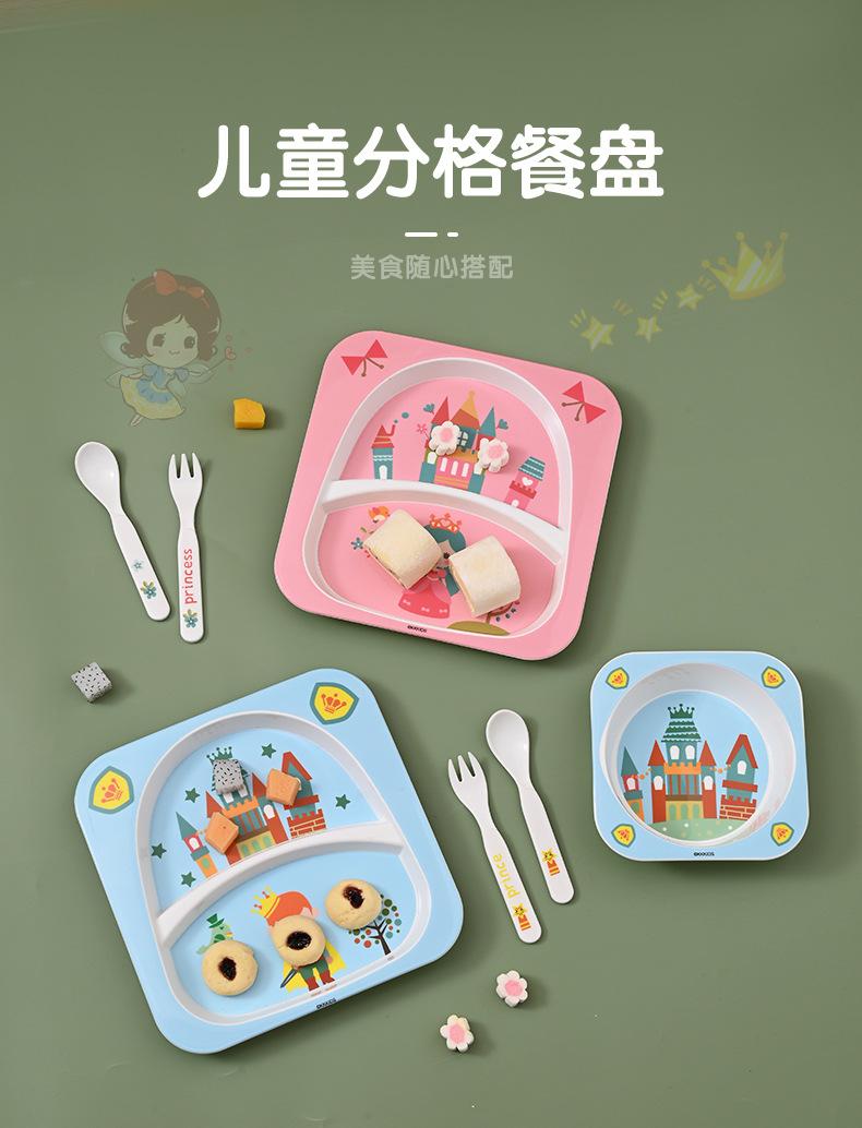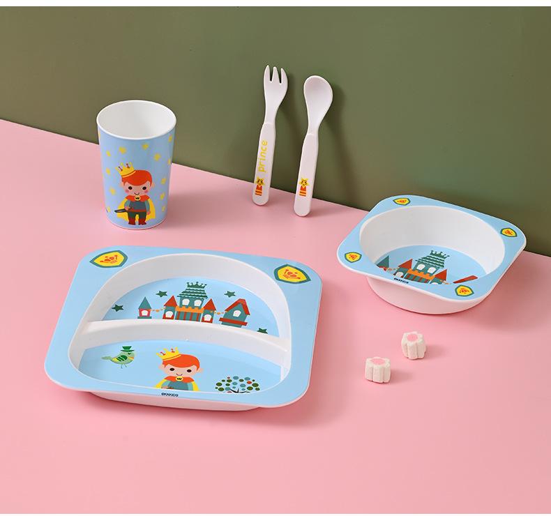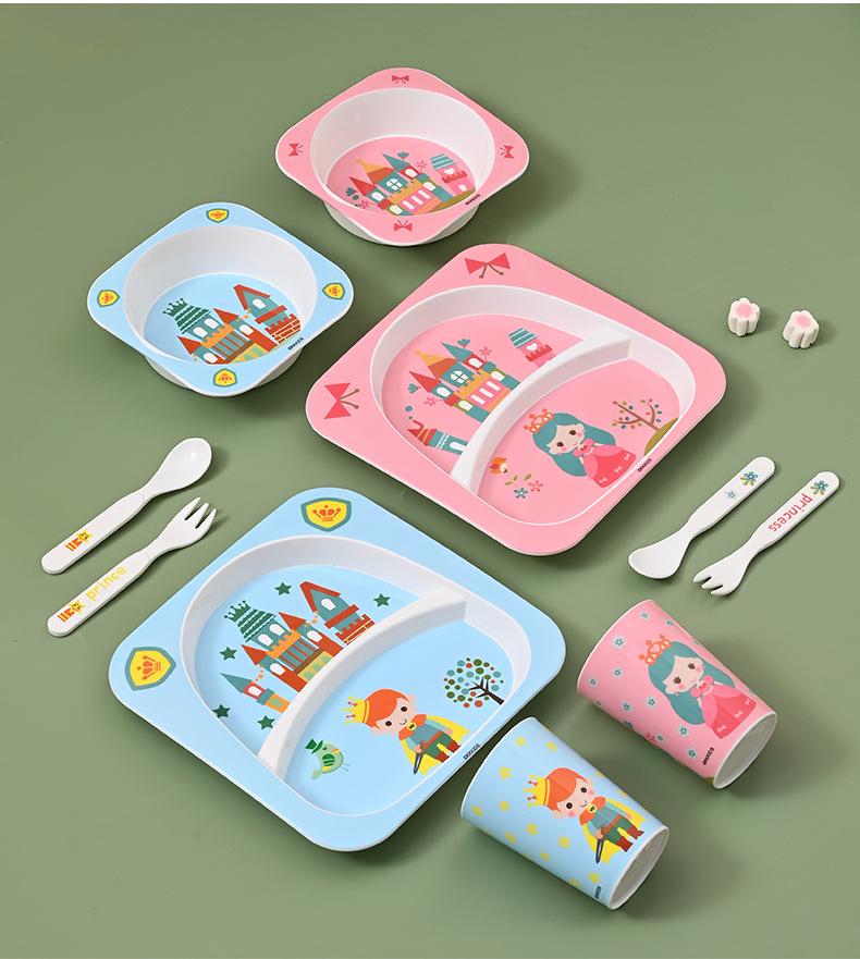Set de Vajilla Infantil de Dibujos Animados Pp para Niños Tazón con Compartimentos para Bebé para Comer Independiente Plato Vaso Tenedor Cuchara Calcomanía Moldeada Regalo Especial