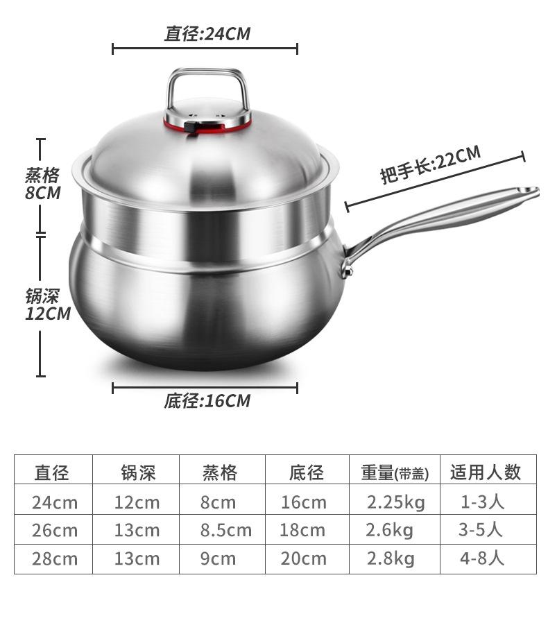 24cm small wok + steaming grid [extra thick 316 steel, multi-functional] free three-piece set