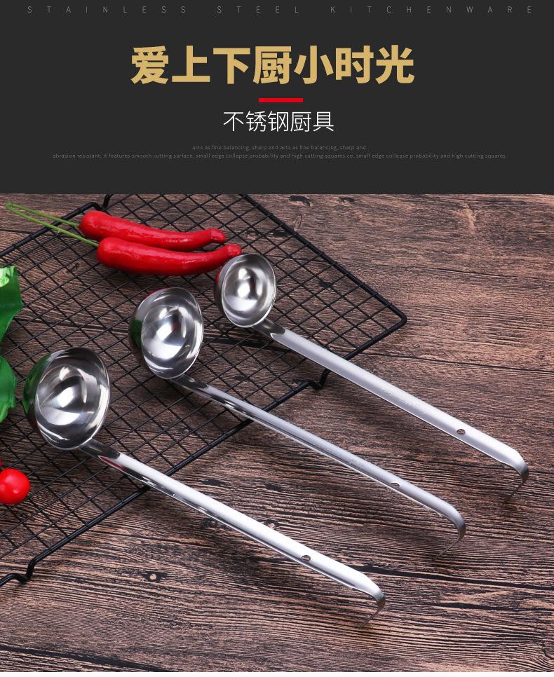 Cuchara de acero inoxidable para jugo, cuchara de oz no magnética de mango largo con gancho, cuchara para sopa, utensilios de cocina para hotel, cuchara para polvo de fruta, cuchara para cocinar al por mayor