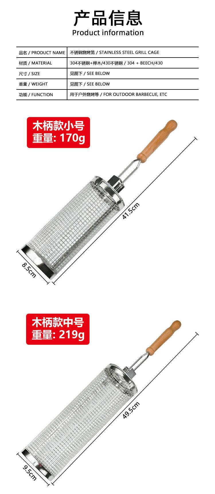 Jaula Redonda de Acero Inoxidable para Barbacoa para Exteriores Barbacoa Ahumada Jaula Portátil Malla para Barbacoa Tambor Giratorio Parrilla Parrilla Barbacoa