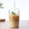 Taza de leche de vidrio de borosilicato, taza cuadrada para café, taza para bebidas frías con tapa, tubo de vidrio, pajita, taza de agua al por mayor