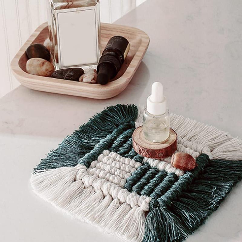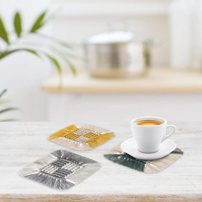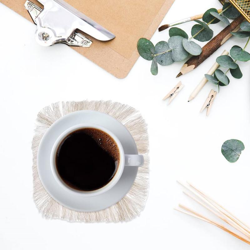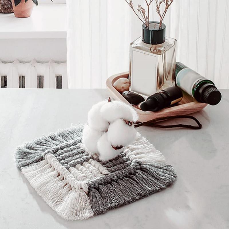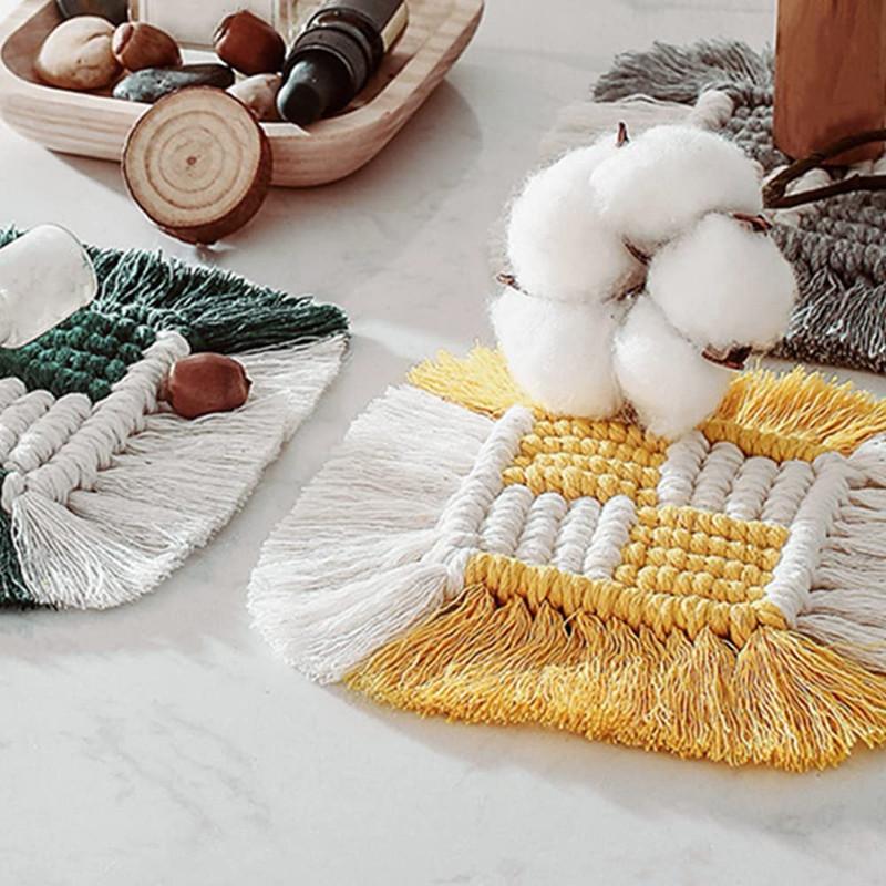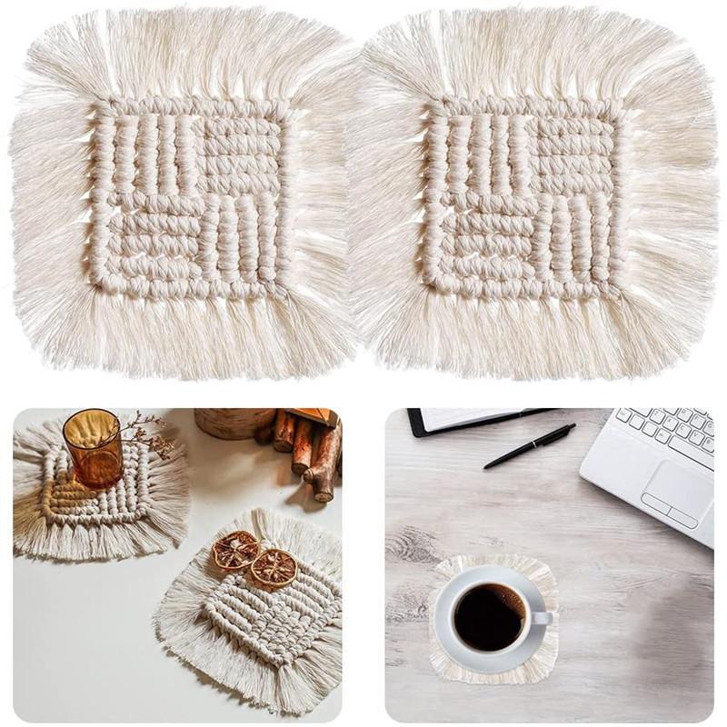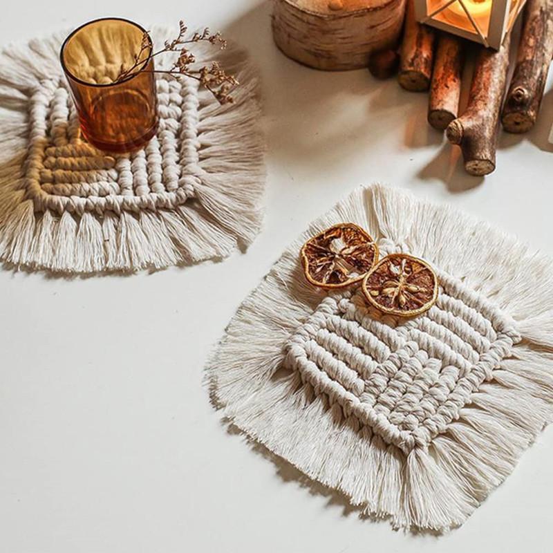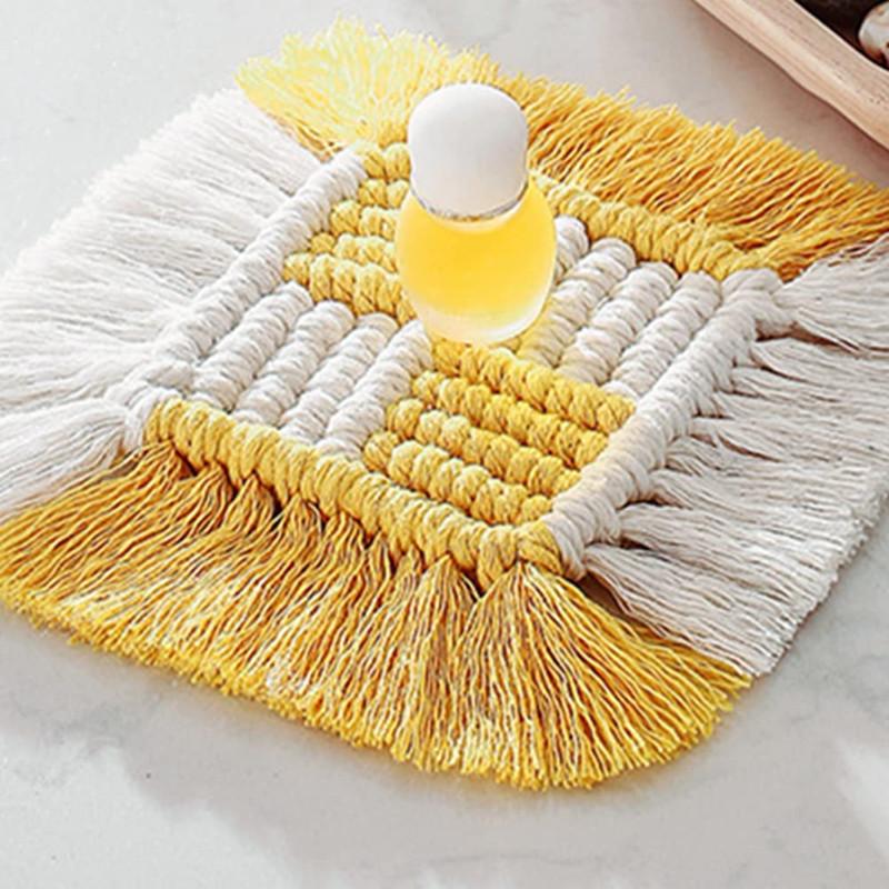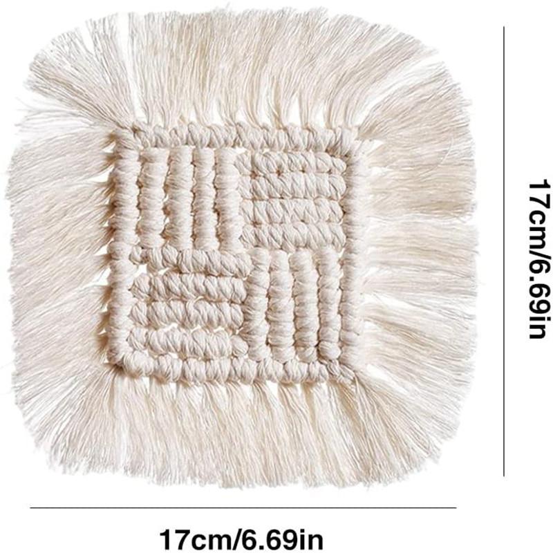 Tapete aislante de cuerda de algodón tejido, tapete cuadrado con borlas, tapete aislante para taza de té, tapete decorativo para café