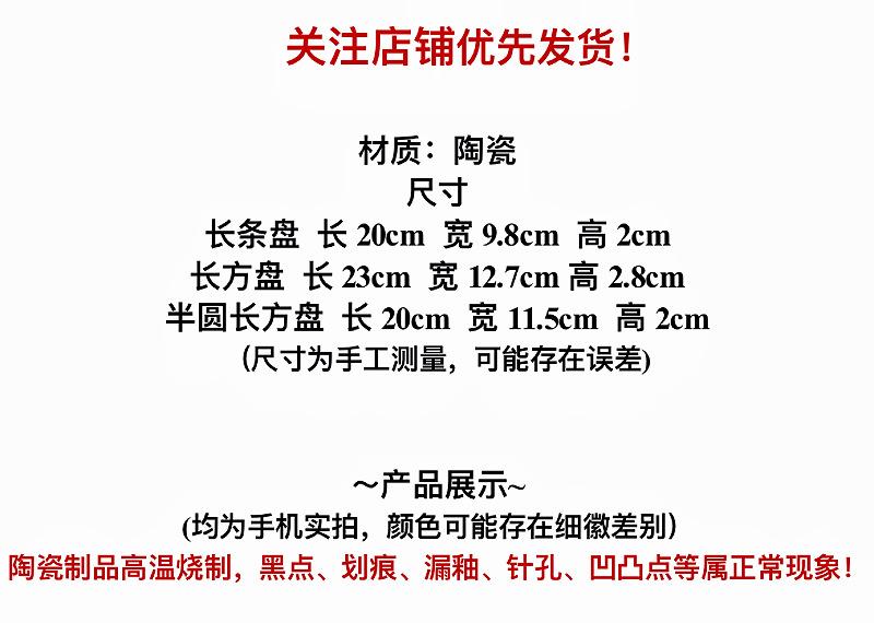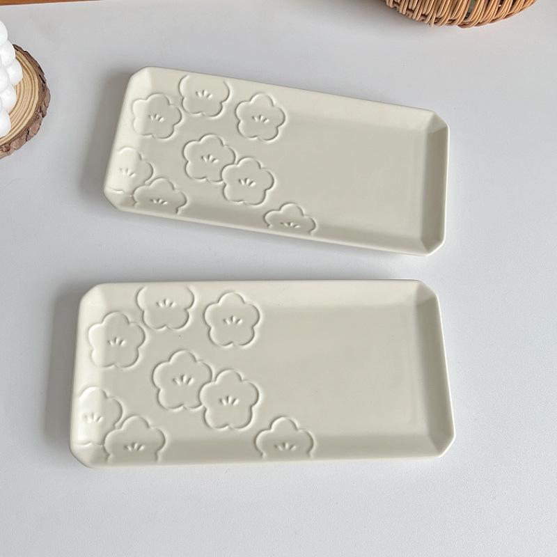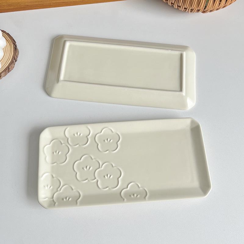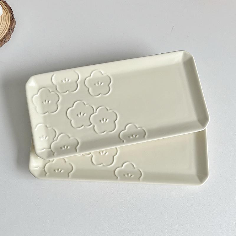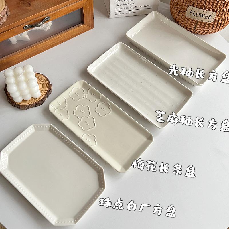 Beige plum blossom long plate, Bead dot white rectangular plate, Bead dot blue rectangular plate, Glossy recta...
