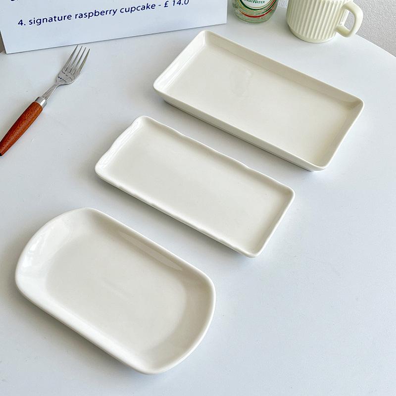 Plato Cuadrado Largo Simple Estilo Japonés Plato para Postre Plato Hogar Plato de Cerámica Creativo Plato Occidental Plato para Sushi