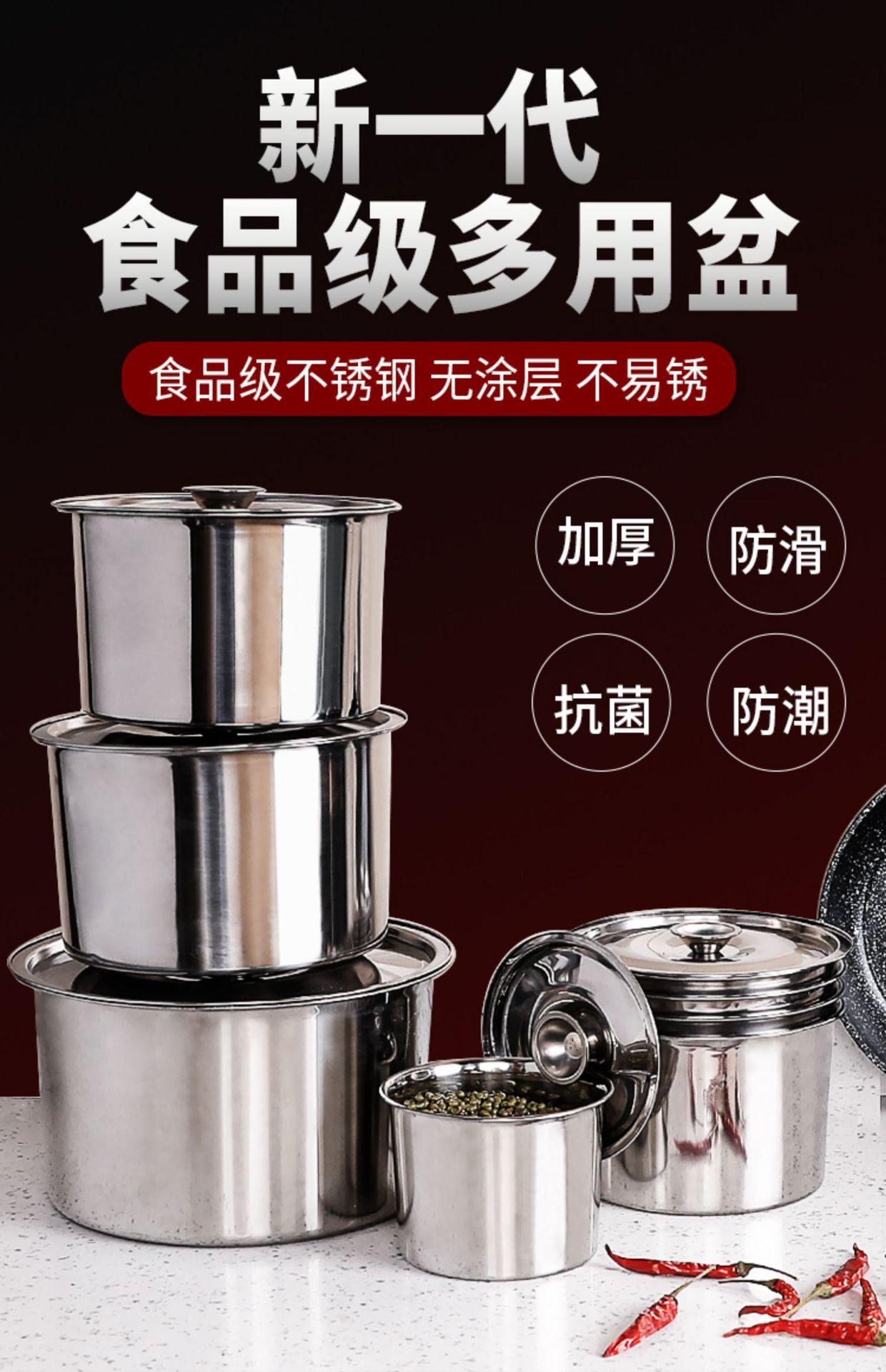 Cuenco de acero inoxidable 304 de grado alimenticio para condimentos de cocina, cuenco comercial para aceite con tapa, cuenco de hierro pequeño para el hogar, redondo