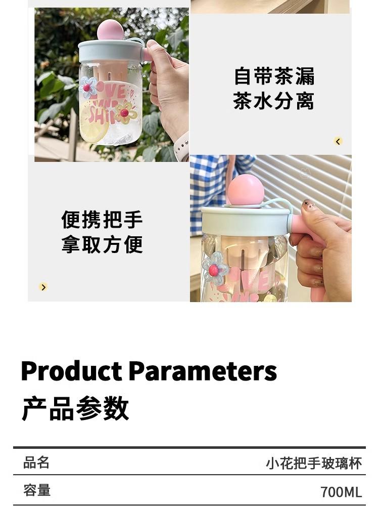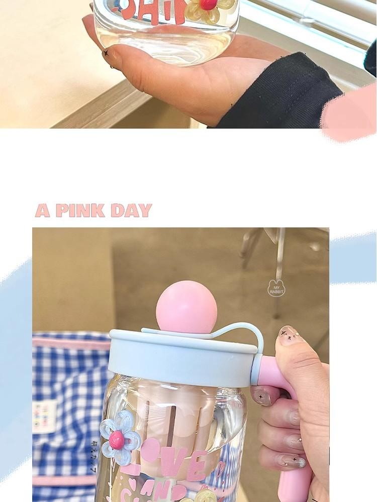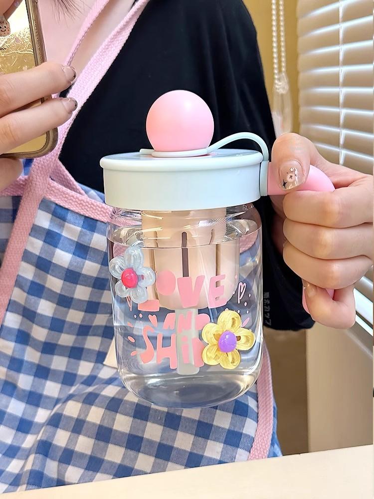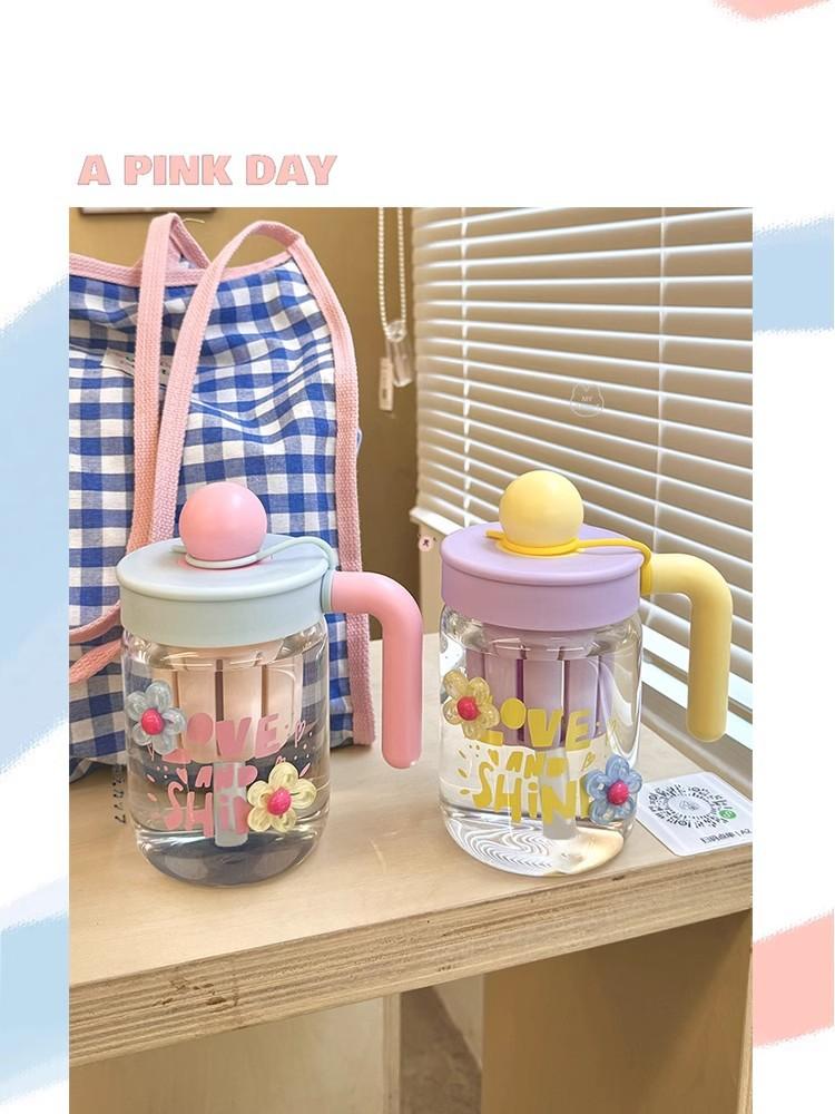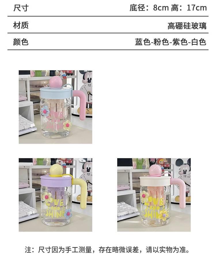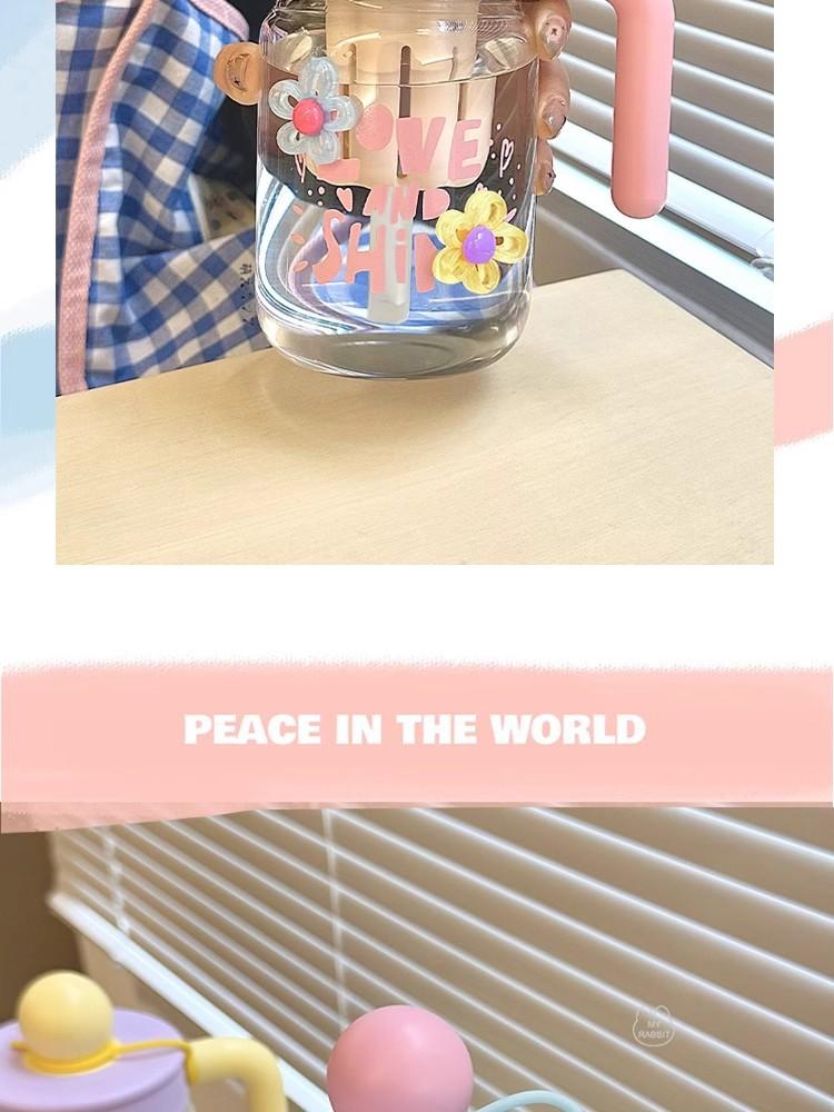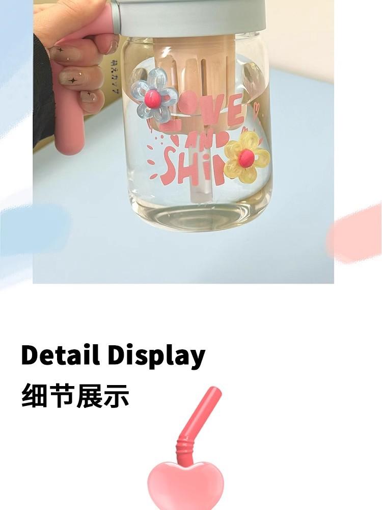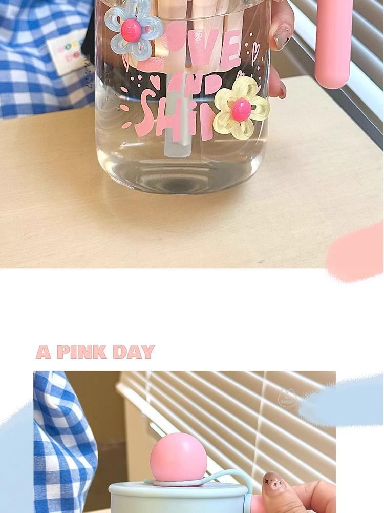White and pink love glass + small flower sticker, Green and pink love glass + small flower sticker, Purple yel...