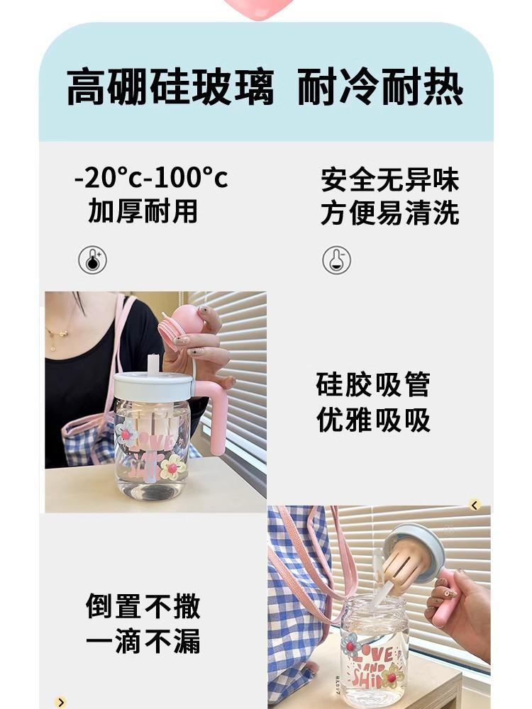 Taza de té de oficina de vidrio de alto valor de verano con pajita para niñas 2025 nueva taza para té