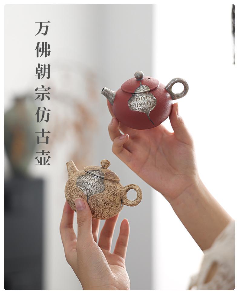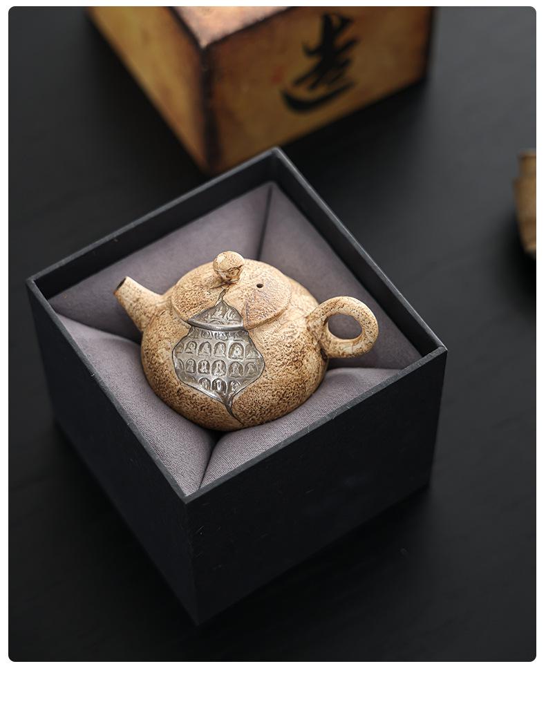 Cerámica Gruesa Olla Wanfo Tetera de Barro de Roca Vieja Tetera de Cerámica Vintage para el Hogar Olla Individual Juego de Té Kung Fu Caja de Regalo para Tetera