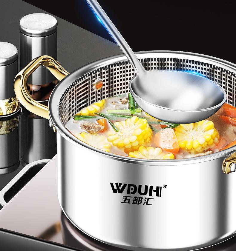 Cuchara de sopa de acero inoxidable de grado alimenticio, cuchara de sopa grande y gruesa con forro para el hogar, utensilios de cocina grandes, raspador de ollas
