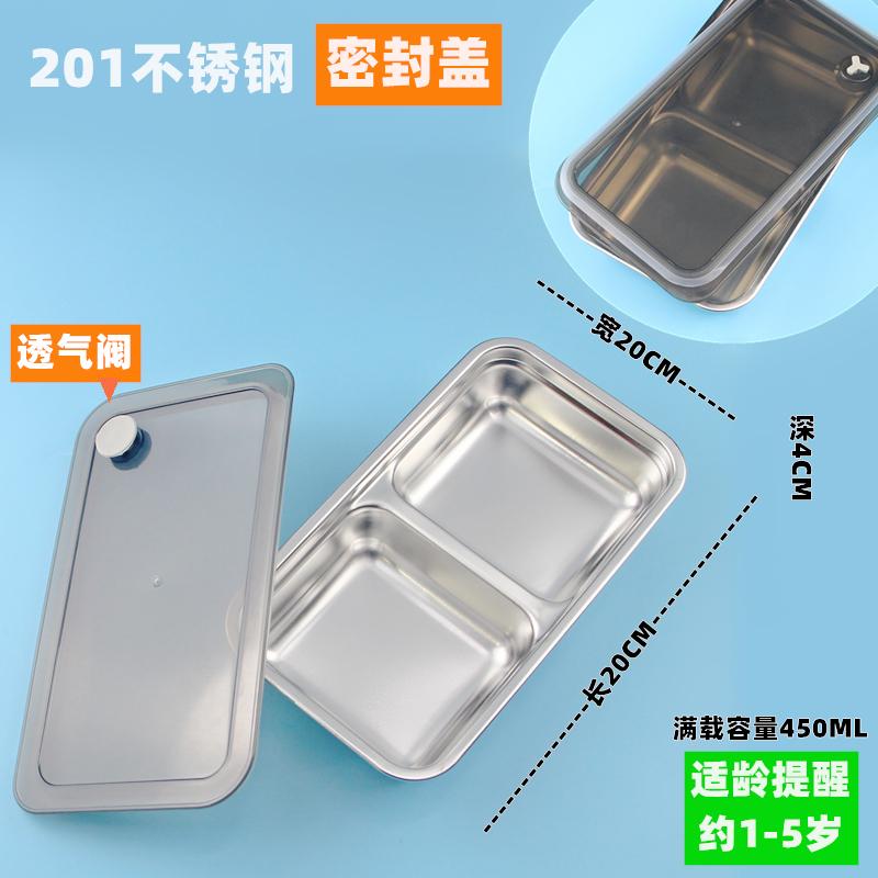 Acero Inoxidable 304 Adulto 2 Compartimentos Jardín de Niños Niños Bebé Lindo Plato Dividido para Arroz Plato Hondo Grueso de Dibujos Animados