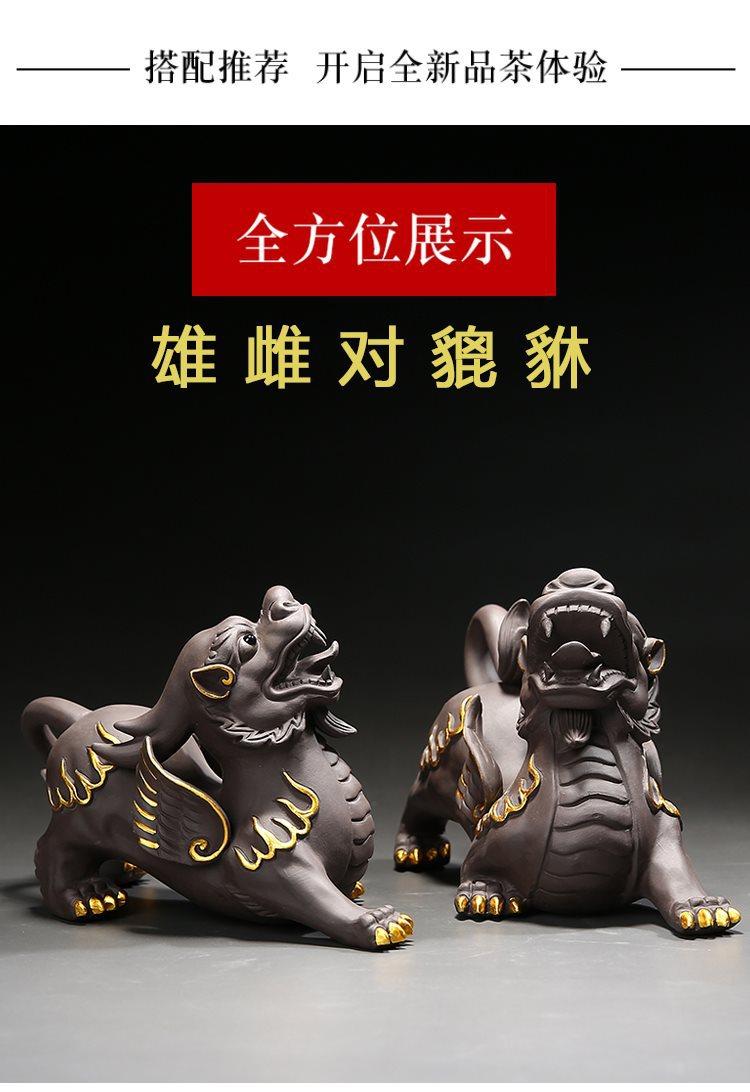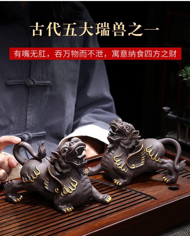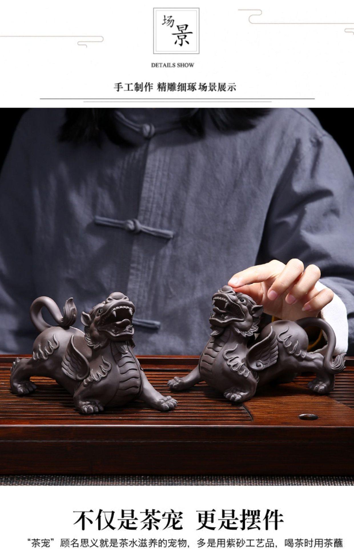 Mascota de Té Pixiu de Arena Morada Puede Criar Hecho a Mano Personalizado Juego de Té Casa de Té Ceremonia del Té Accesorios Adornos para Mesa de Té