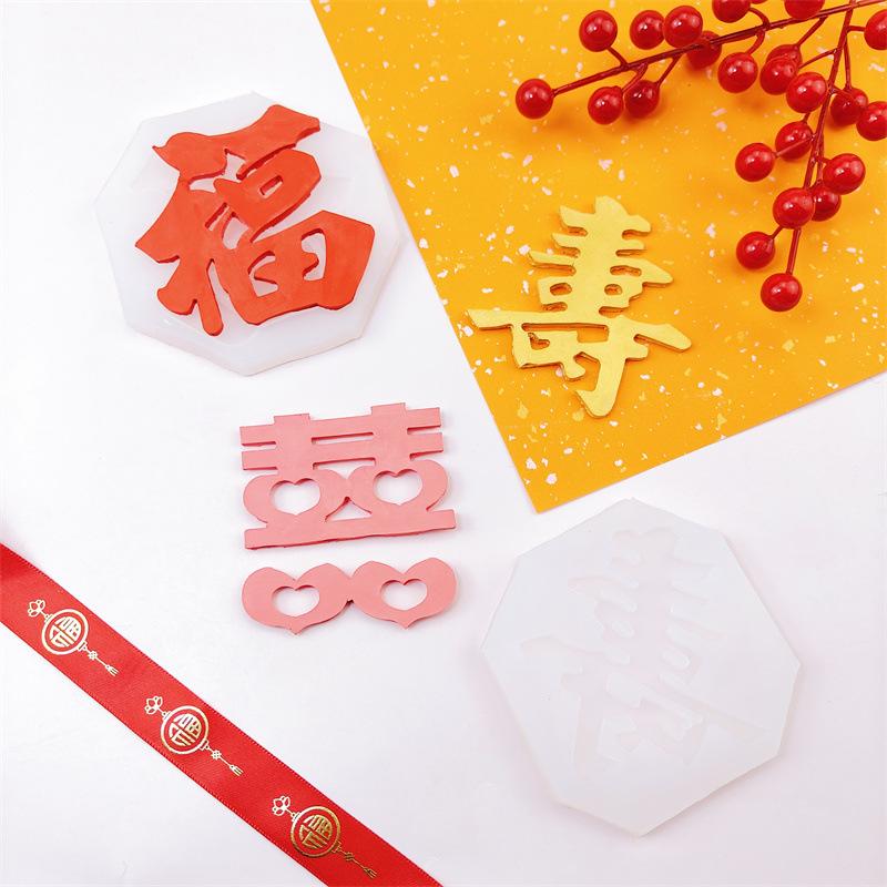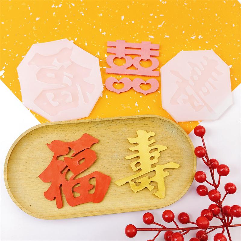 Nombre: Molde de Silicona Fondant Fu Shou Xi Zi Herramientas para Hornear Chocolate DIY Molde Decoración Pastel de Cumpleaños