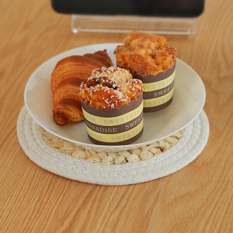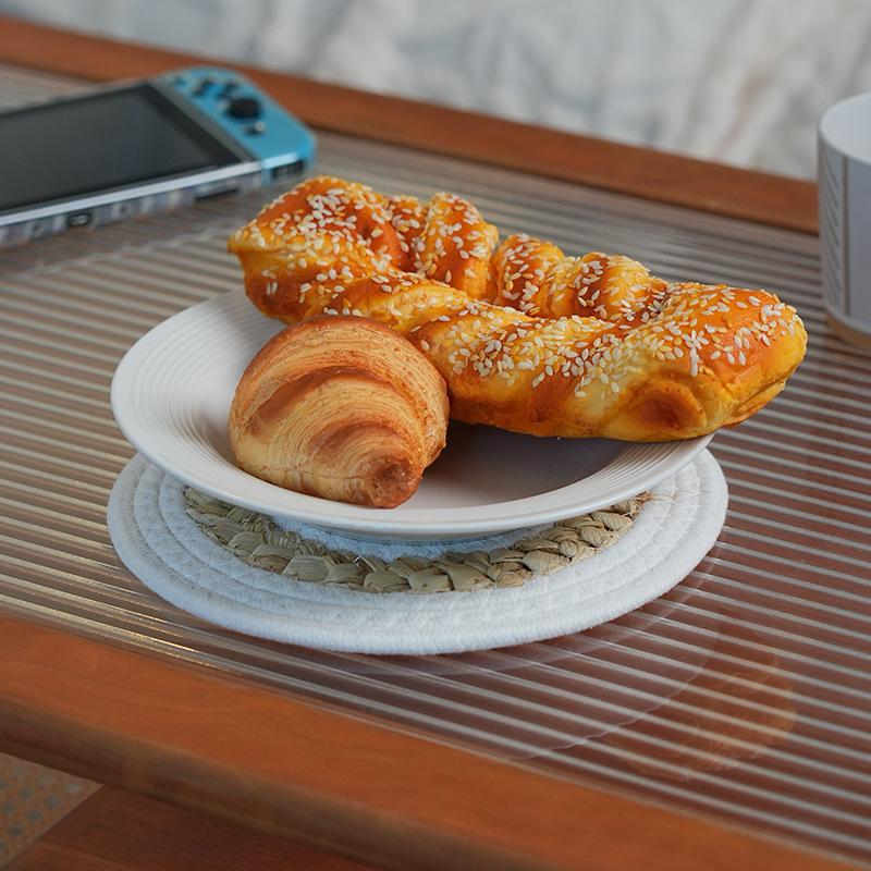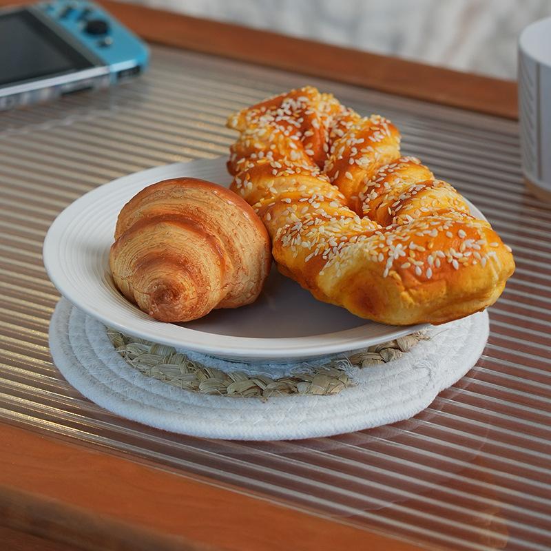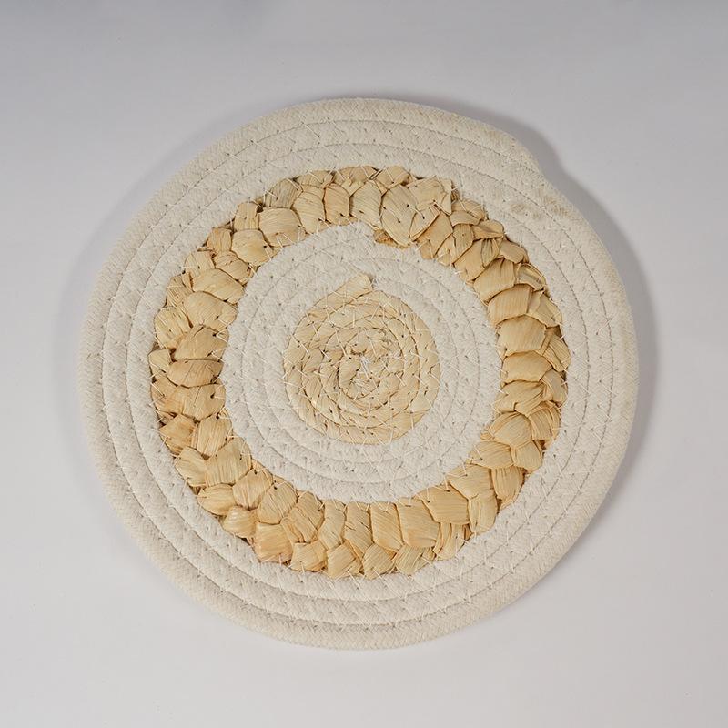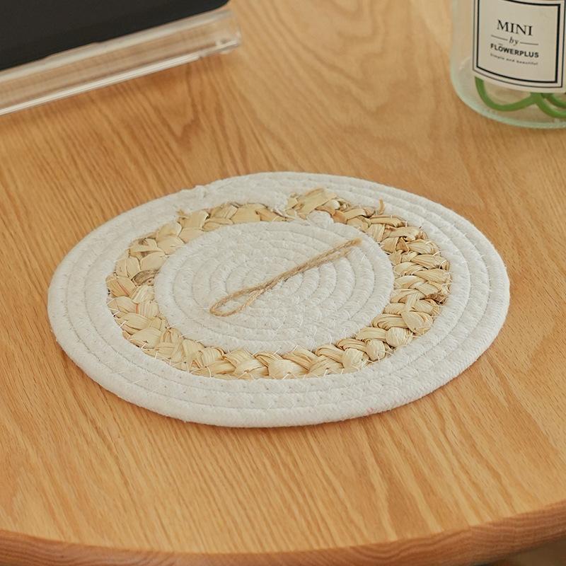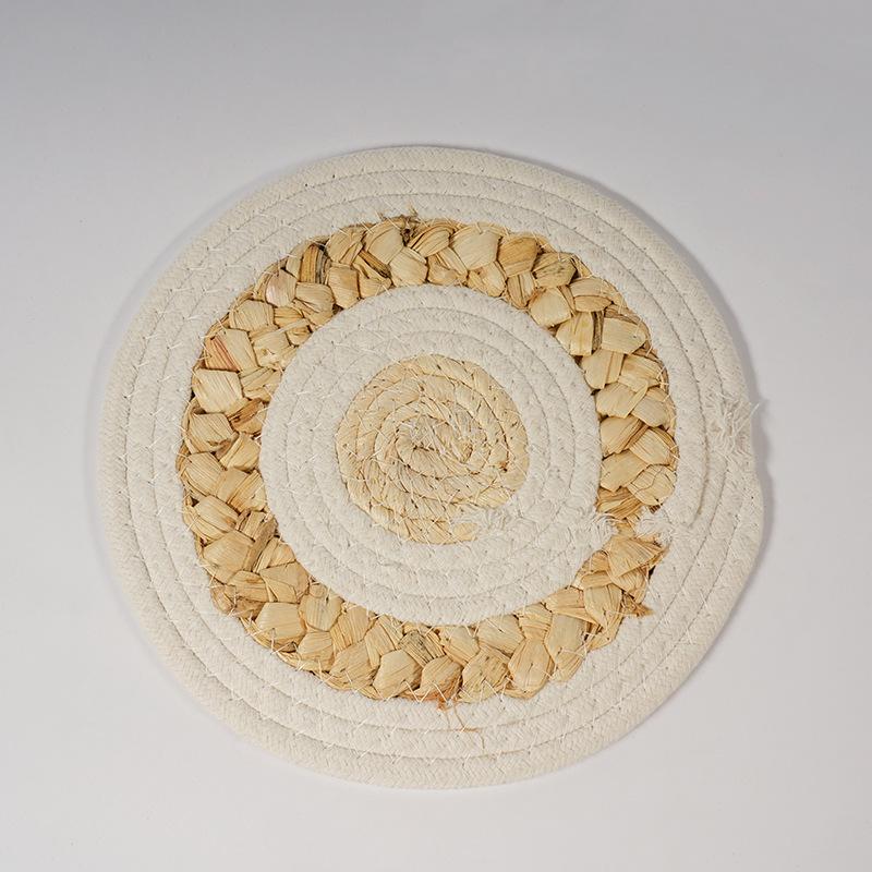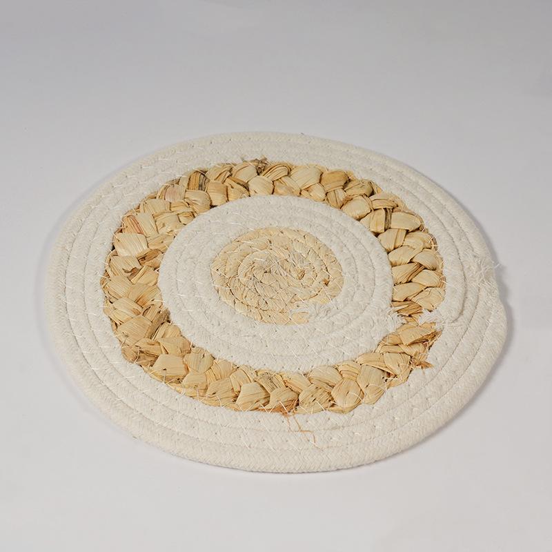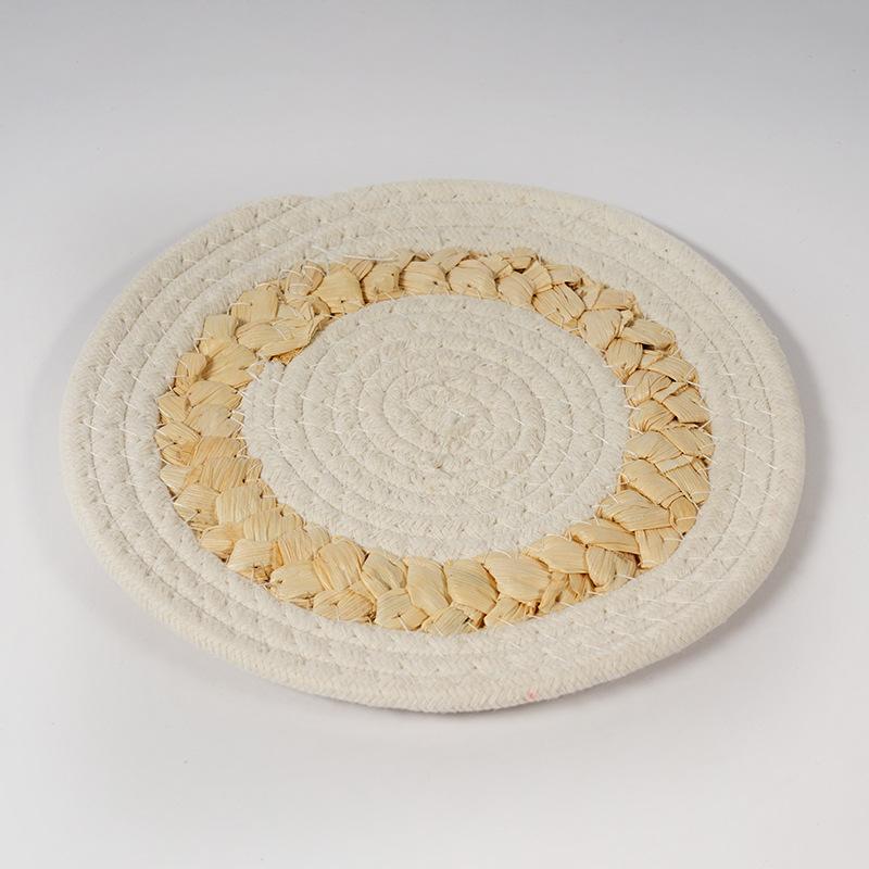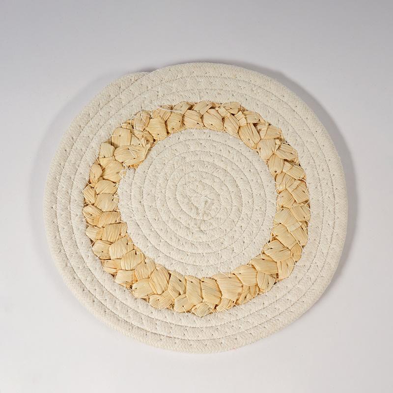 Mantel individual de paja redondo simple de estilo nórdico, tapete aislante térmico grueso para mesa de comedor, tapete antideslizante simple de estilo occidental para mesa de comedor