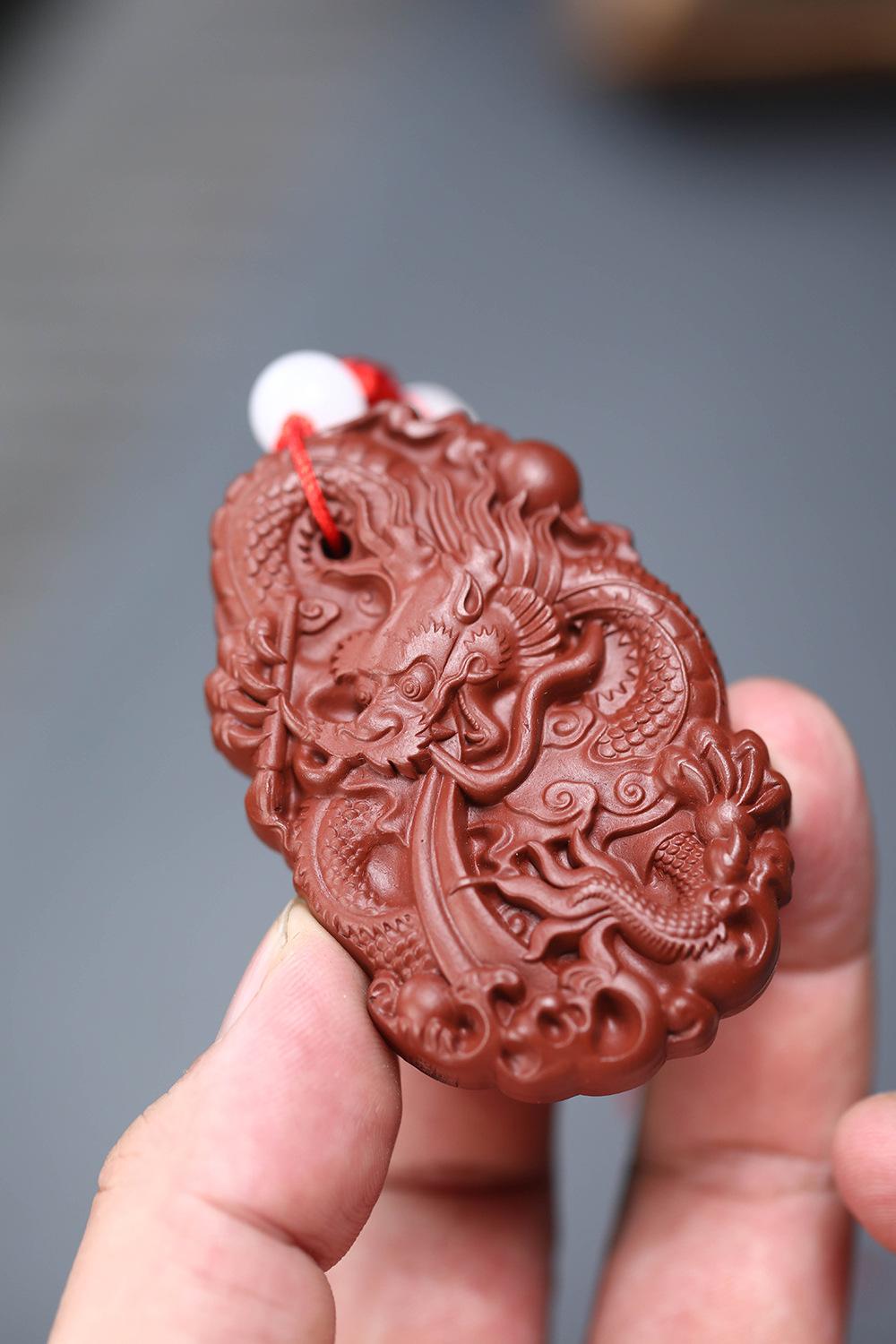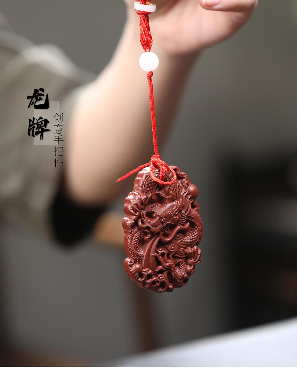 Adornos para mascotas de té con mango hueco, hechos a mano, con diseño creativo de Yixing Zhu Ni Da Hong Pao, marca de dragón jugable