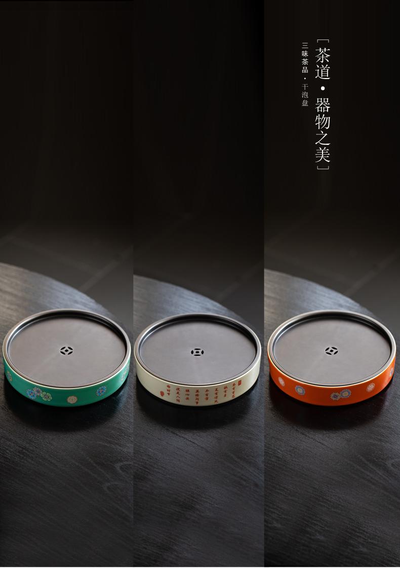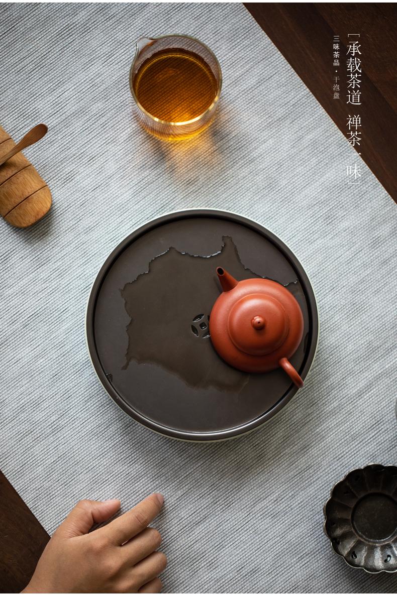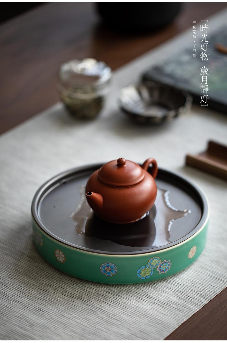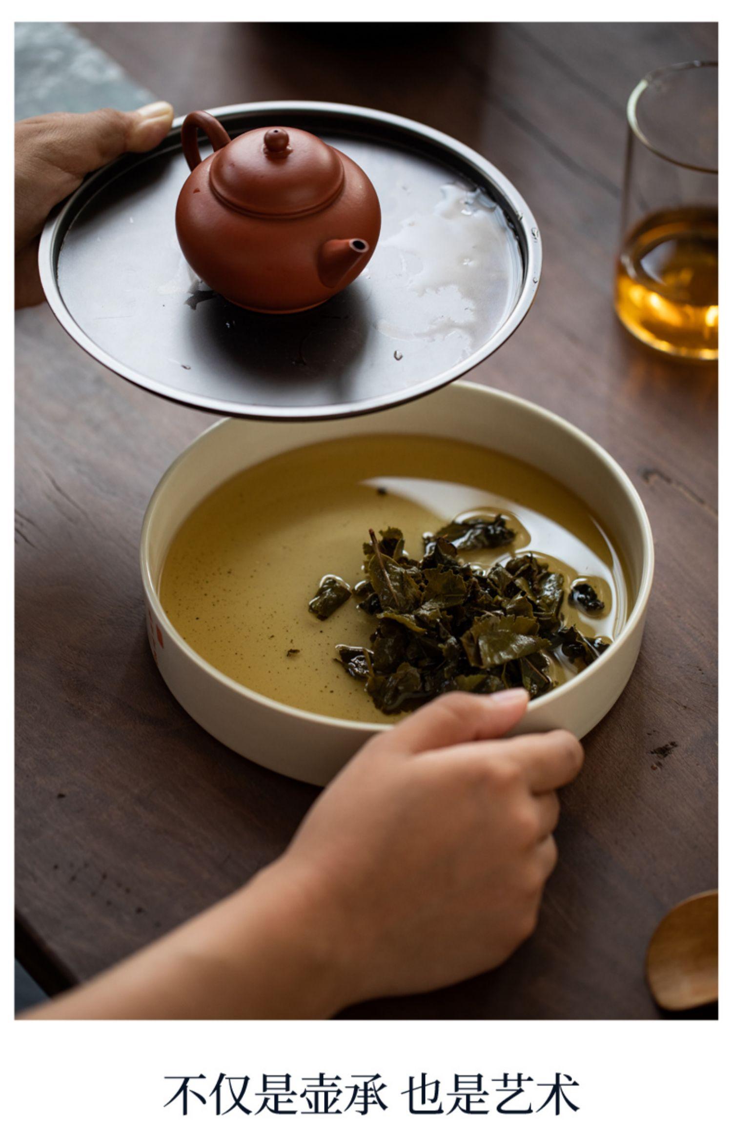 Sanwei Tea Qinghuan Bandeja de Té Bolsillos Secos Bandeja de Té Hogar Simple Pequeño Mar de Té Tipo Almacenamiento de Agua Olla Redonda con Bandeja para Juego de Té