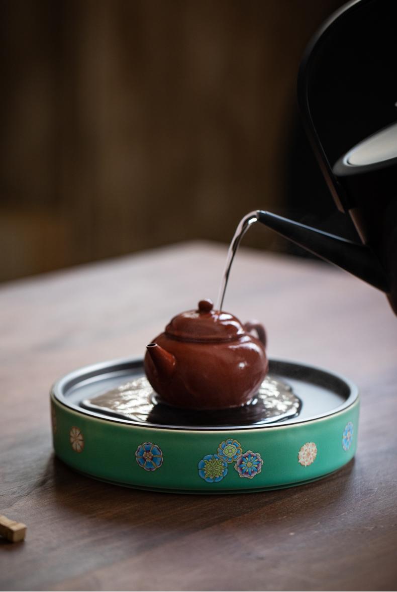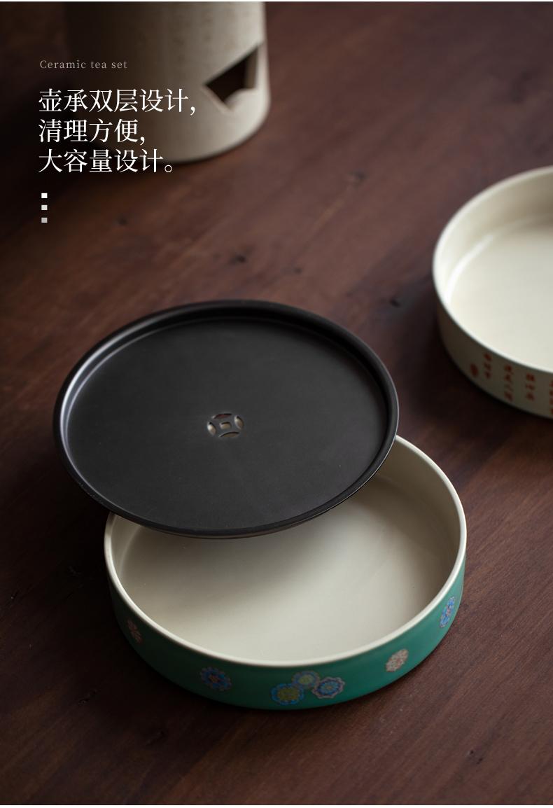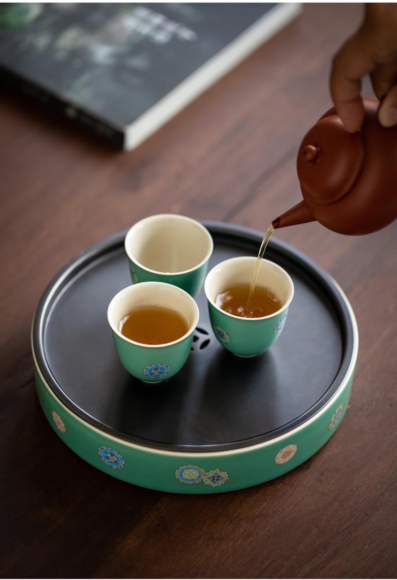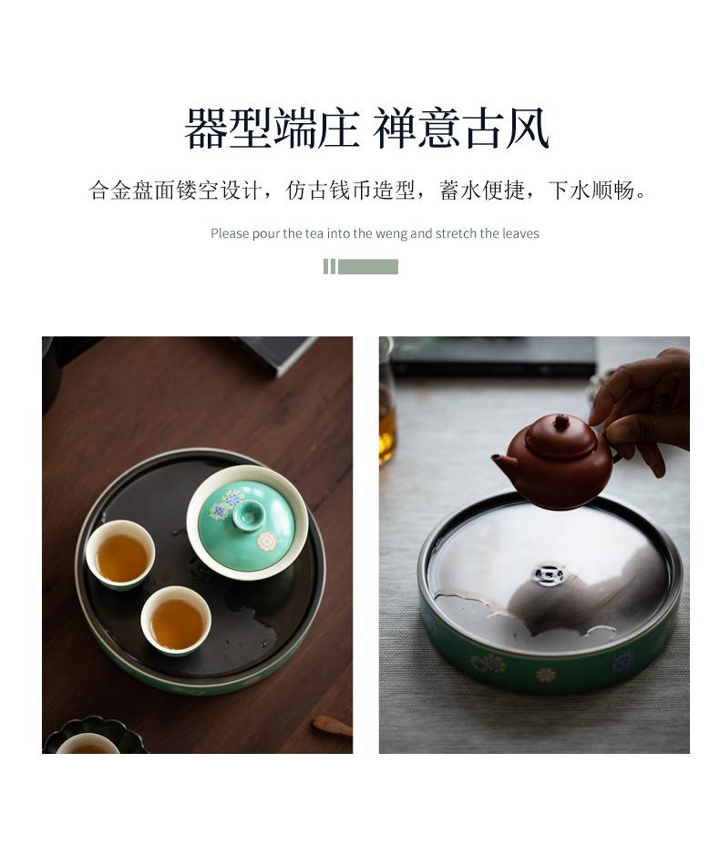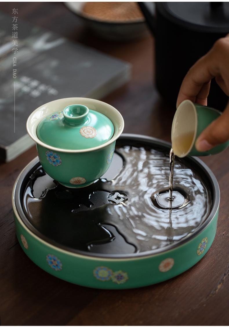 Sanwei Tea Qinghuan Bandeja de Té Bolsillos Secos Bandeja de Té Hogar Simple Pequeño Mar de Té Tipo Almacenamiento de Agua Olla Redonda con Bandeja para Juego de Té